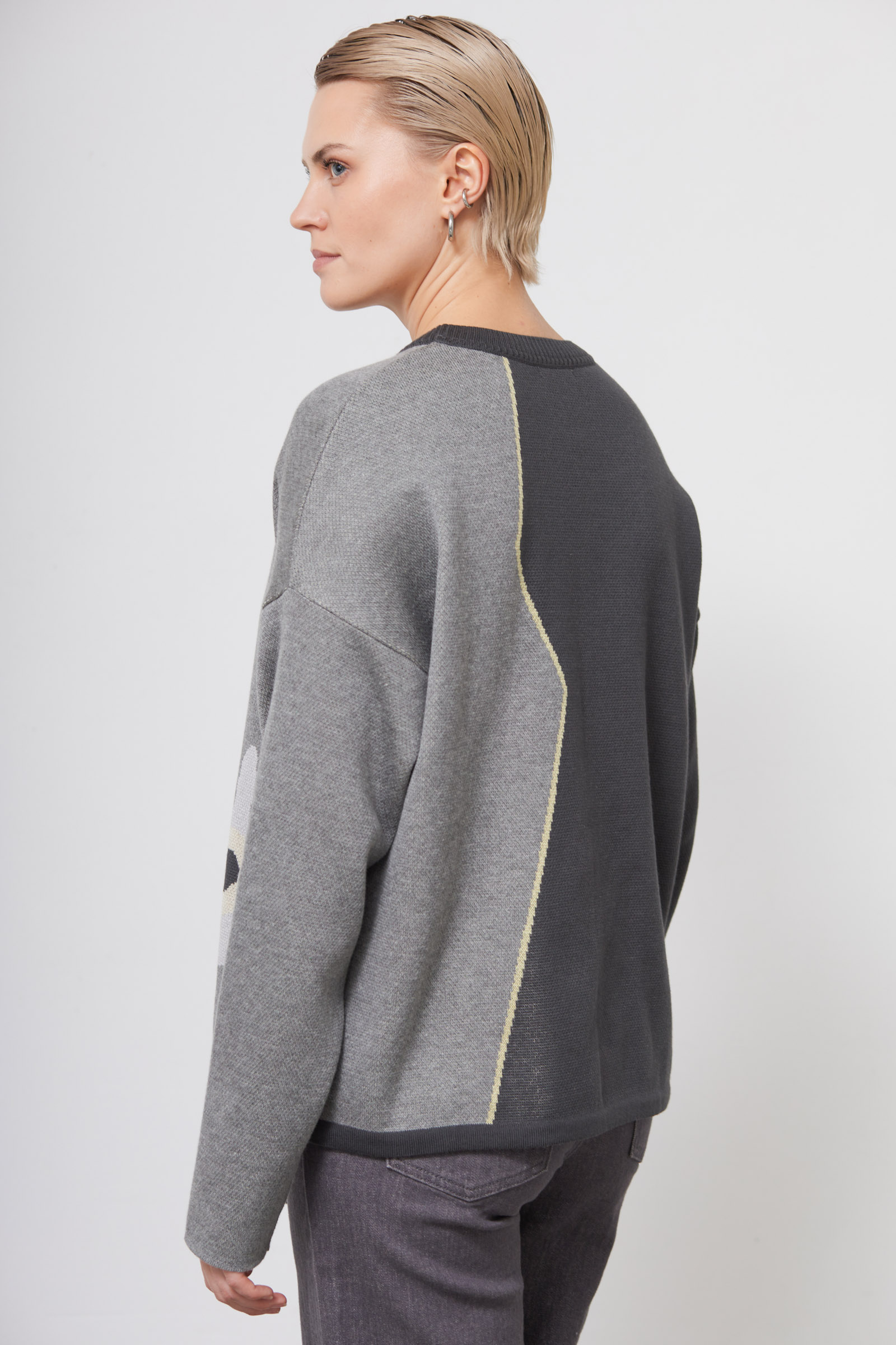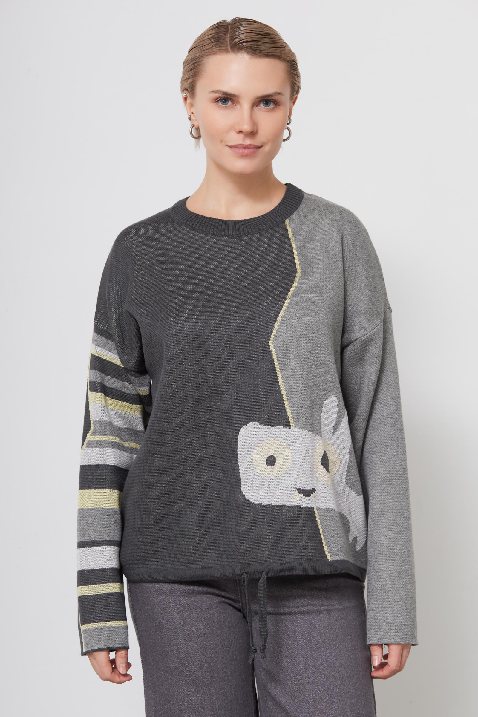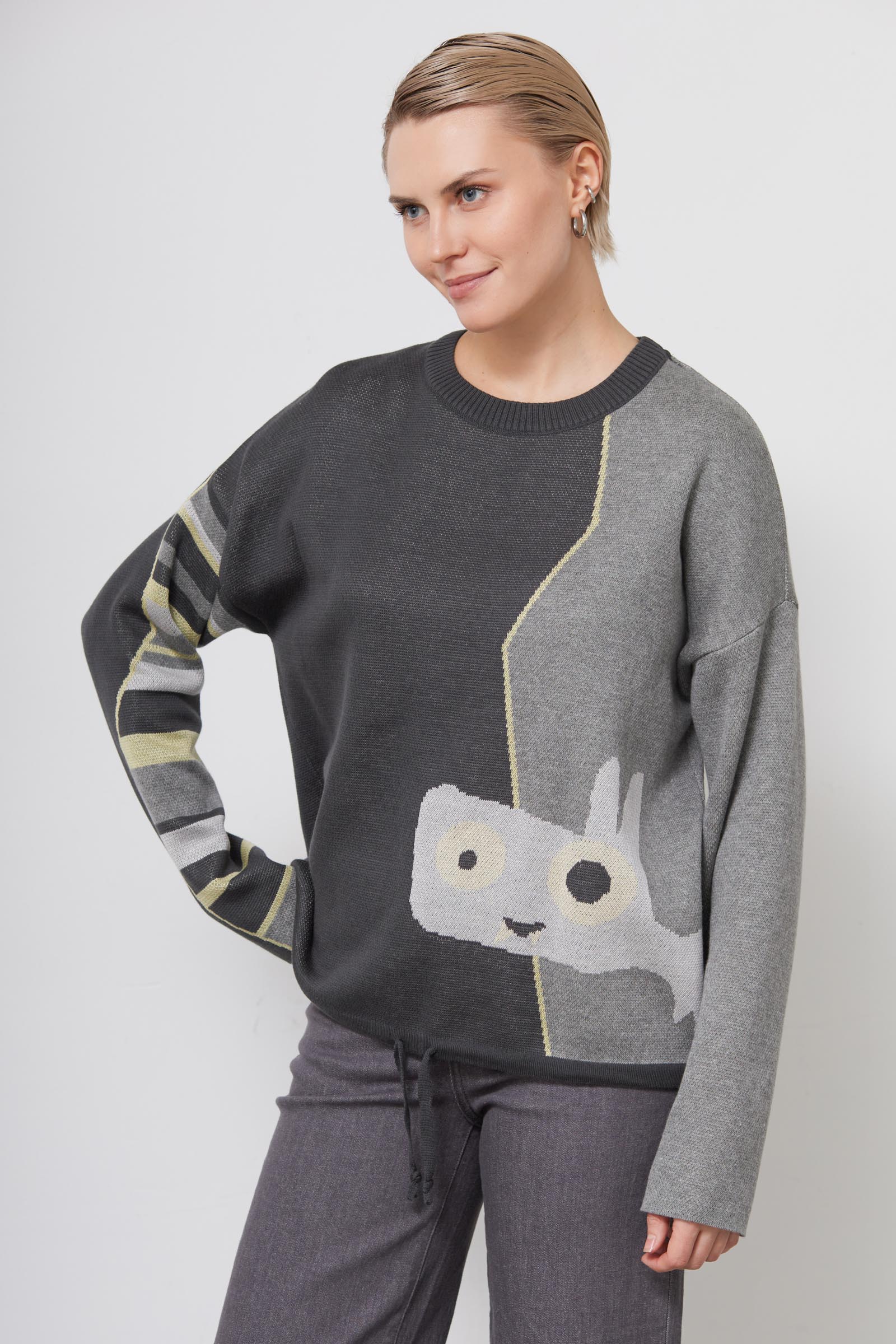Джемпер oversize жаккардовой вязки с авторским контрастным рисунком.
