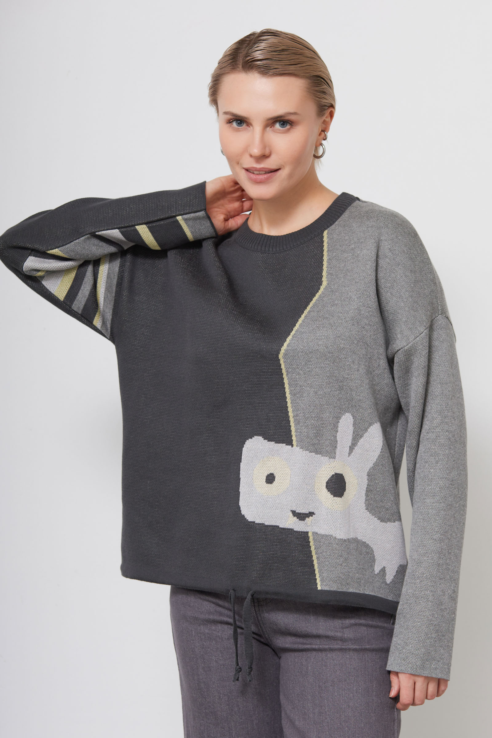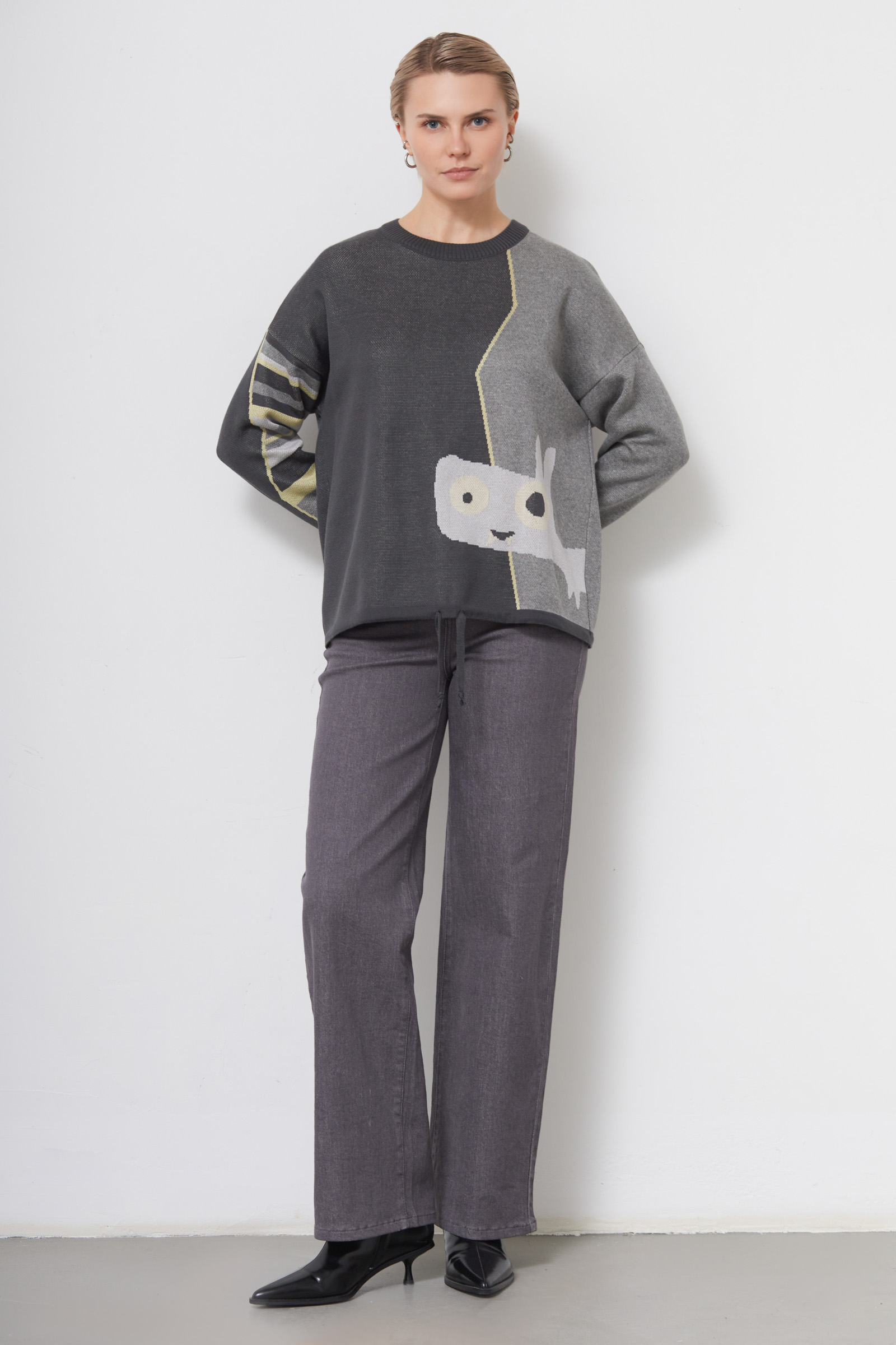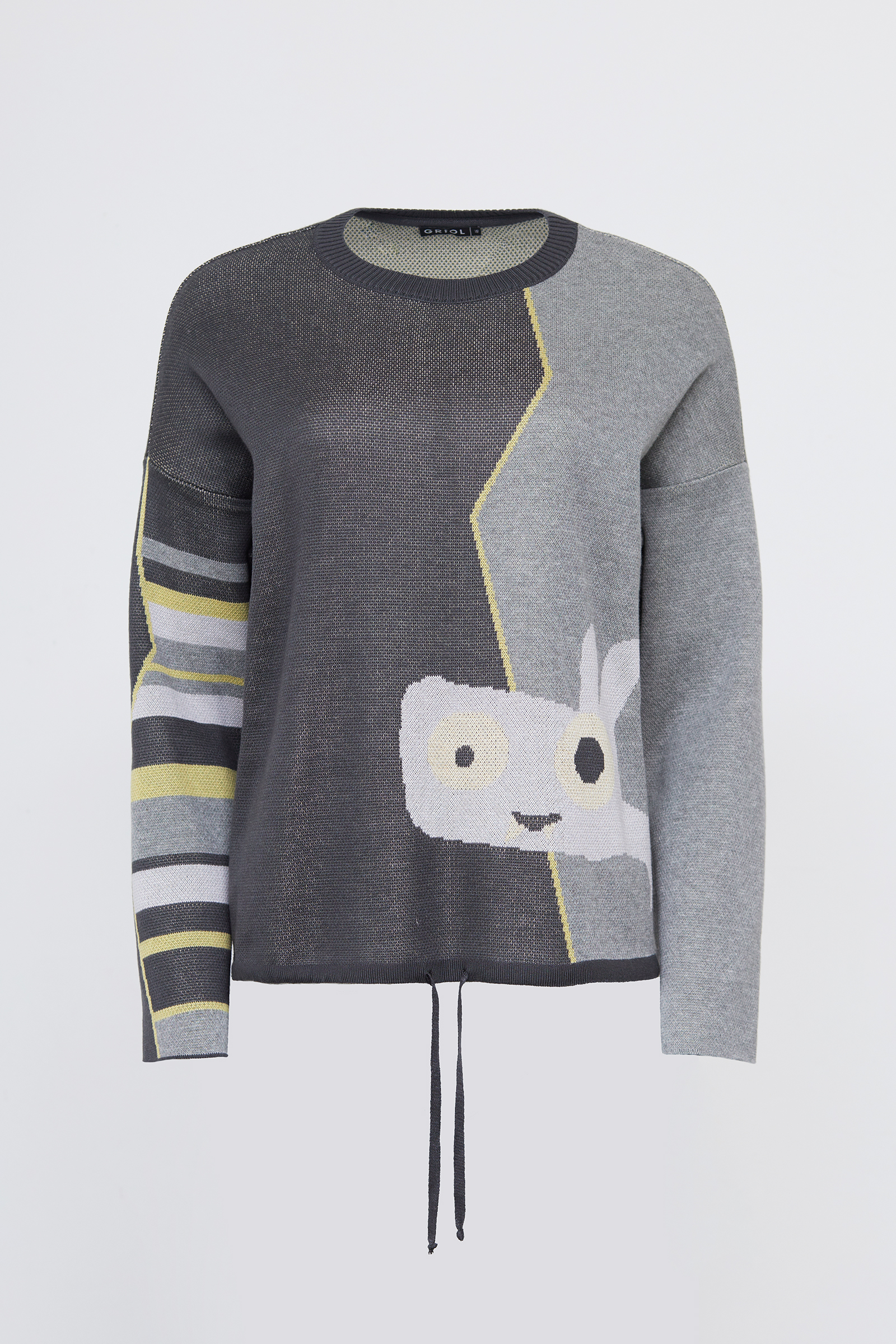 Джемпер oversize жаккардовой вязки с авторским контрастным рисунком.