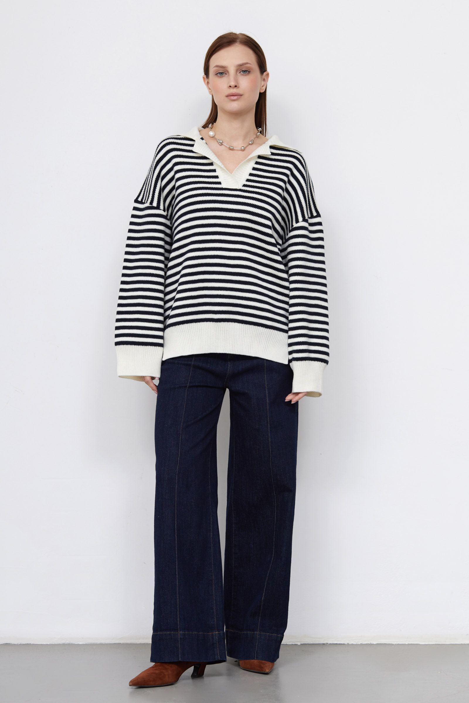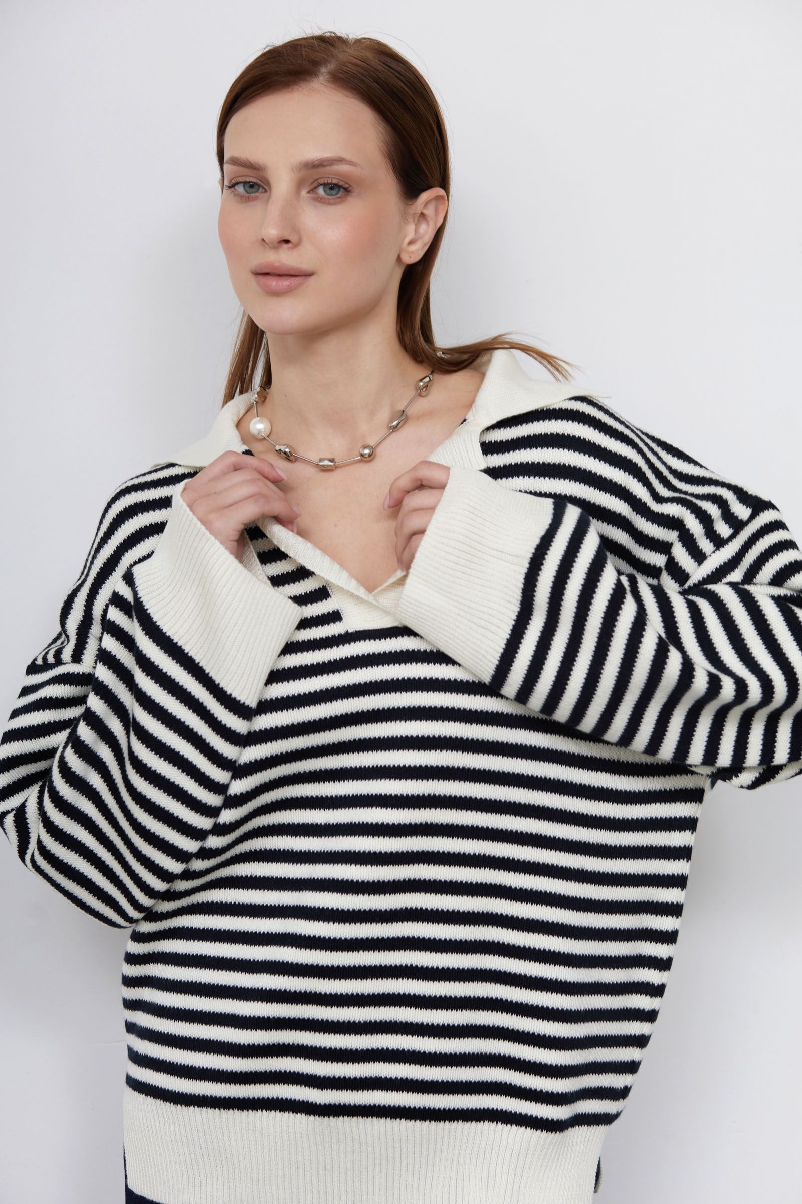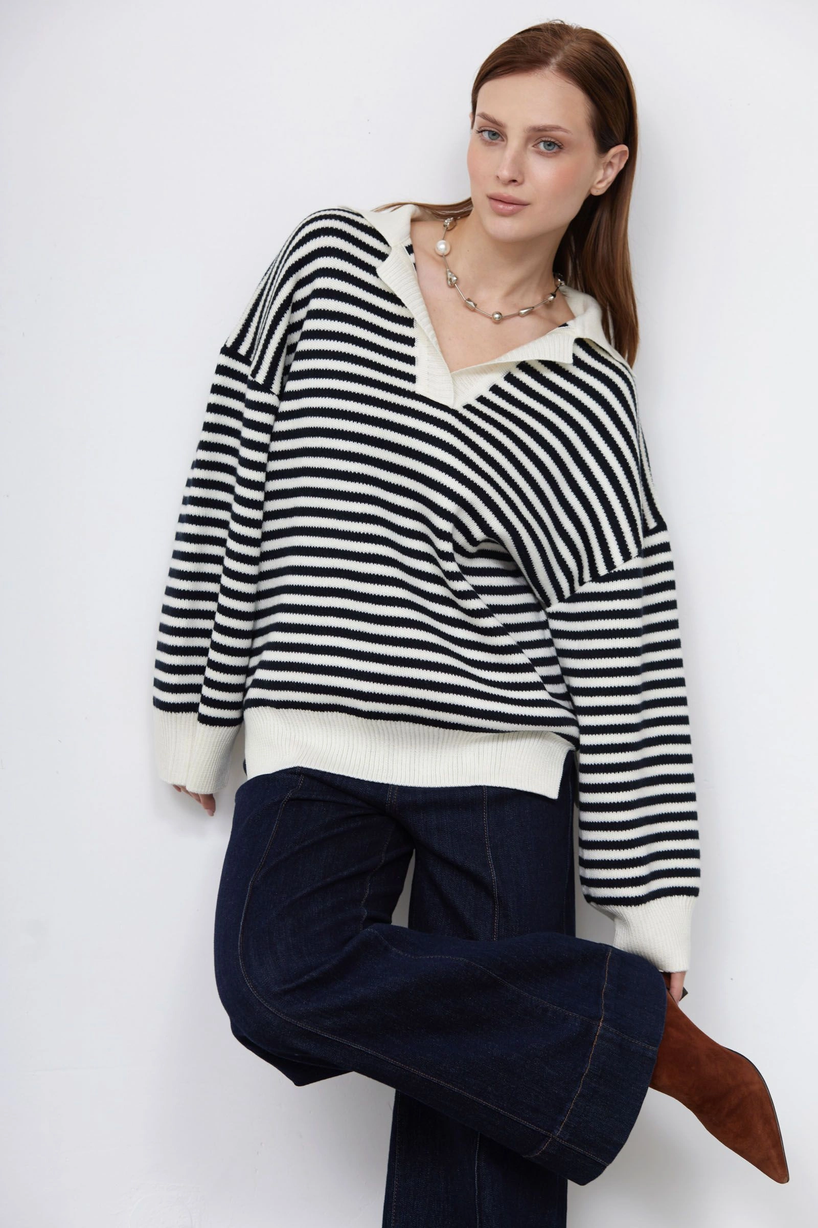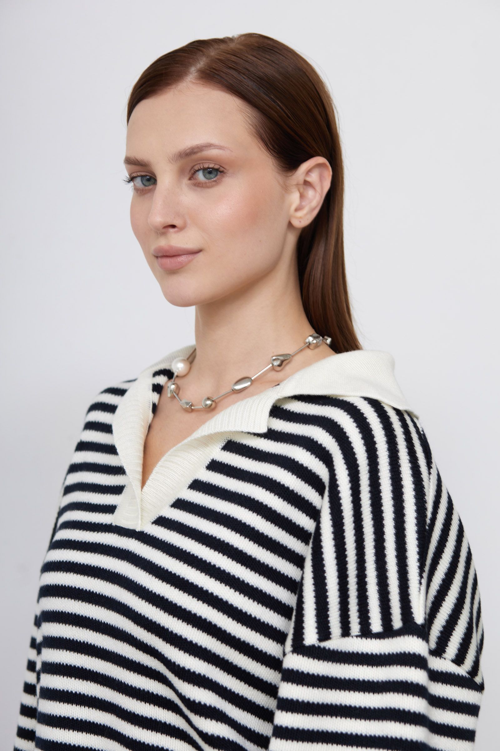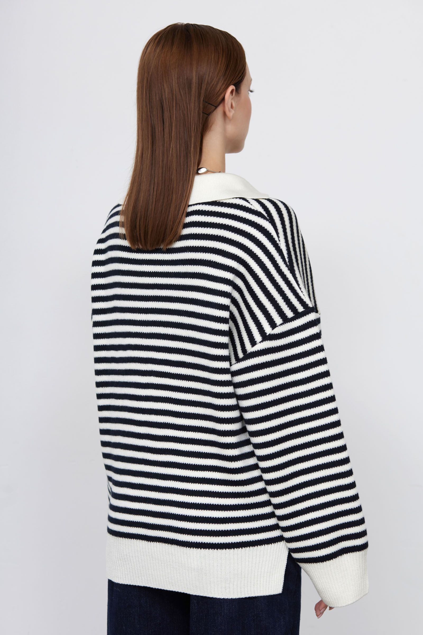 Джемпер-поло оверсайз в полоску