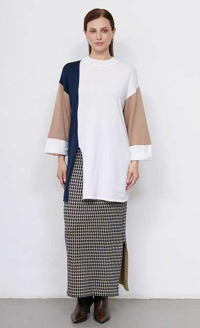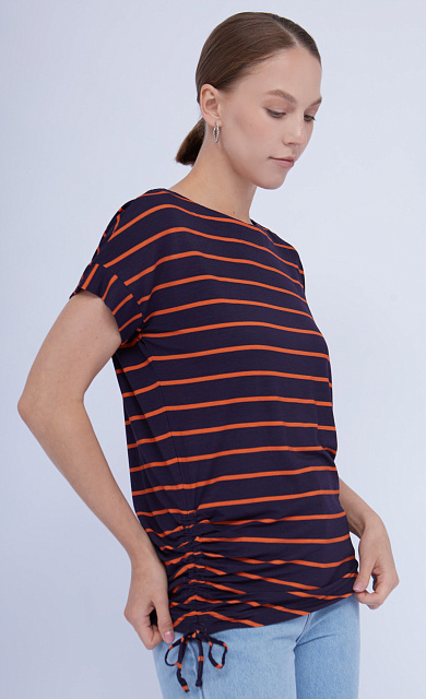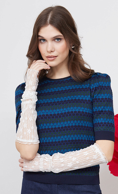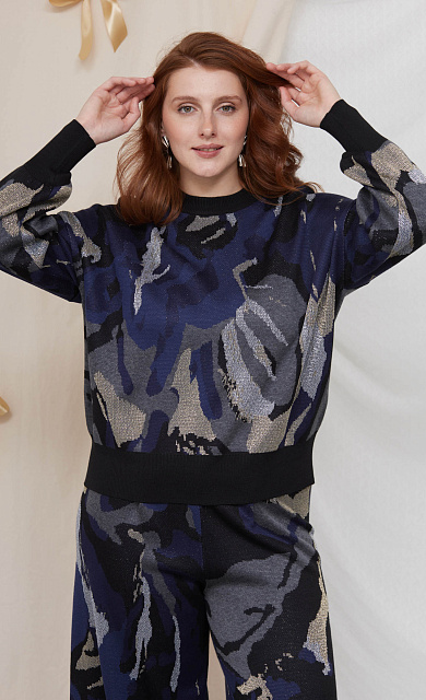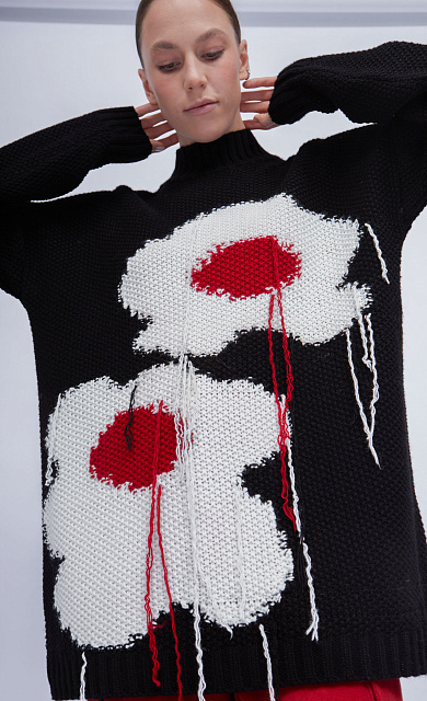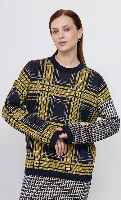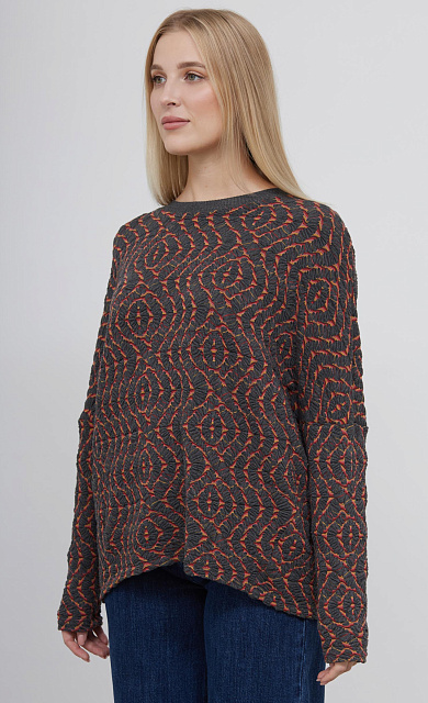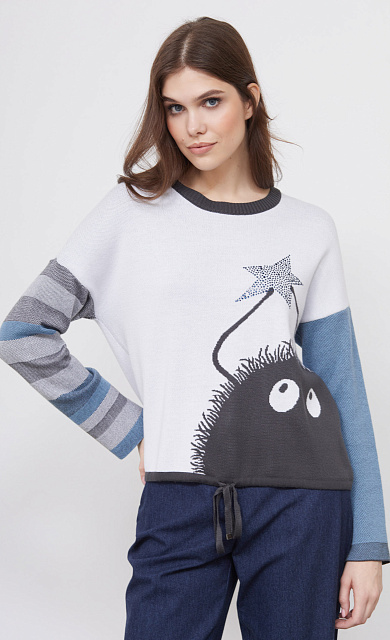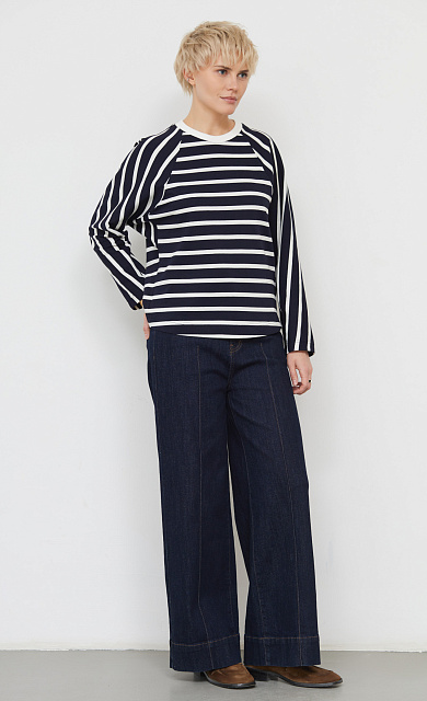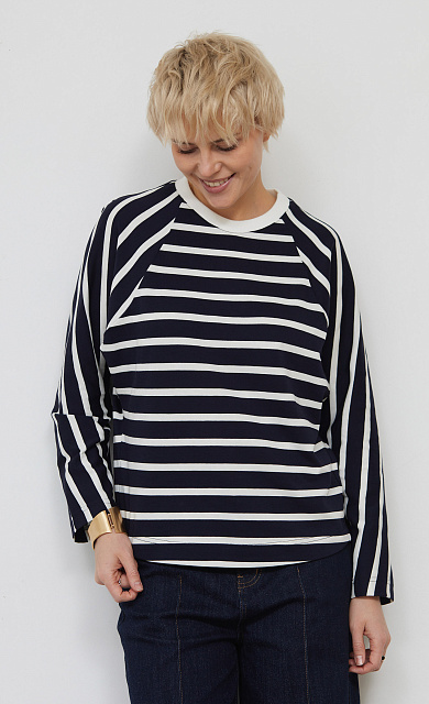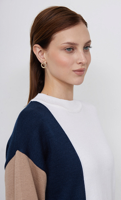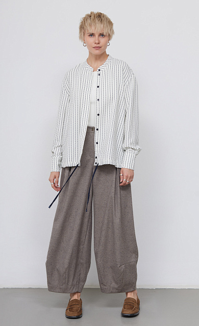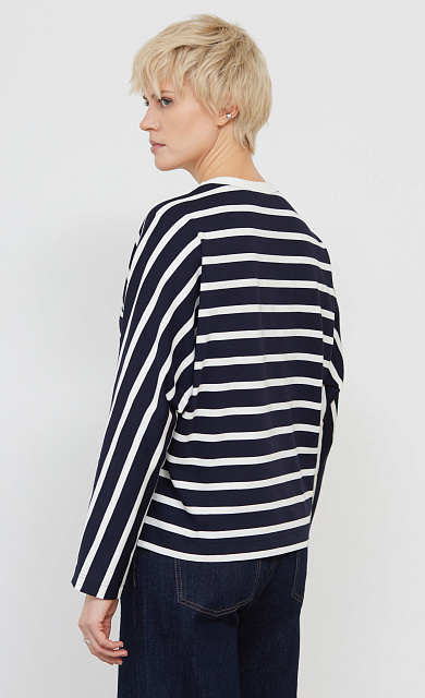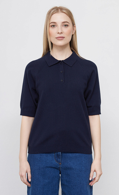 Джемпер-поло oversize из полушерстяного вязаного трикотажа в полоску.