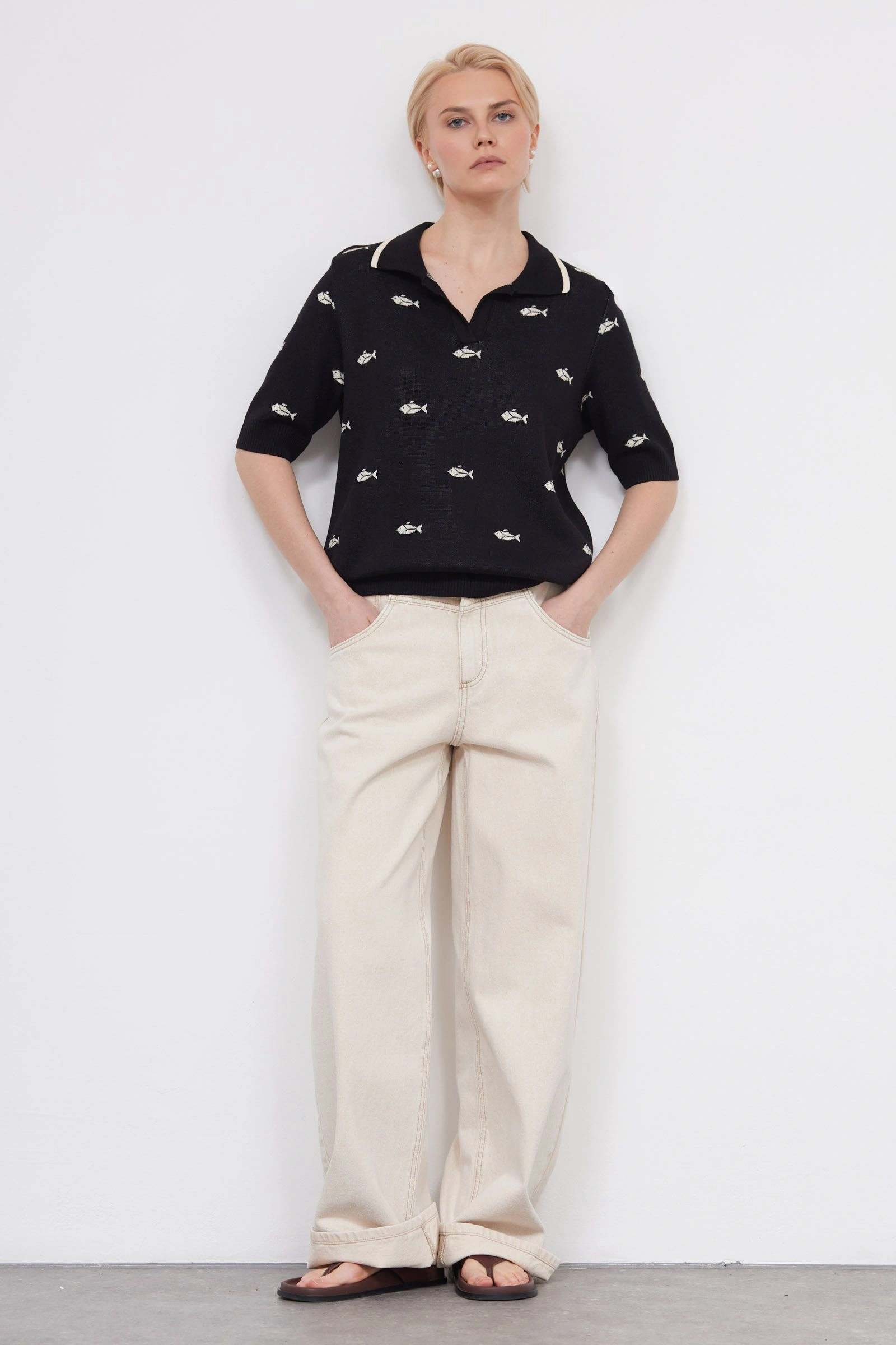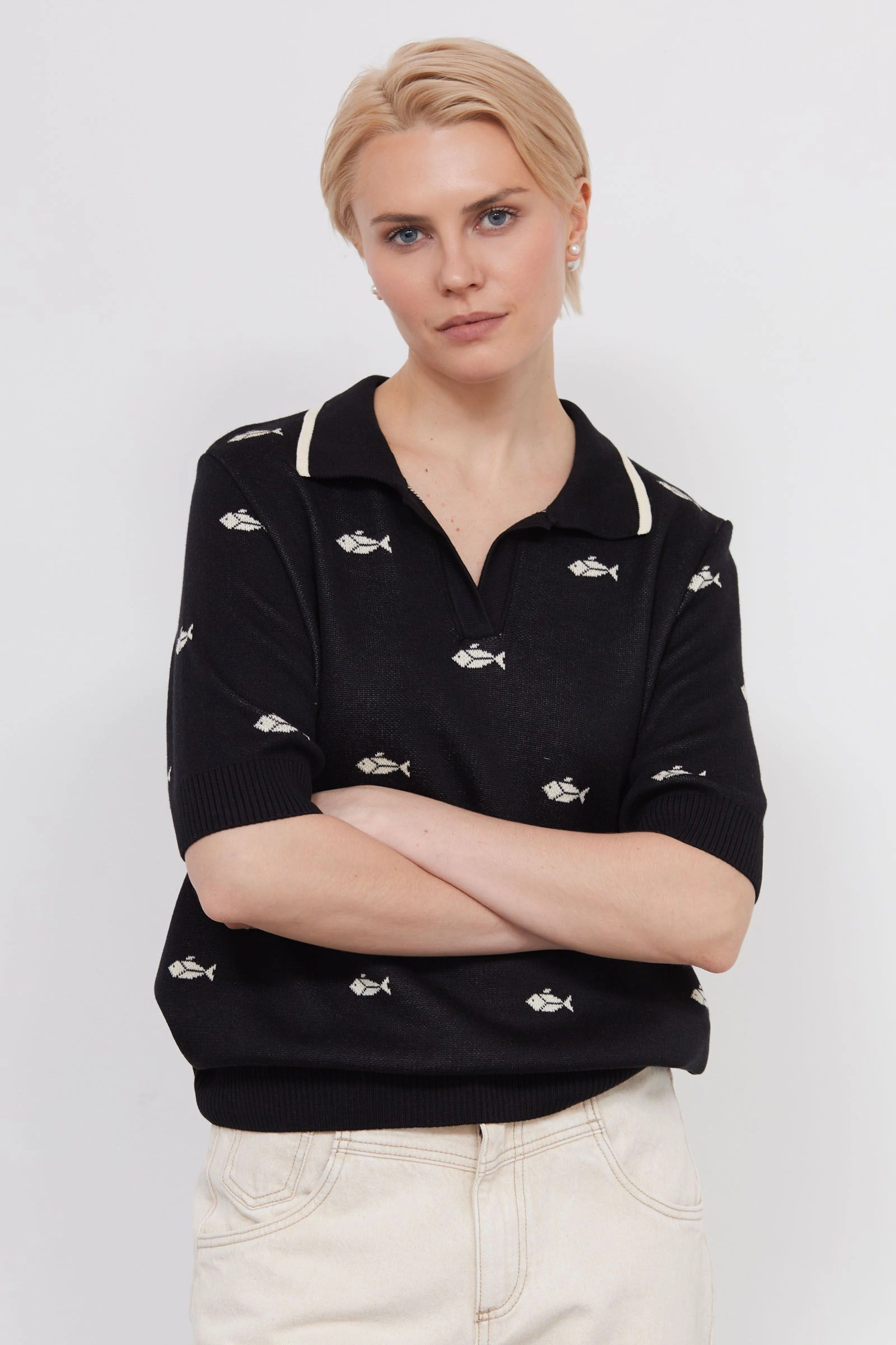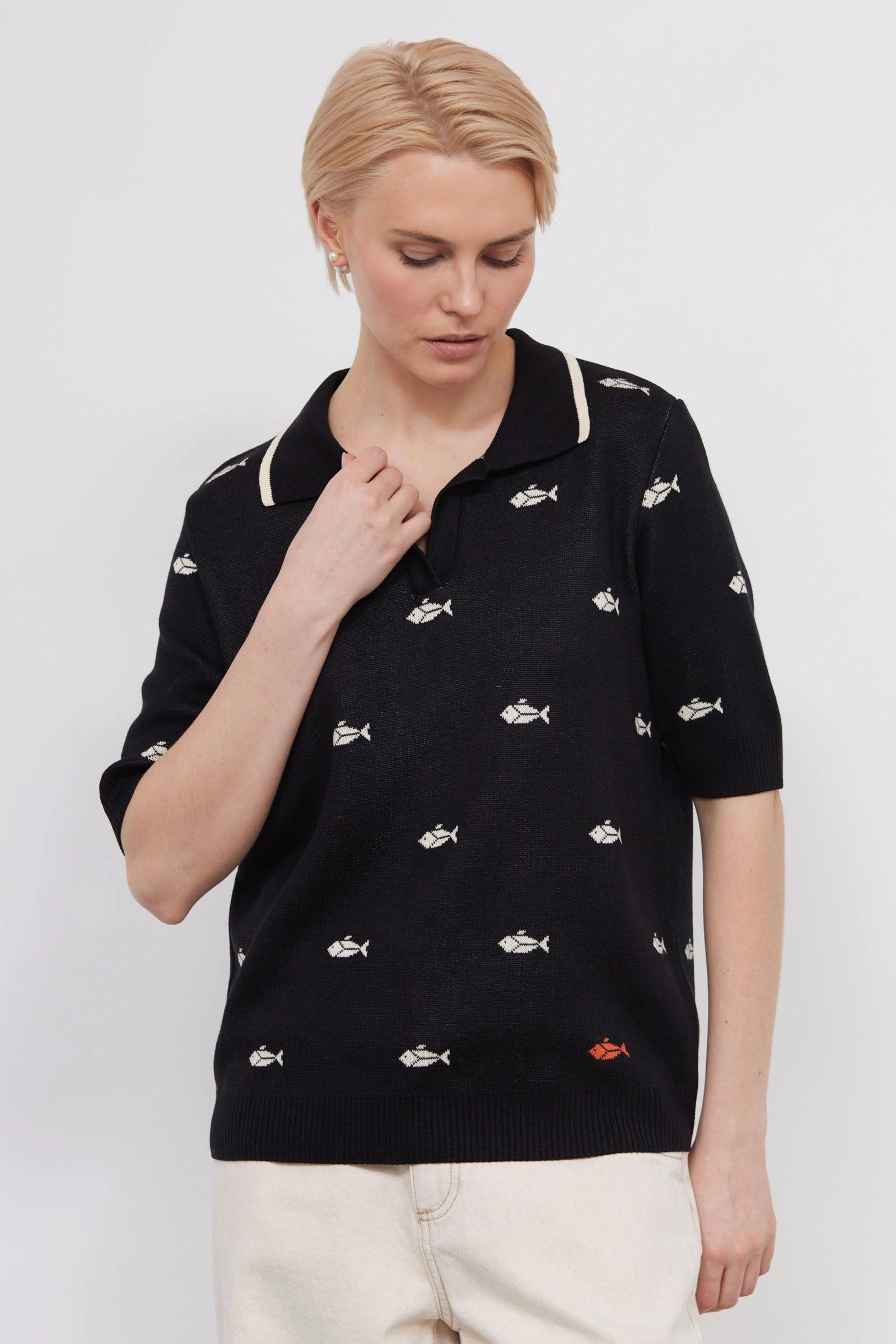 Джемпер-поло жаккардовой вязки