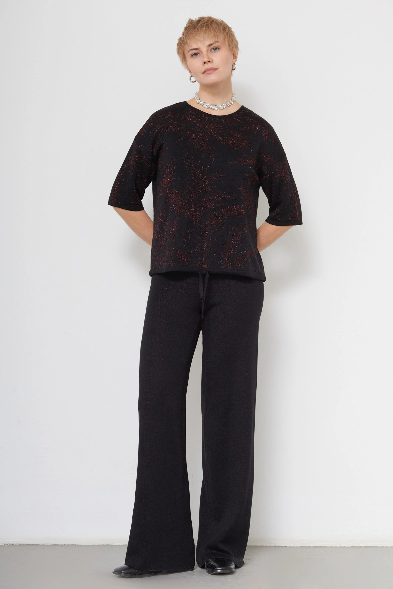 Джемпер с рисунком из люрекса