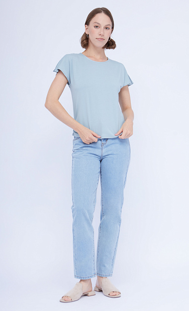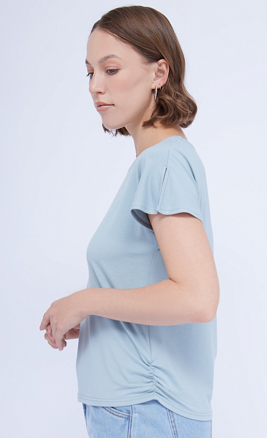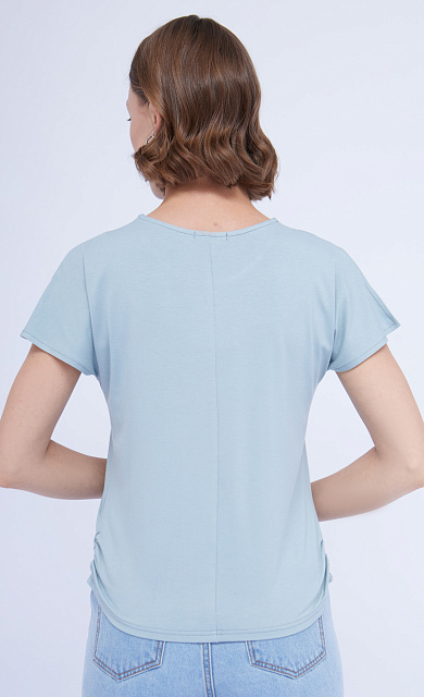Футболка oversize из вискозного трикотажа с акцентной горловиной.