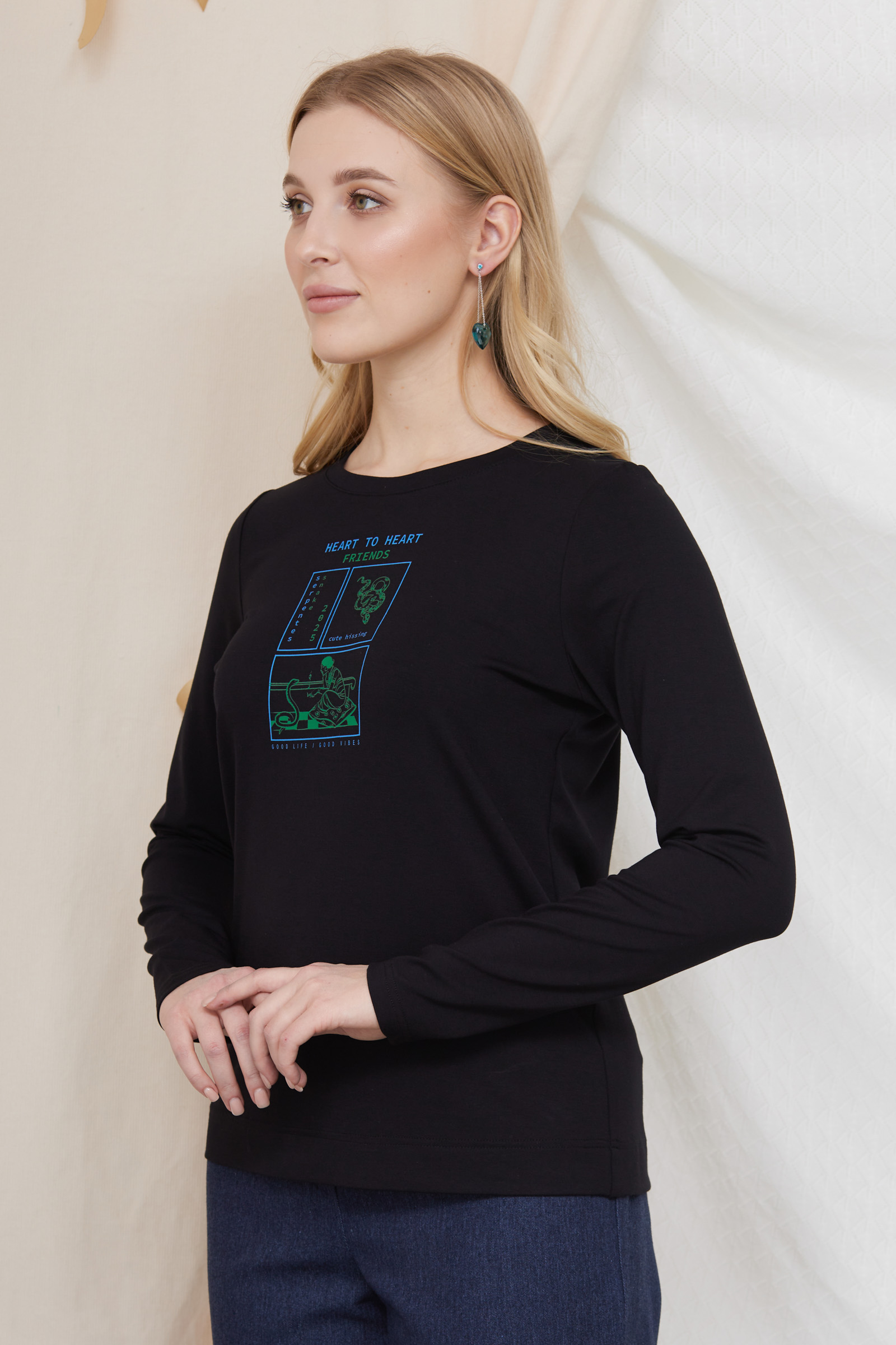 Лонгслив из мягкого вискозного трикотажа с авторским печатным принтом.