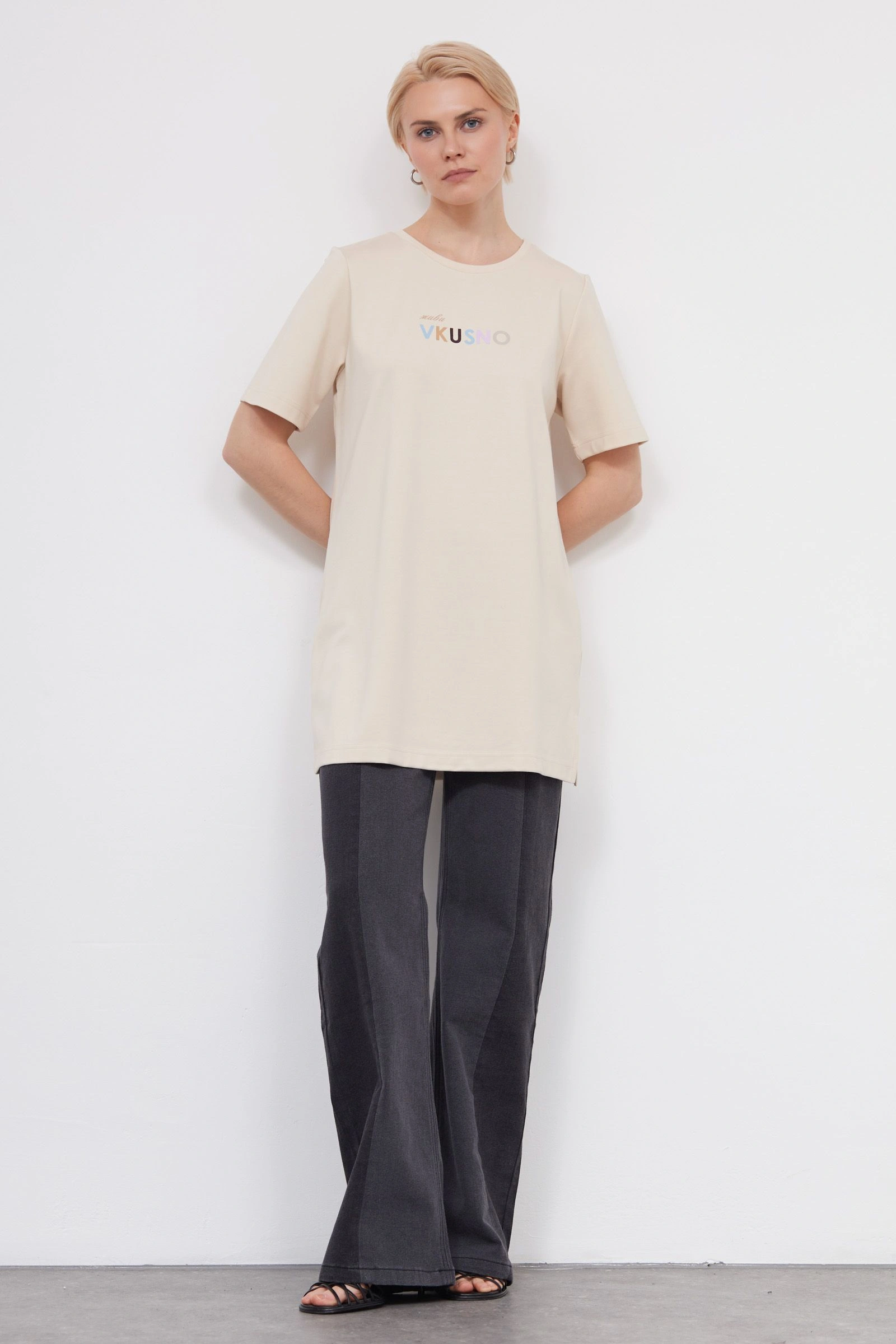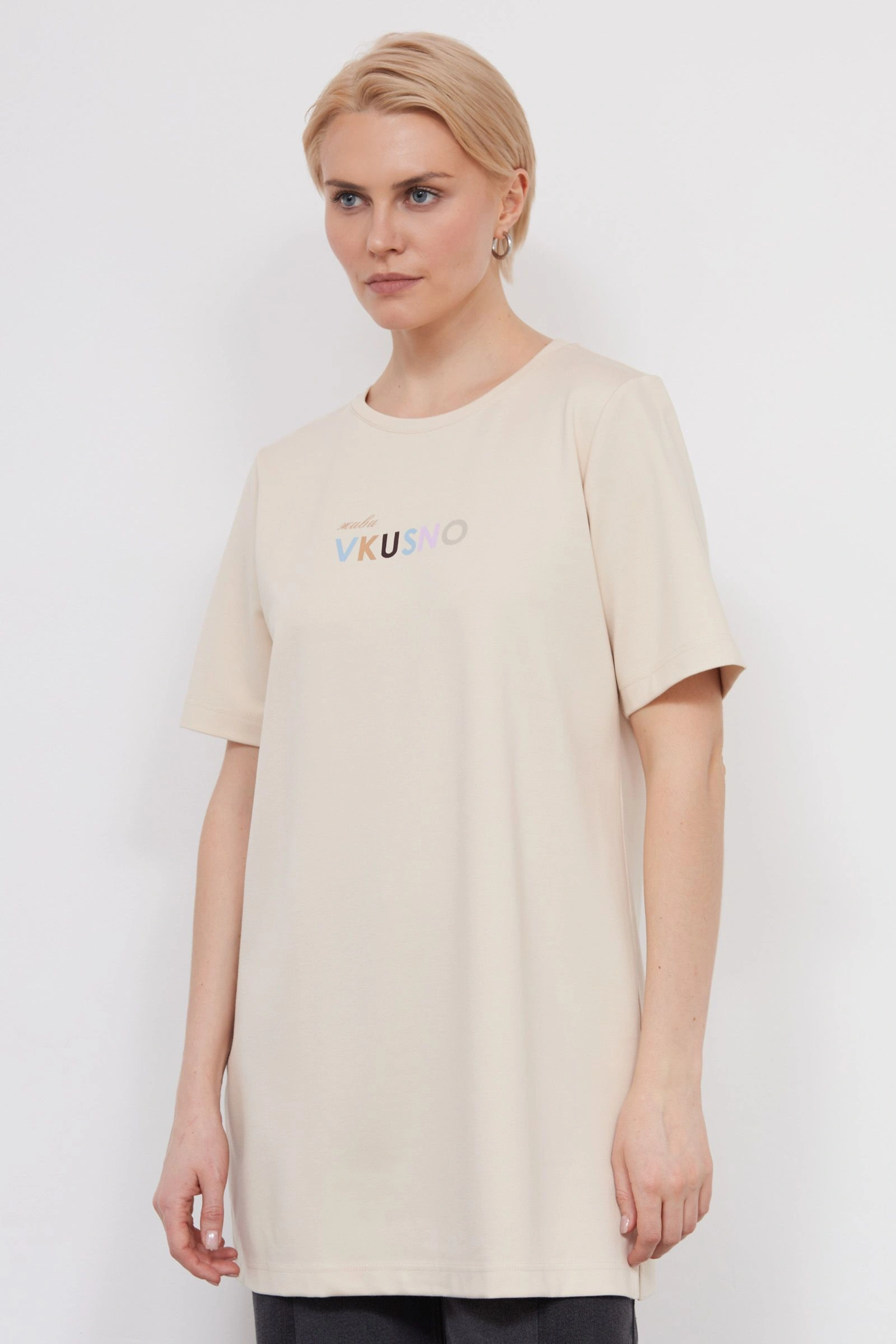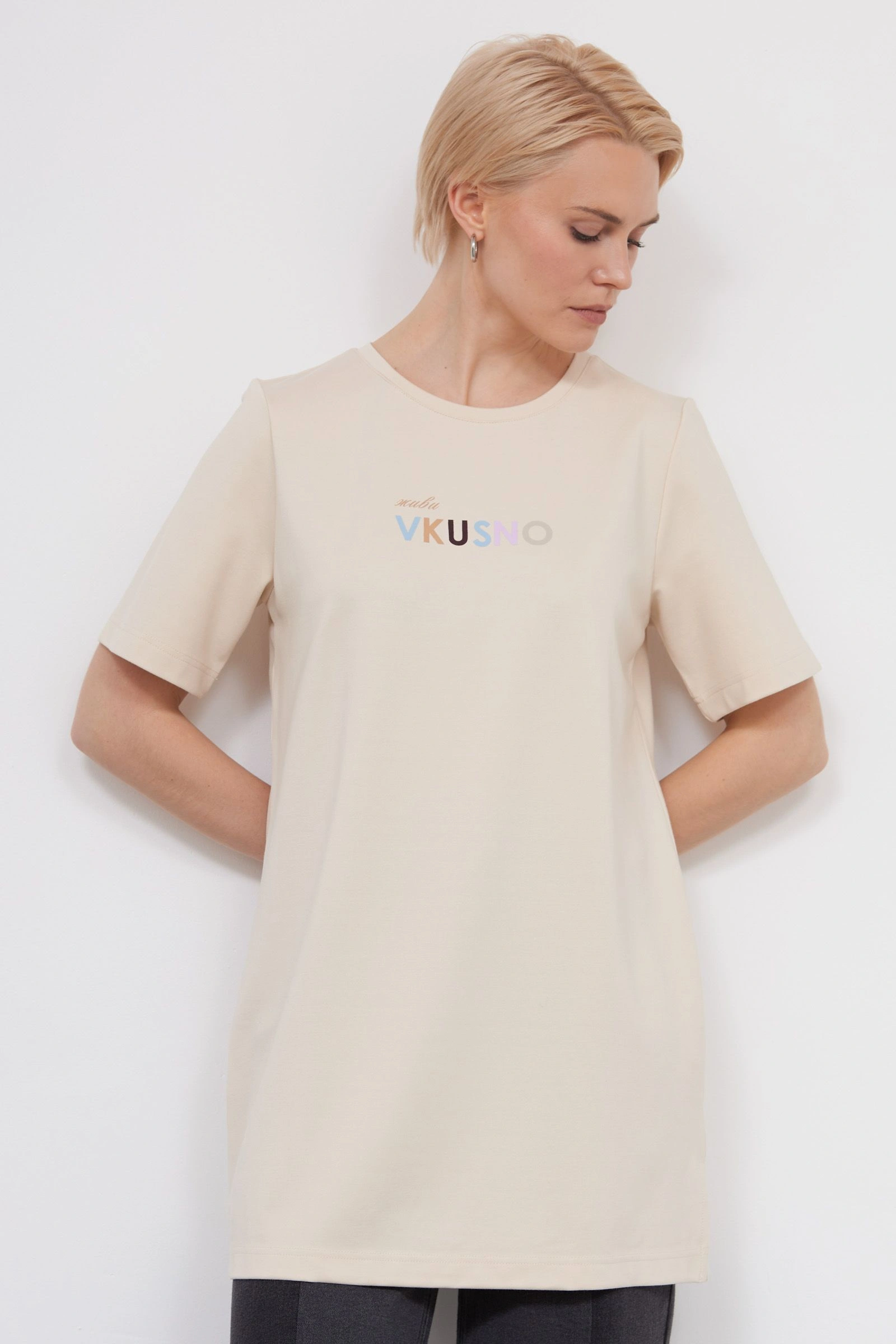 Футболка удлиненная с печатью
