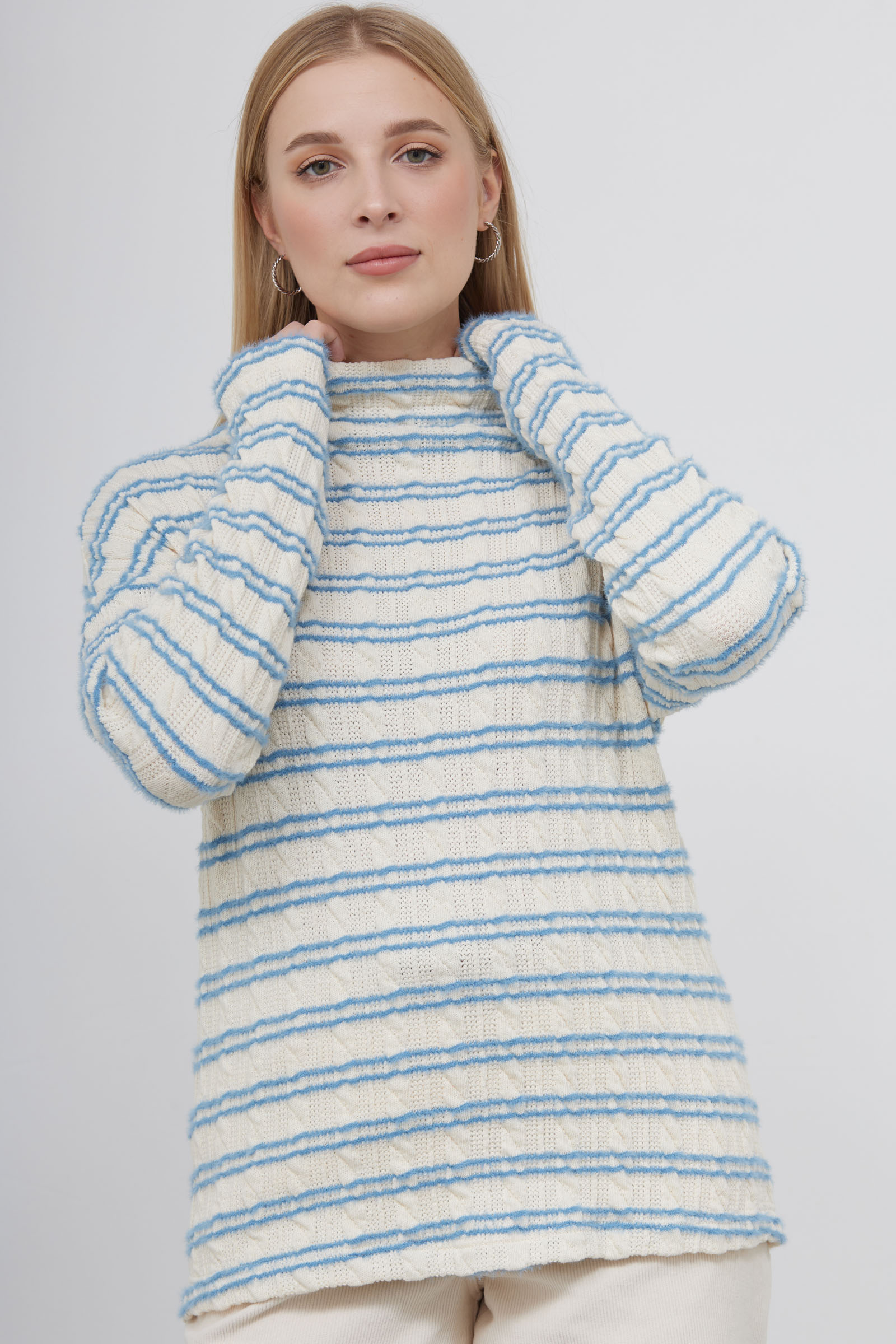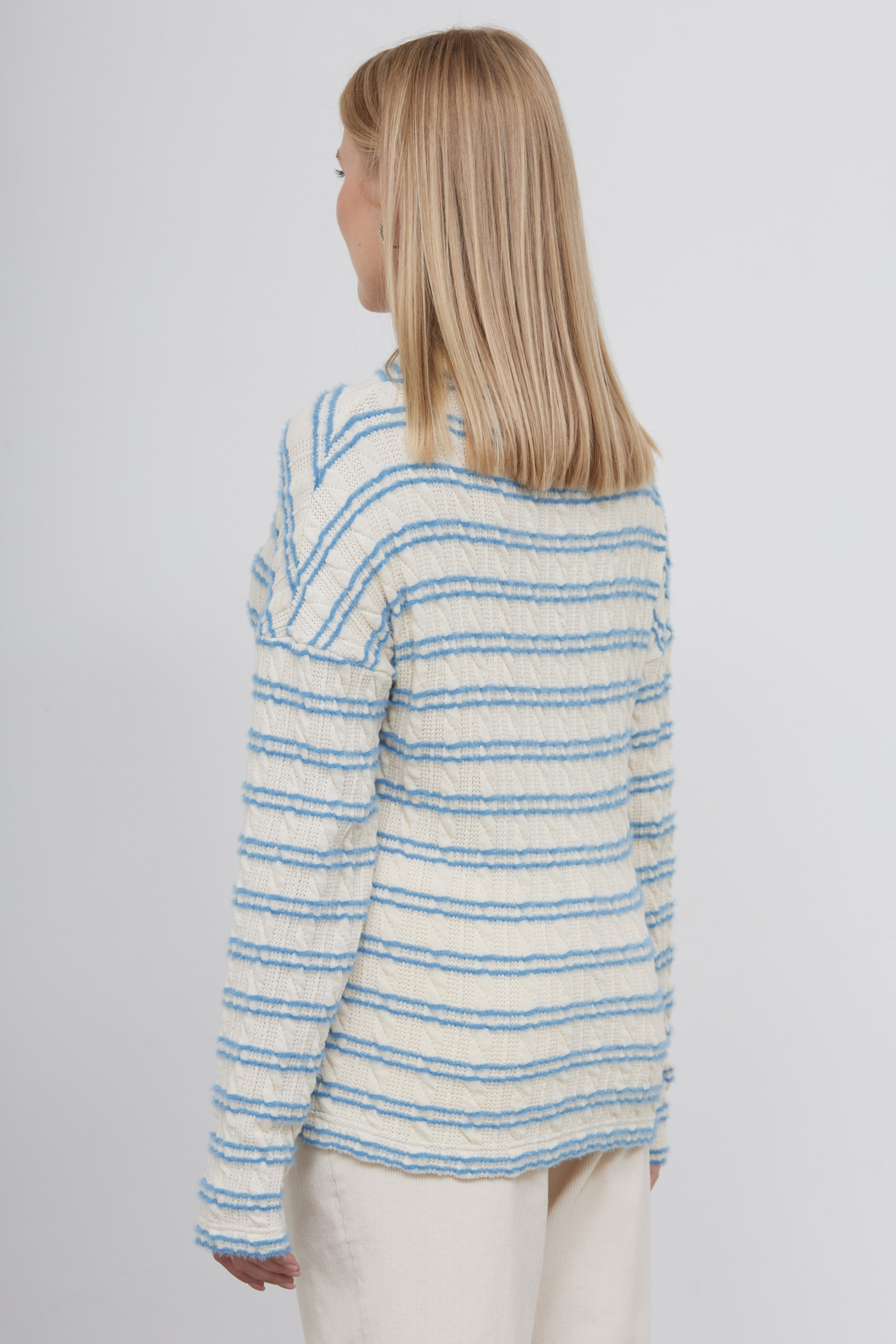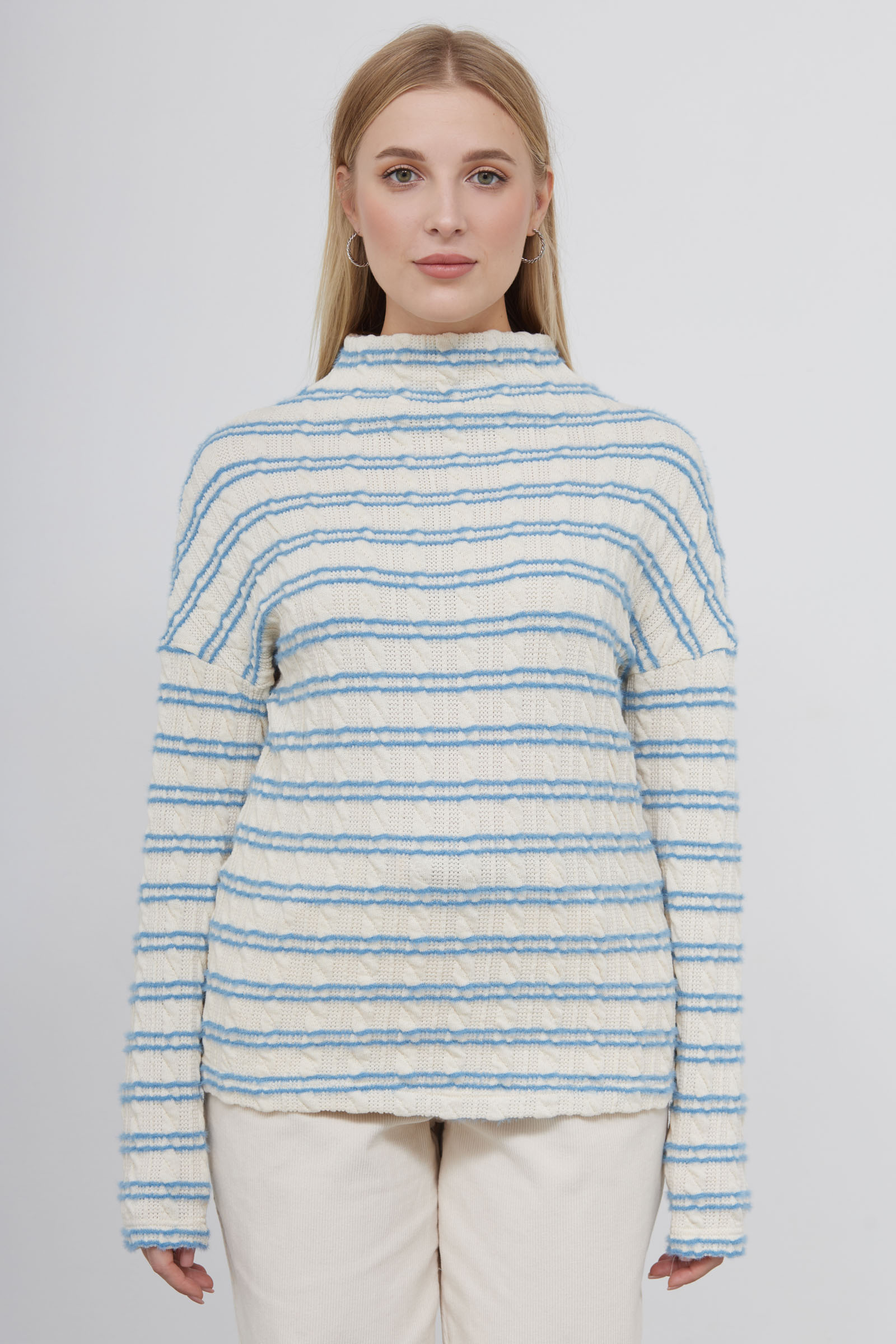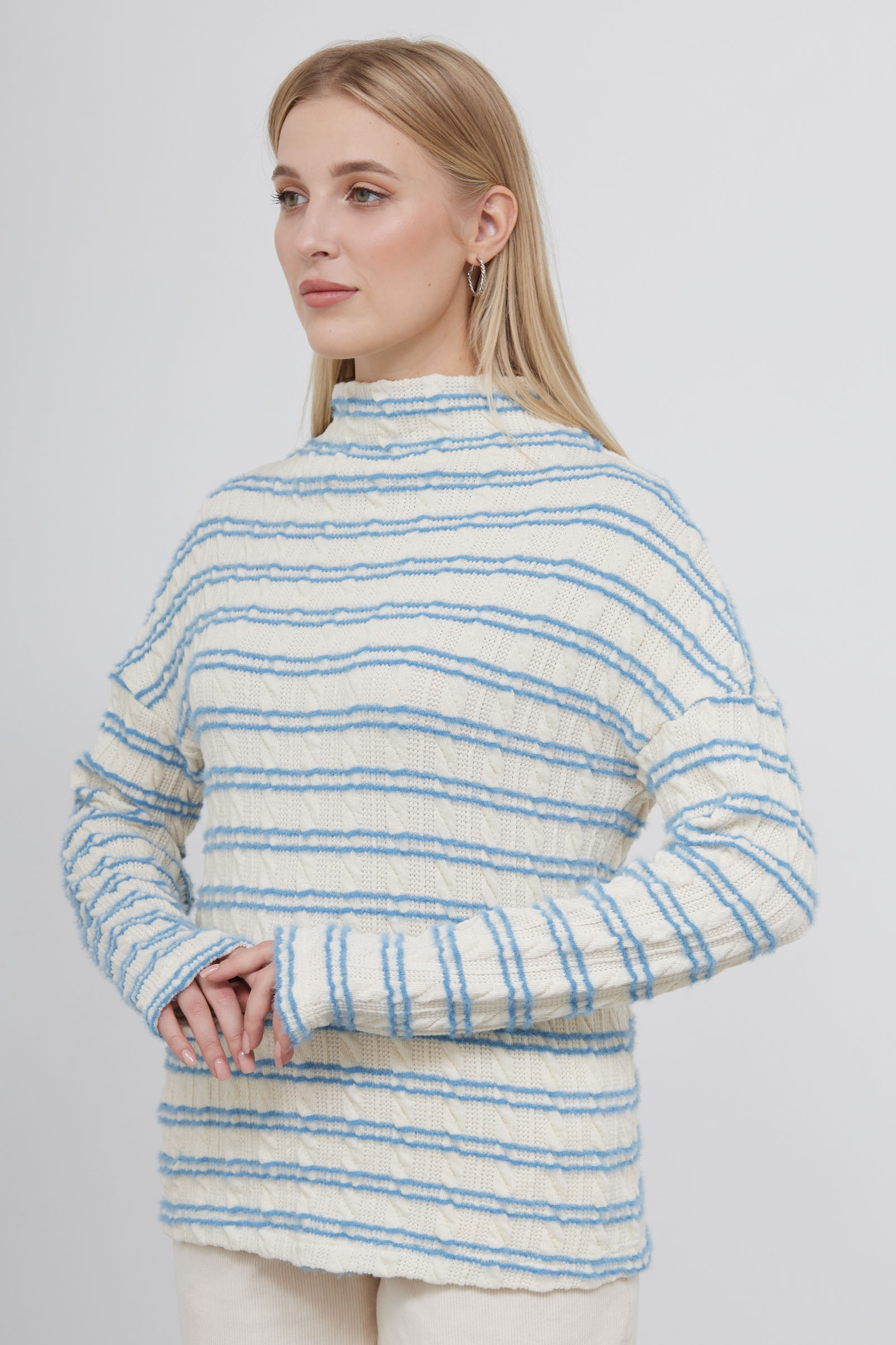 Джемпер из мягкого фактурного трикотажа в полоску с цельнокроеным воротником.