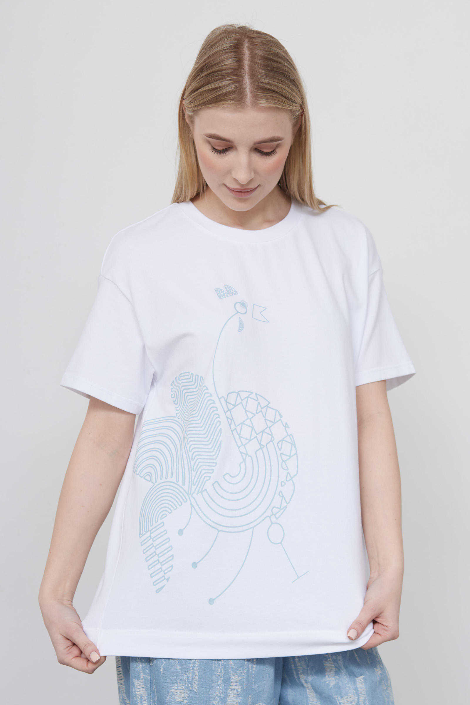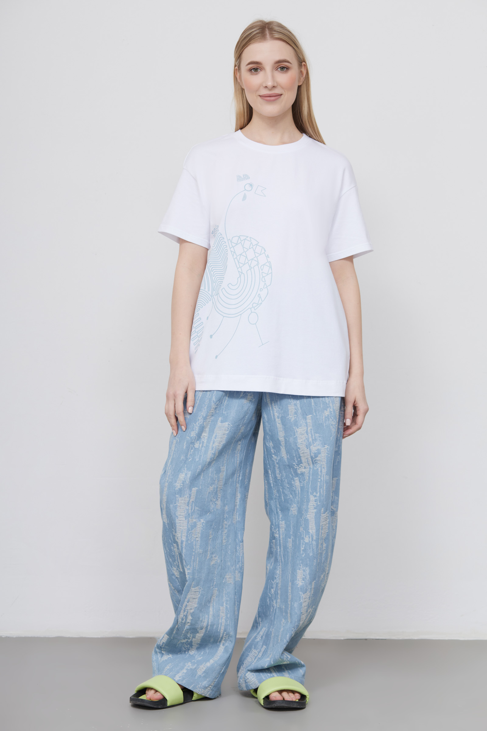Футболка oversize из мягкого хлопкового трикотажа с авторским печатным принтом.