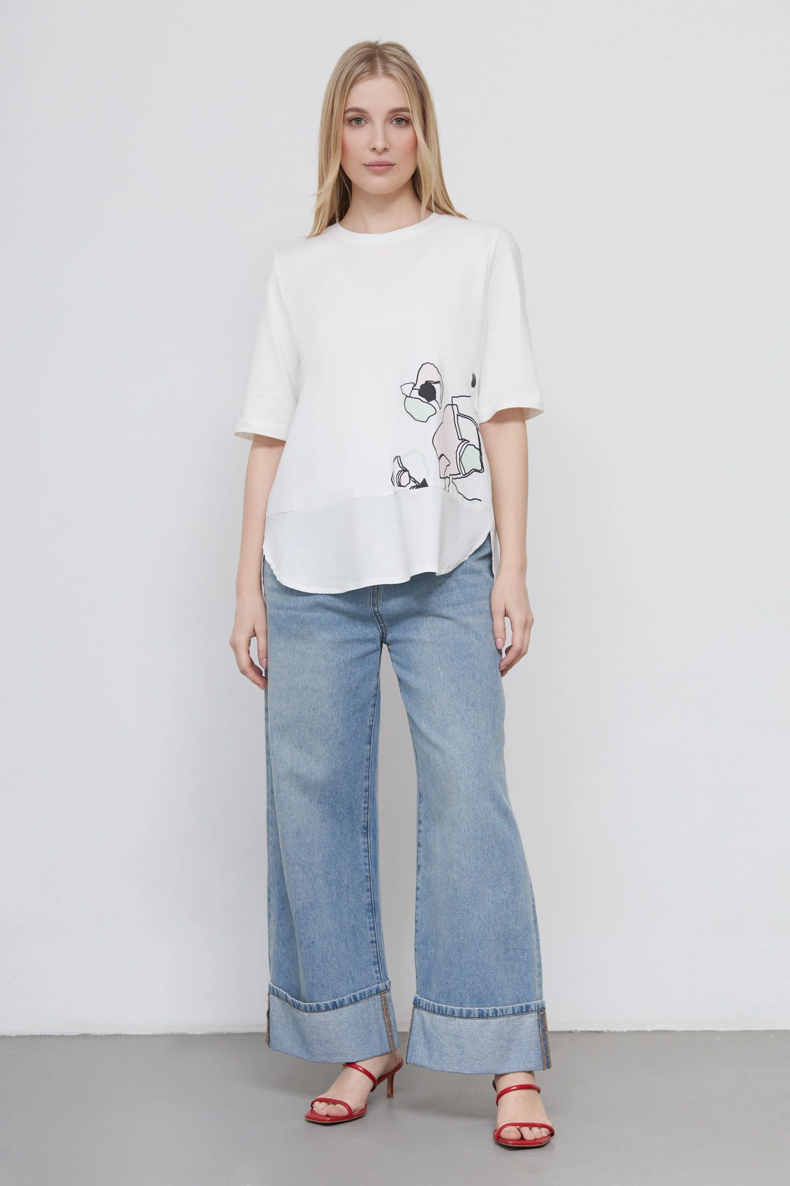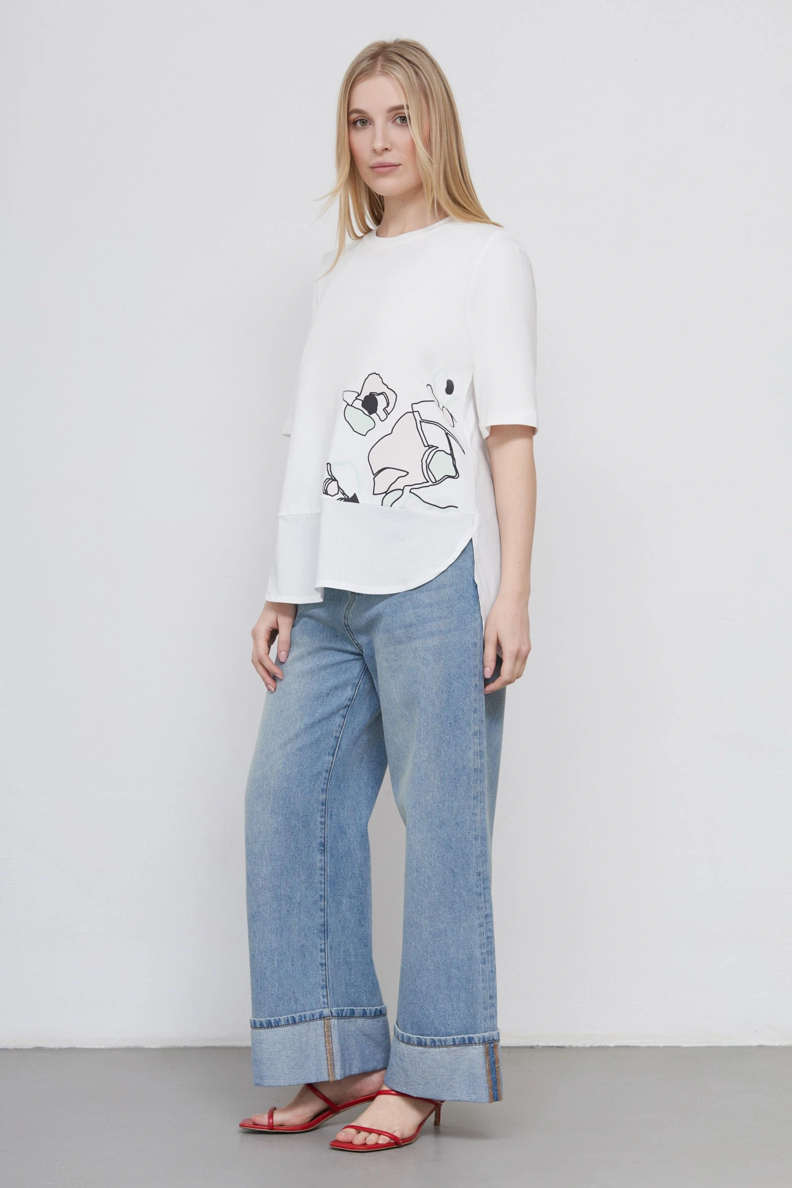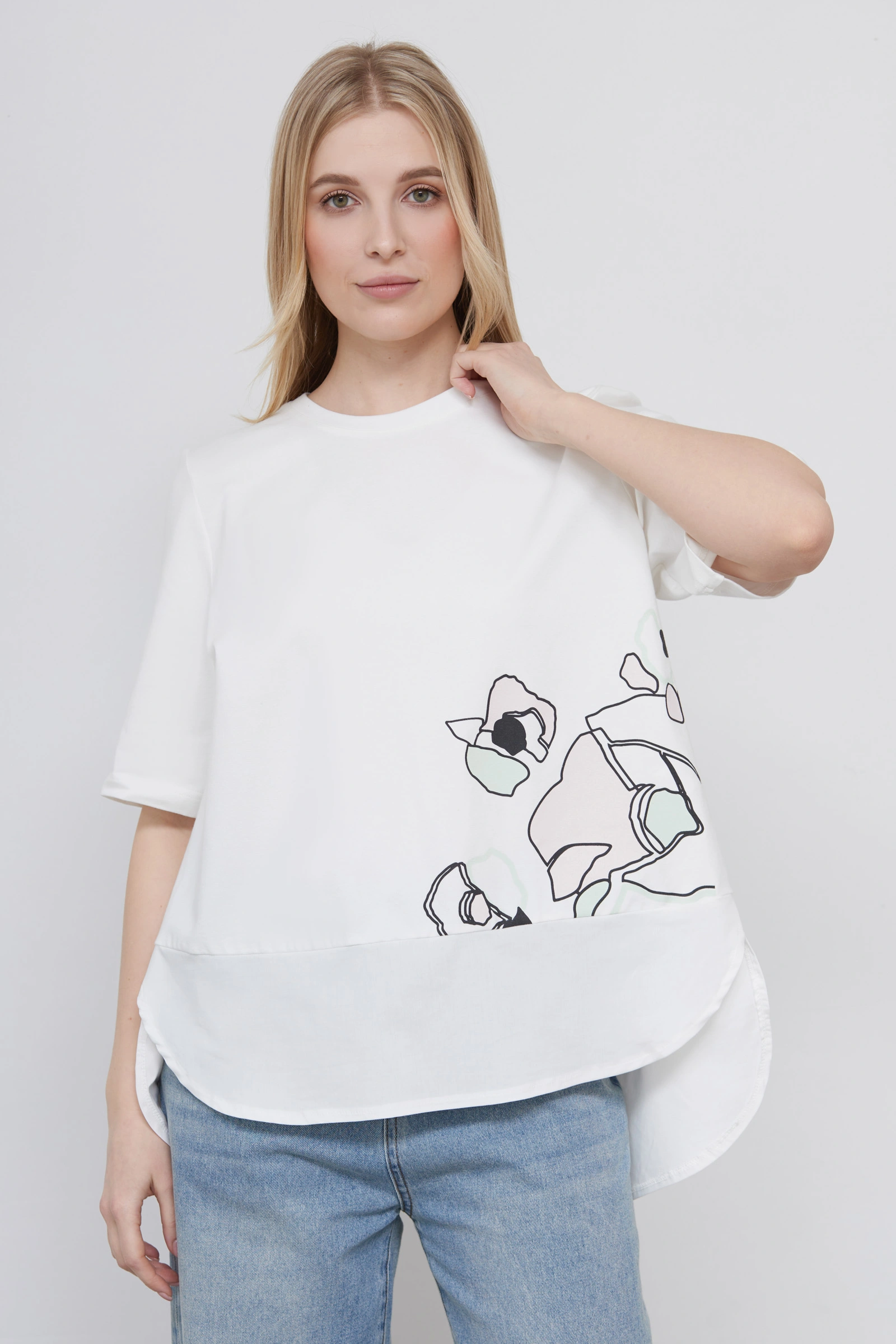 Футболка комбинированная с печатью