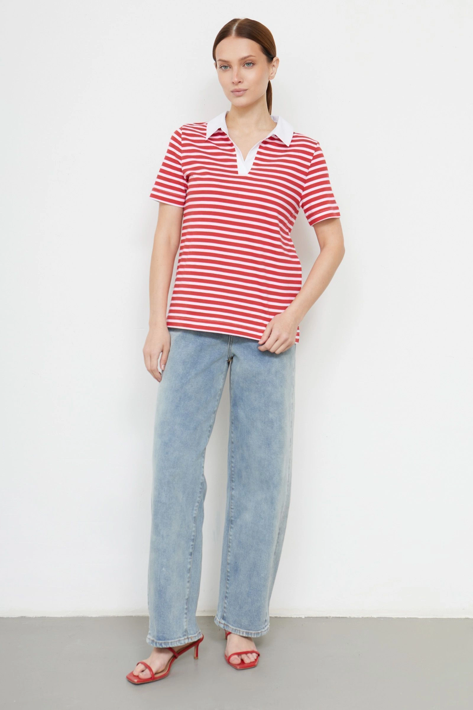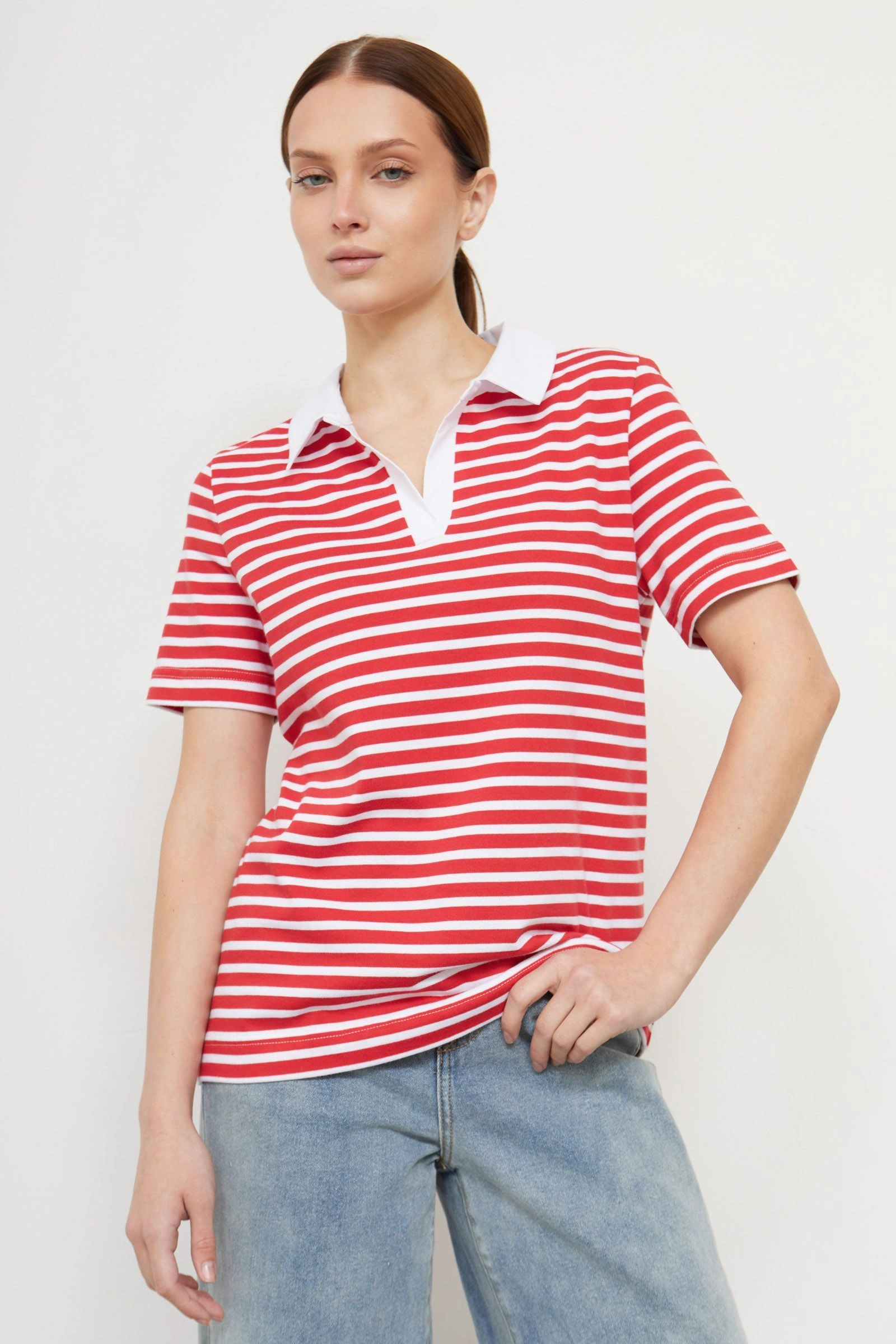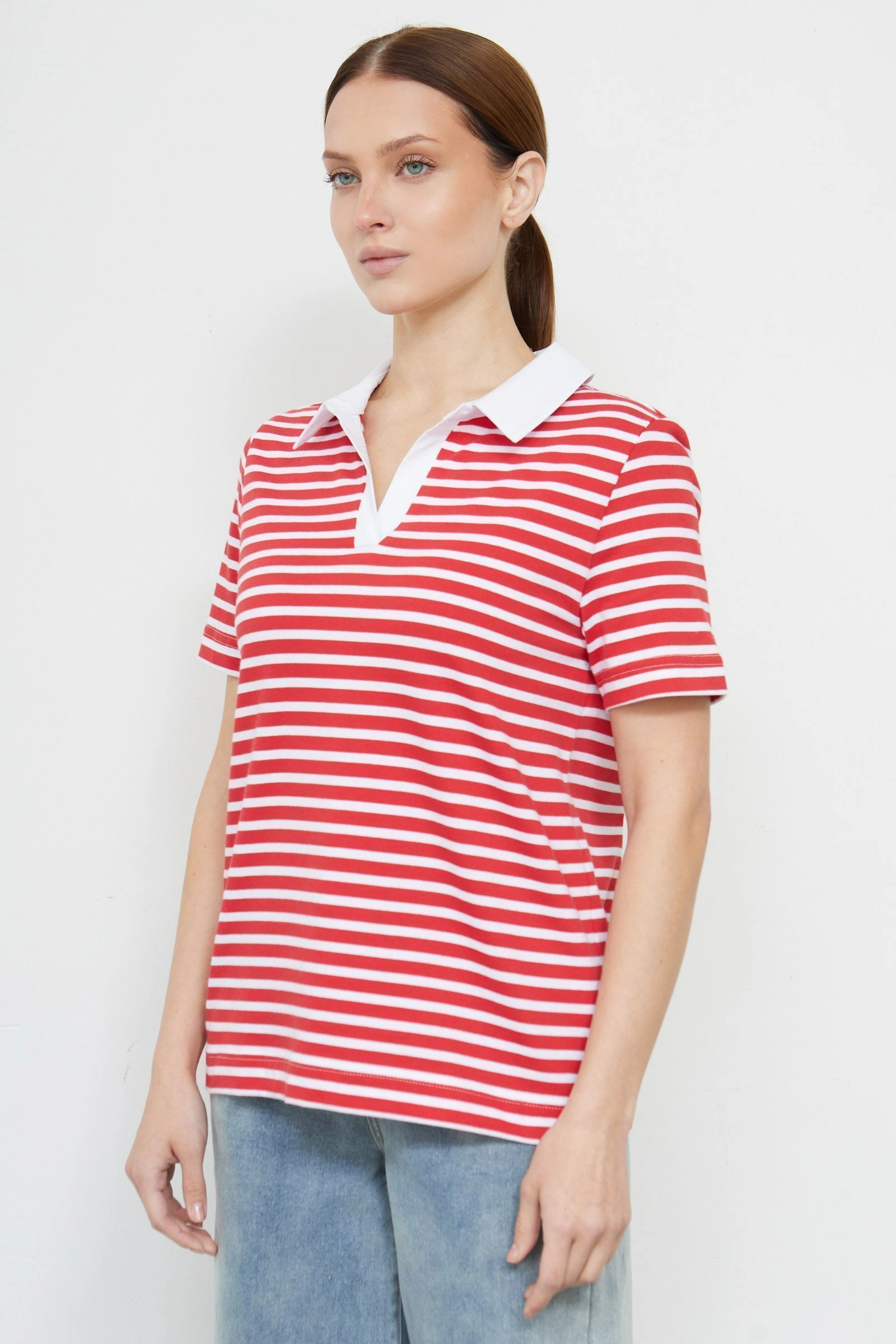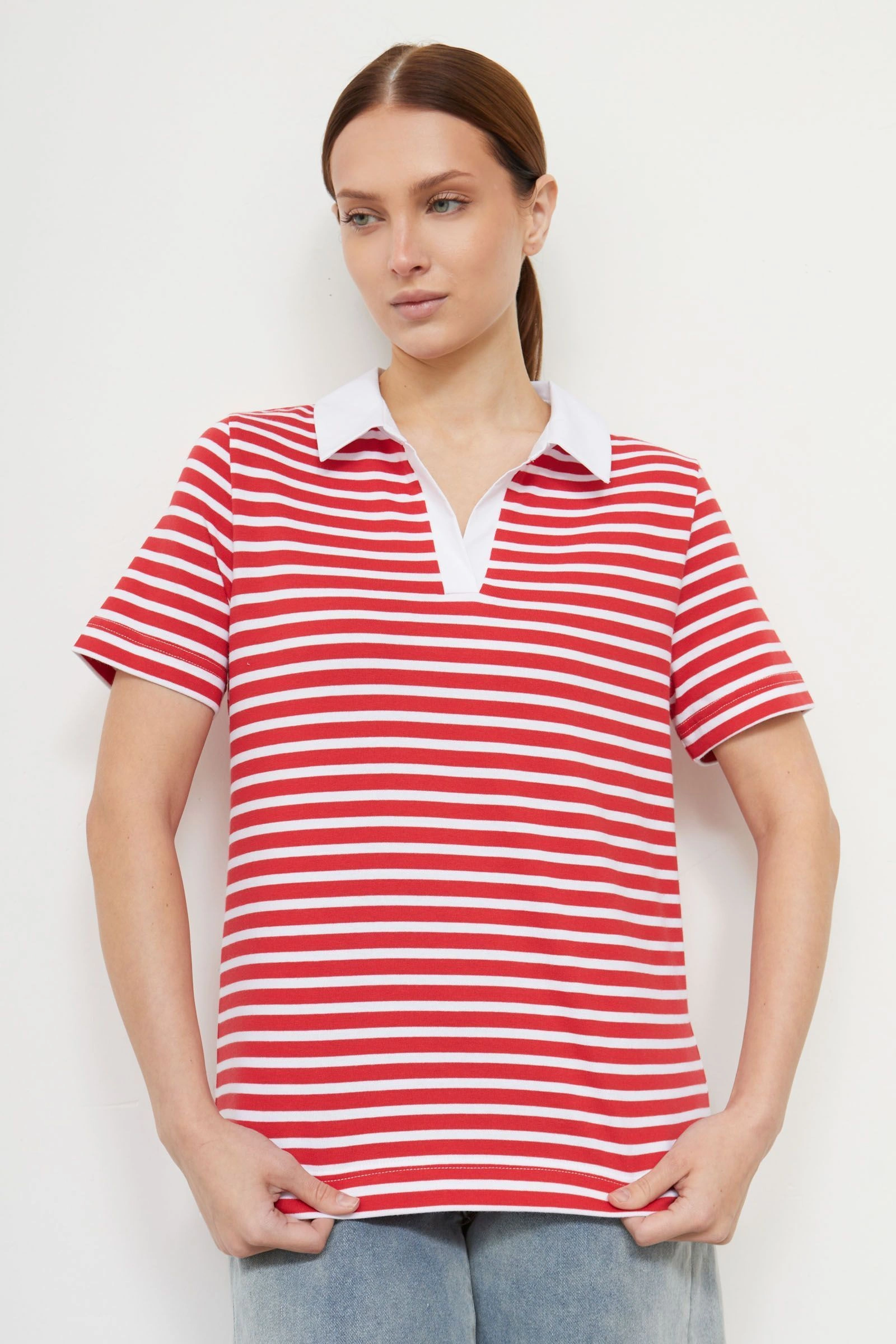 Фуболка-поло в полоску
