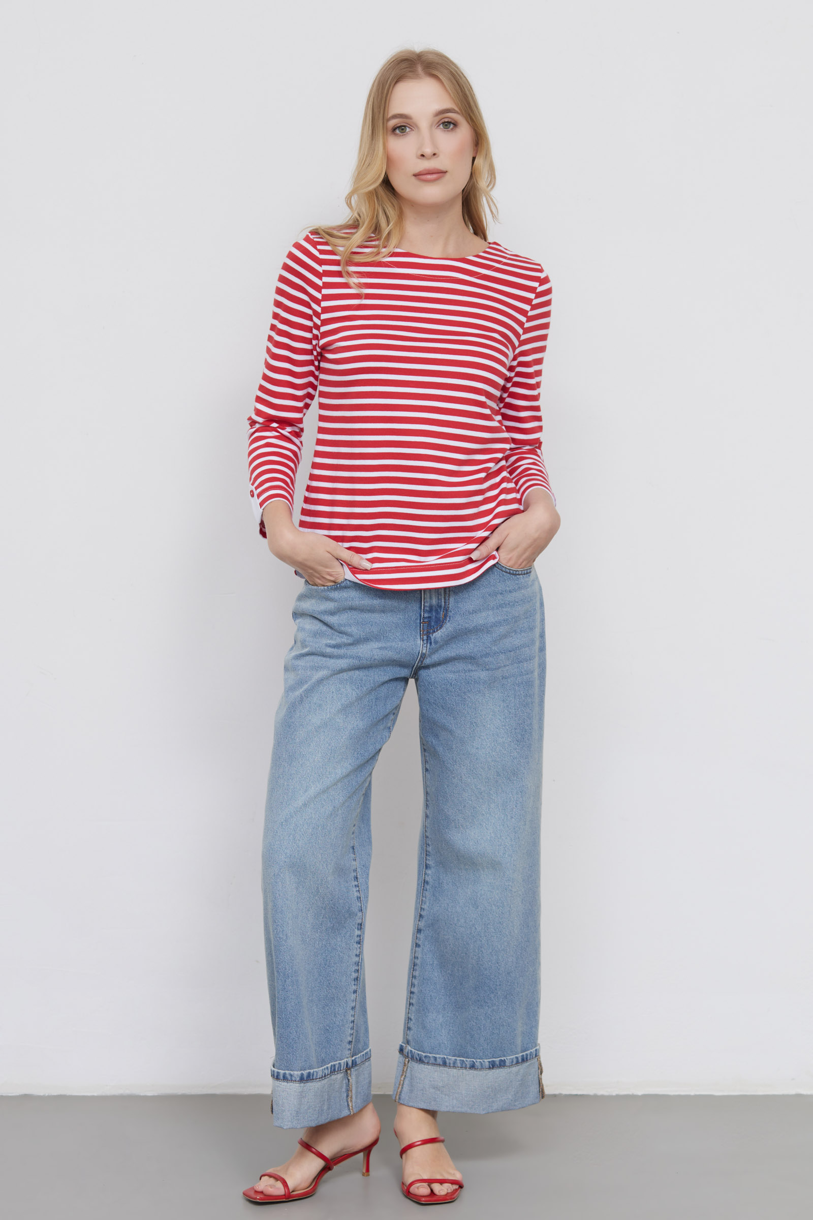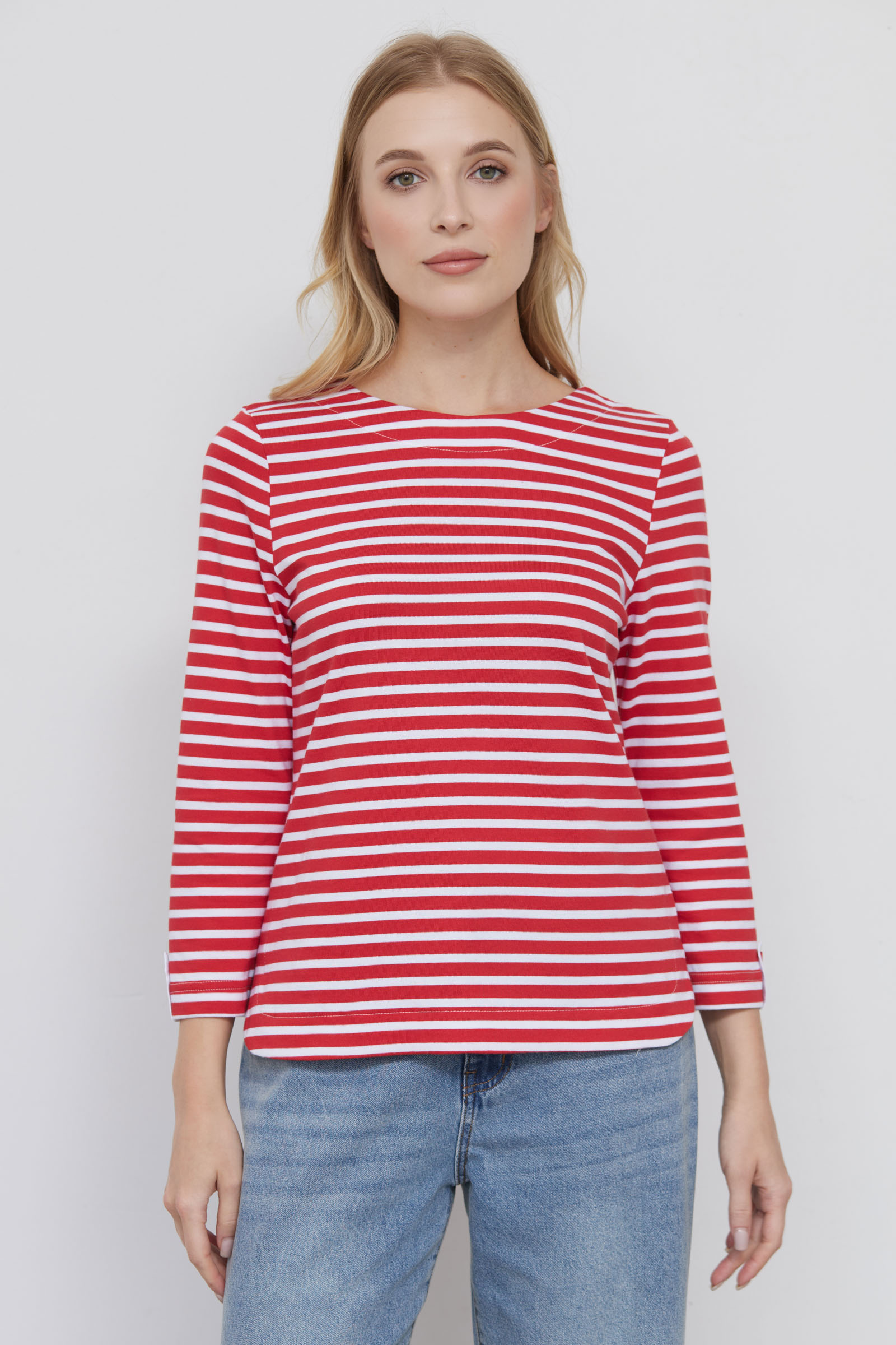 Лонгслив из мягкого хлопка в полоску с декоративной патой на рукавах.