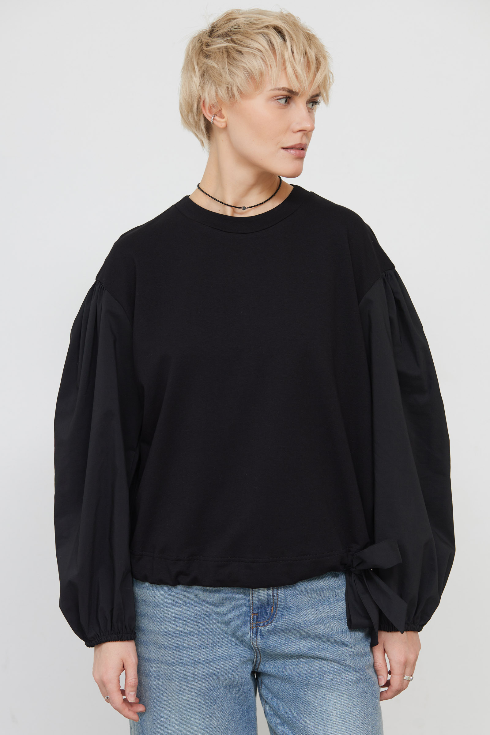 Комбинированный свитшот из футера с рукавами буфами из хлопка и завязками по низу.