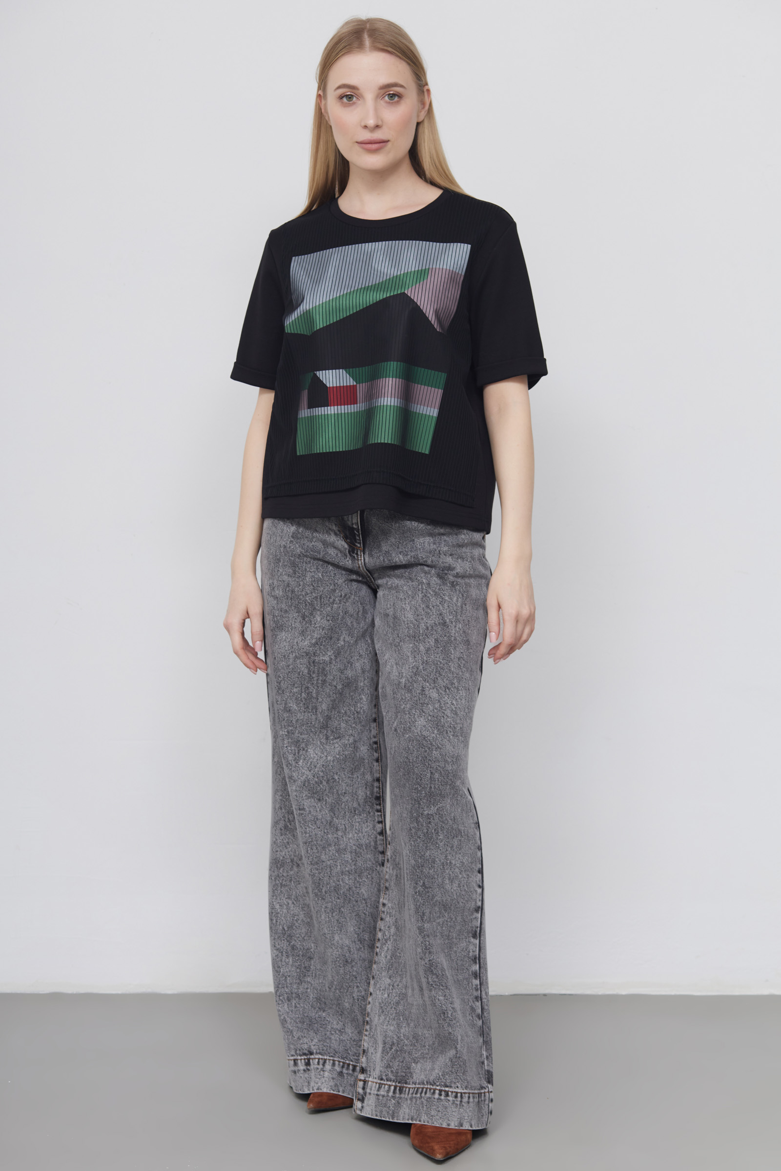 Футболка oversize с крупным печатным принтом и сеткой сверху.