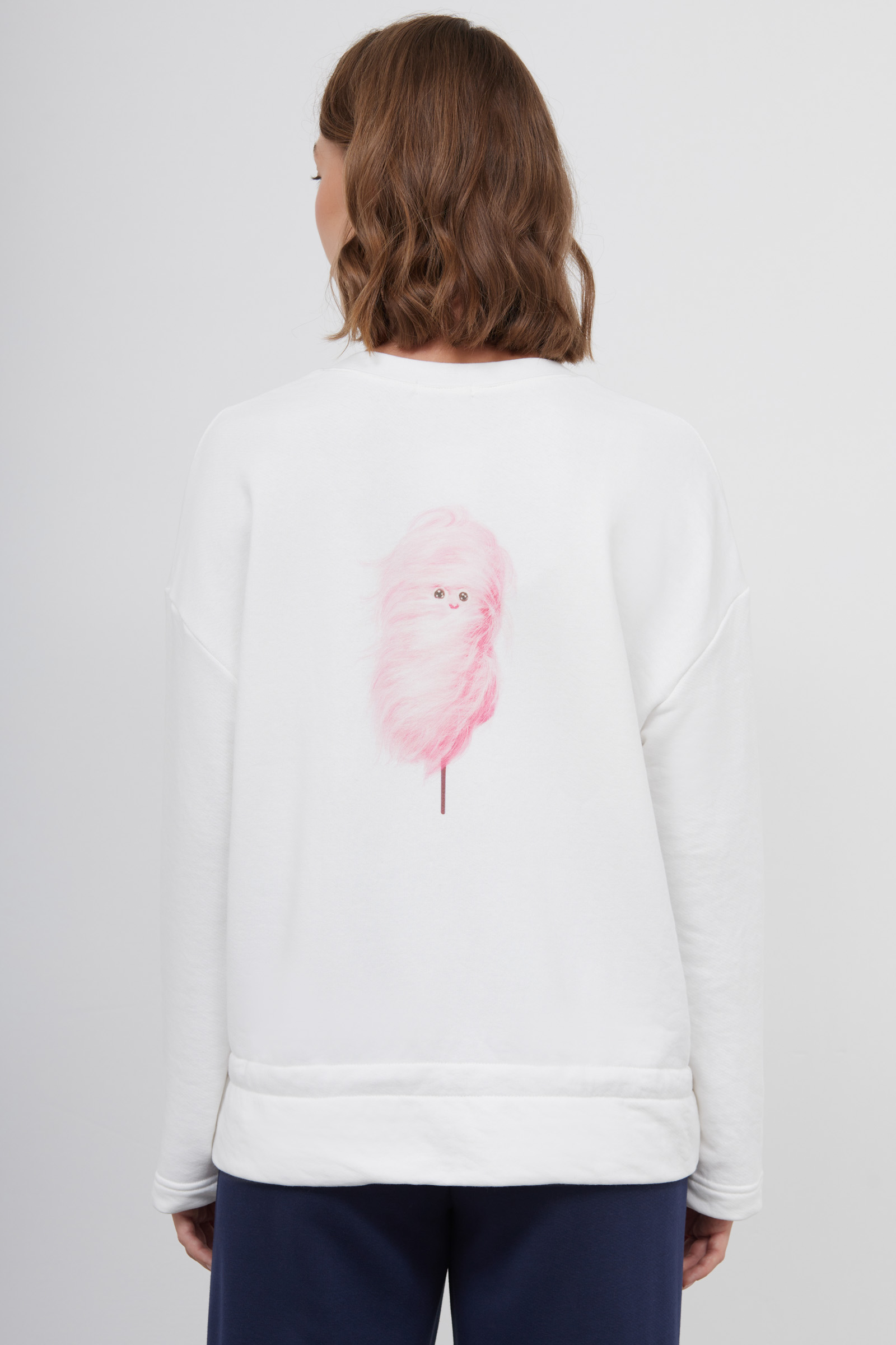 Лонгслив oversize из футера с кулиской по низу и печатью на спинке.