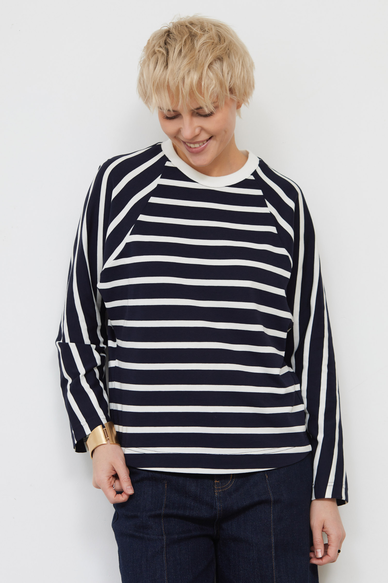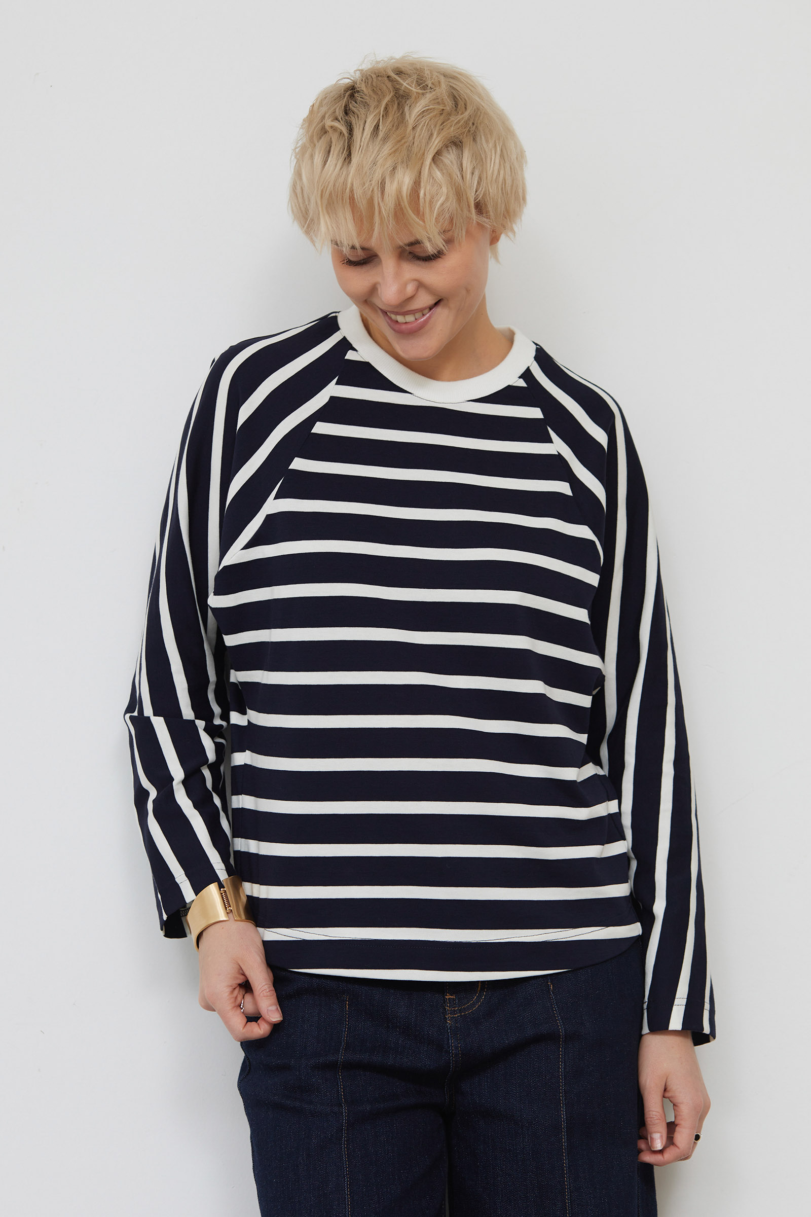 Лонгслив из мягкого хлопкового трикотажа в полоску с рукавами летучая мышь.