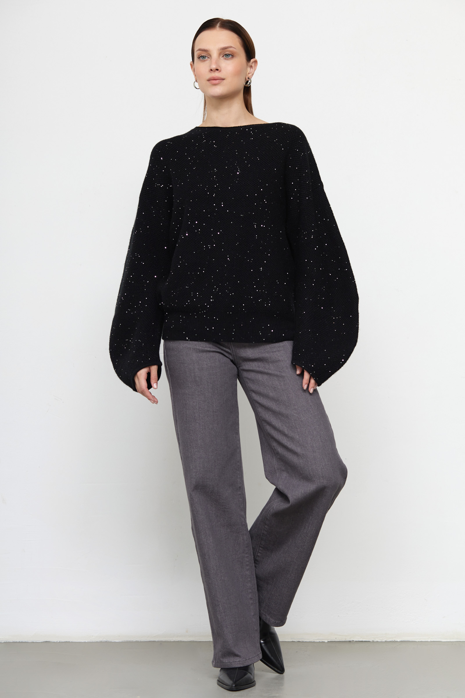 Джемпер oversize из мягкой смесовой шерсти мериноса декорированный пайетками.