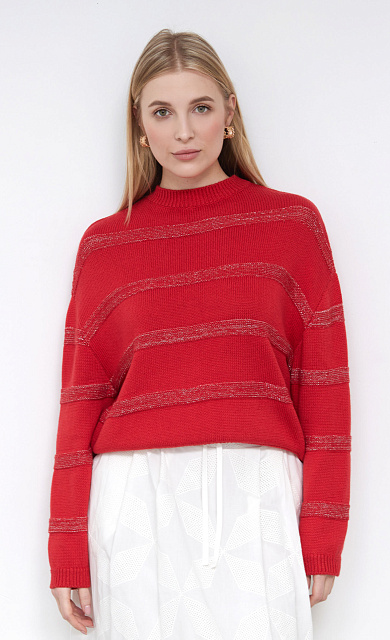 Базовый облегающий джемпер из мягкого вязаного трикотажа в рубчик с добавлением вискозы и шерсти.