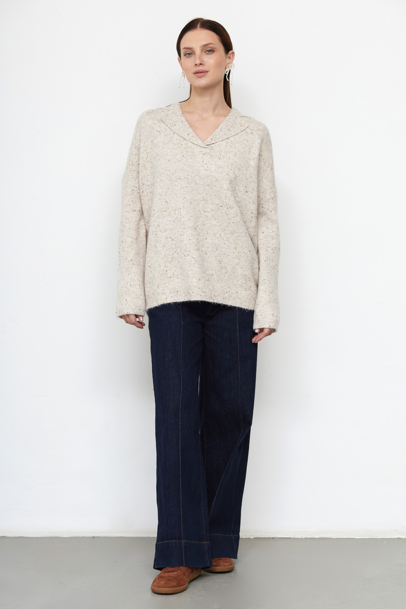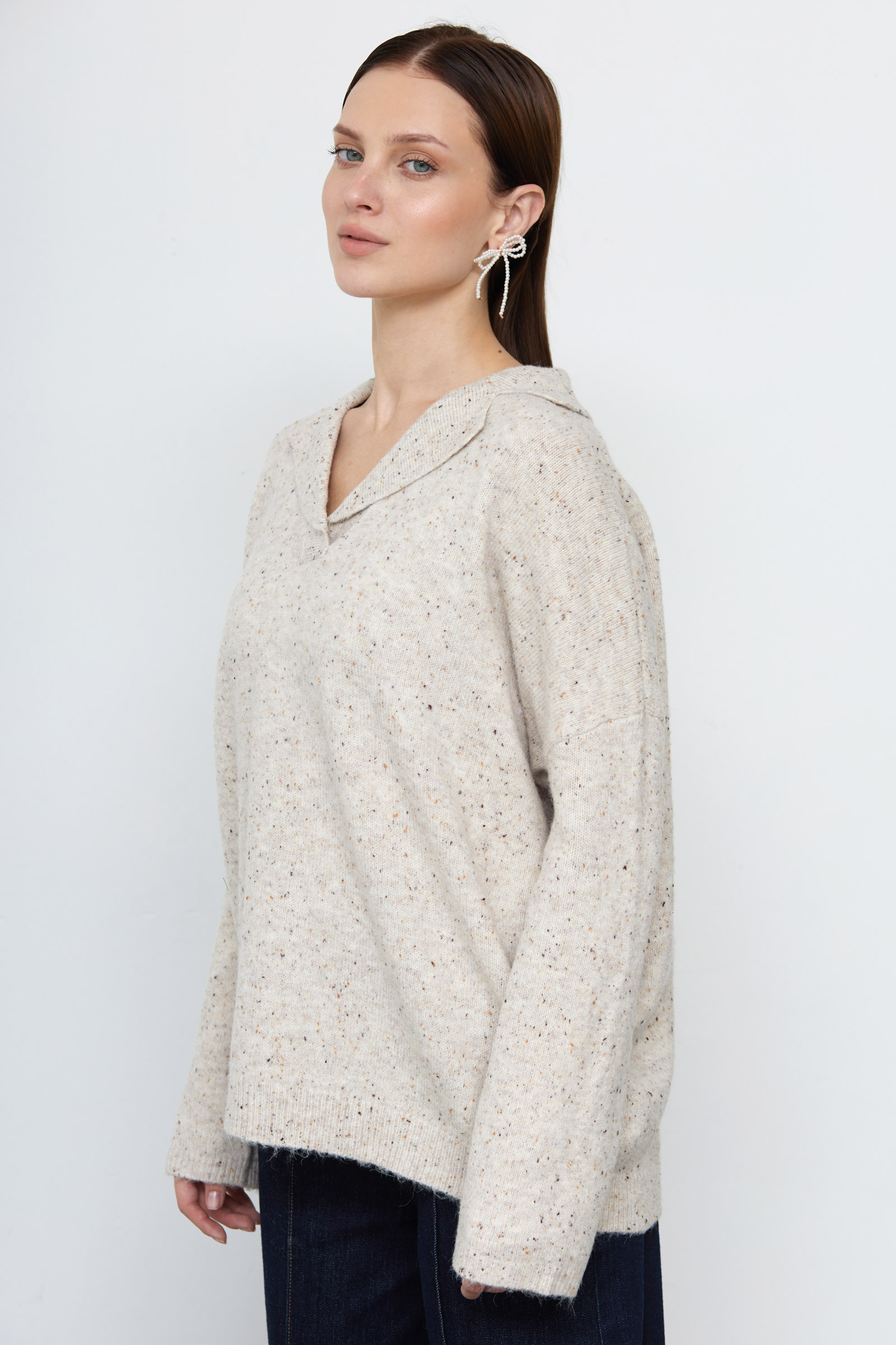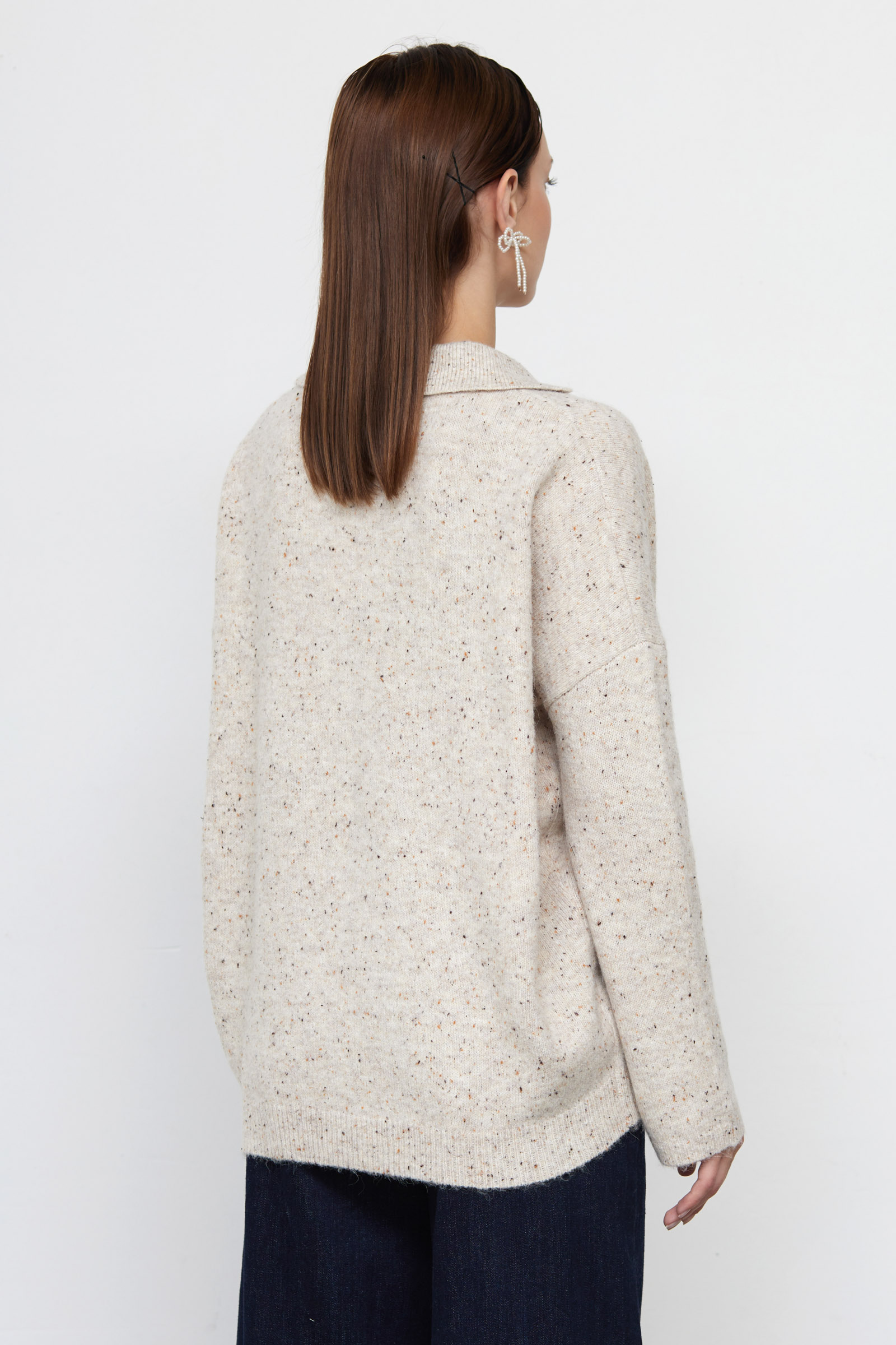 Джемпер oversize из меланжевой пряжи с шерстью и воротником-поло.