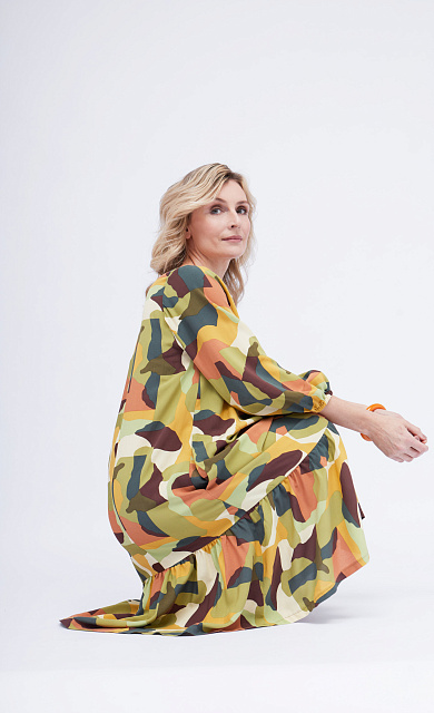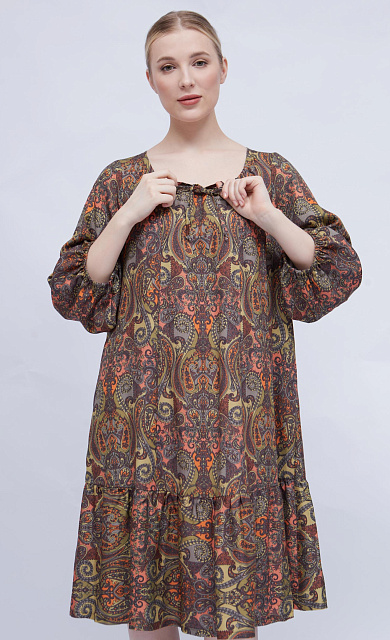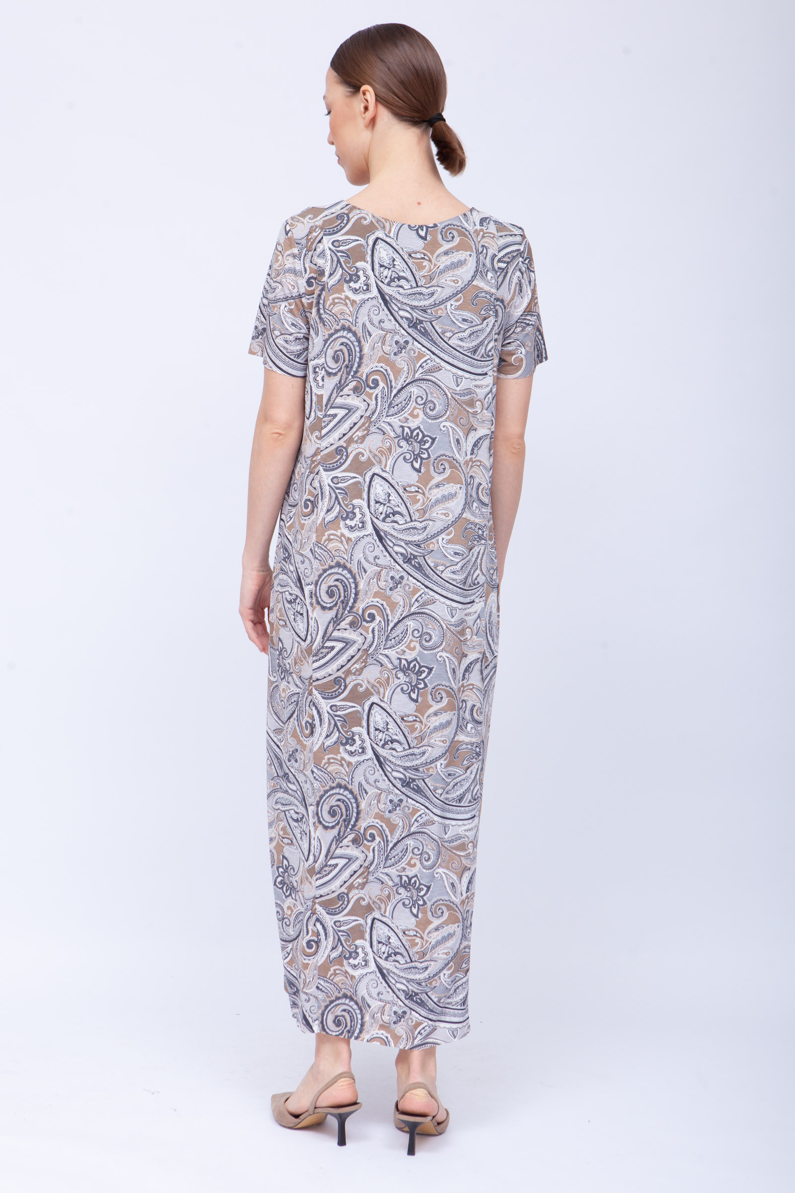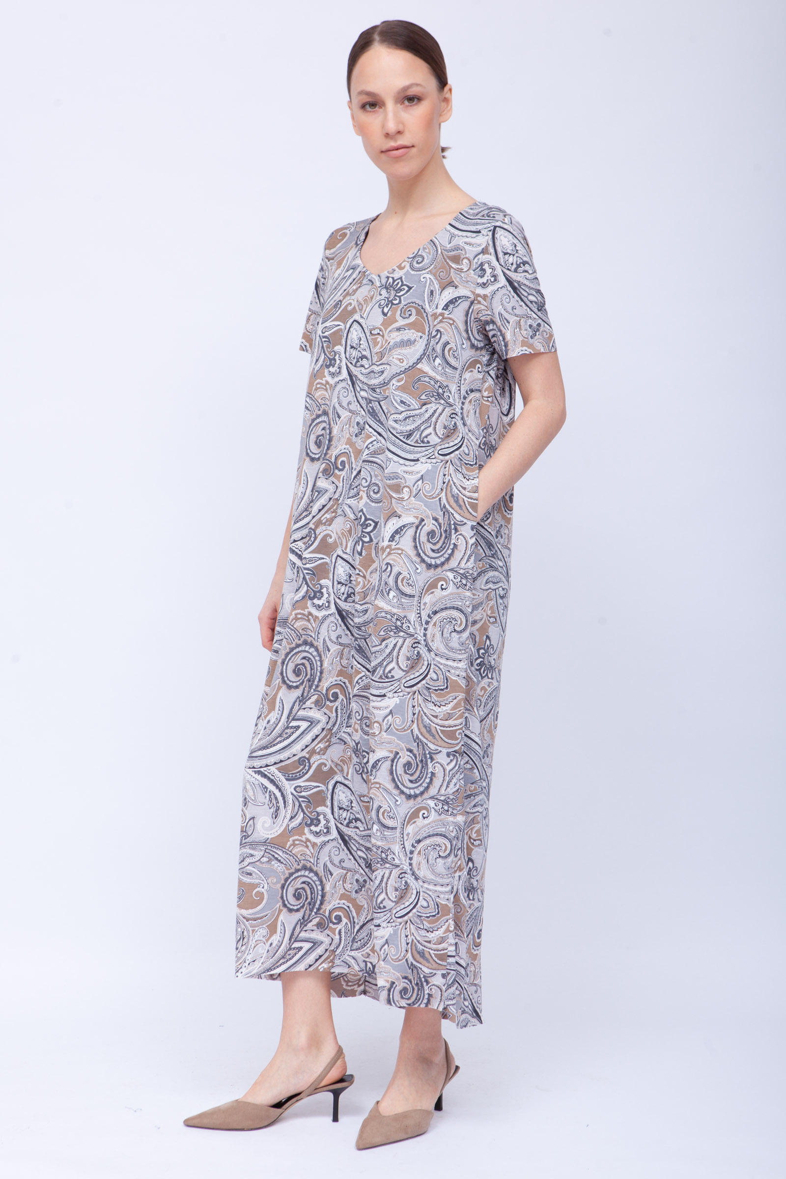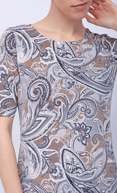 Двуслойное платье из вискозного трикотажа с принтом пейсли.