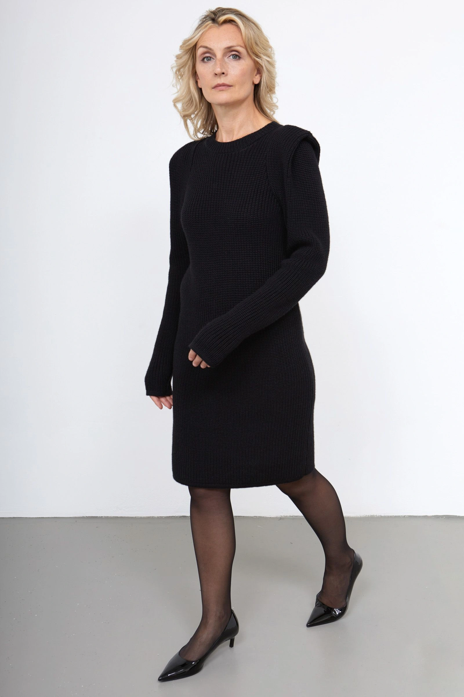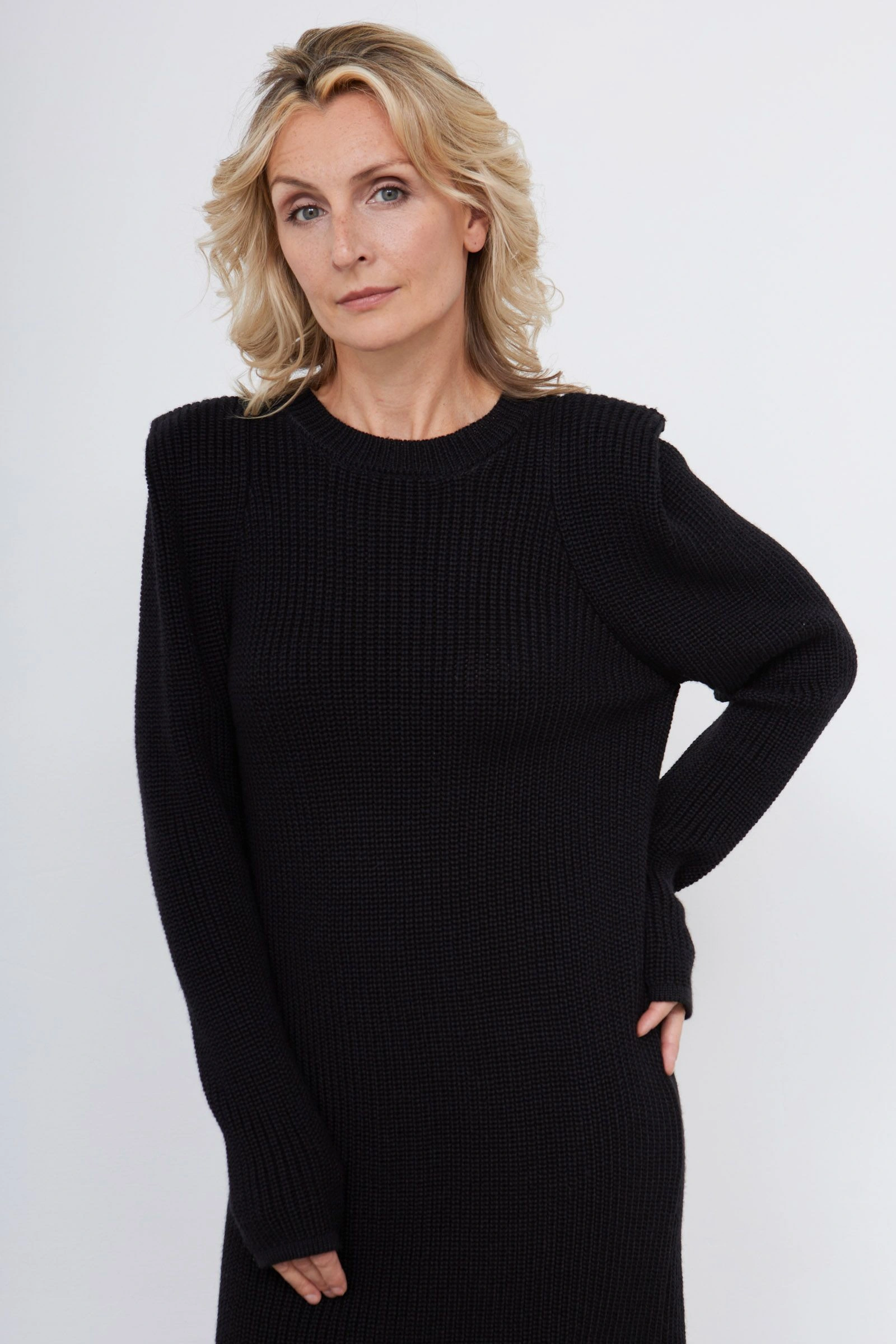 Платье вязаное с акцентными плечами