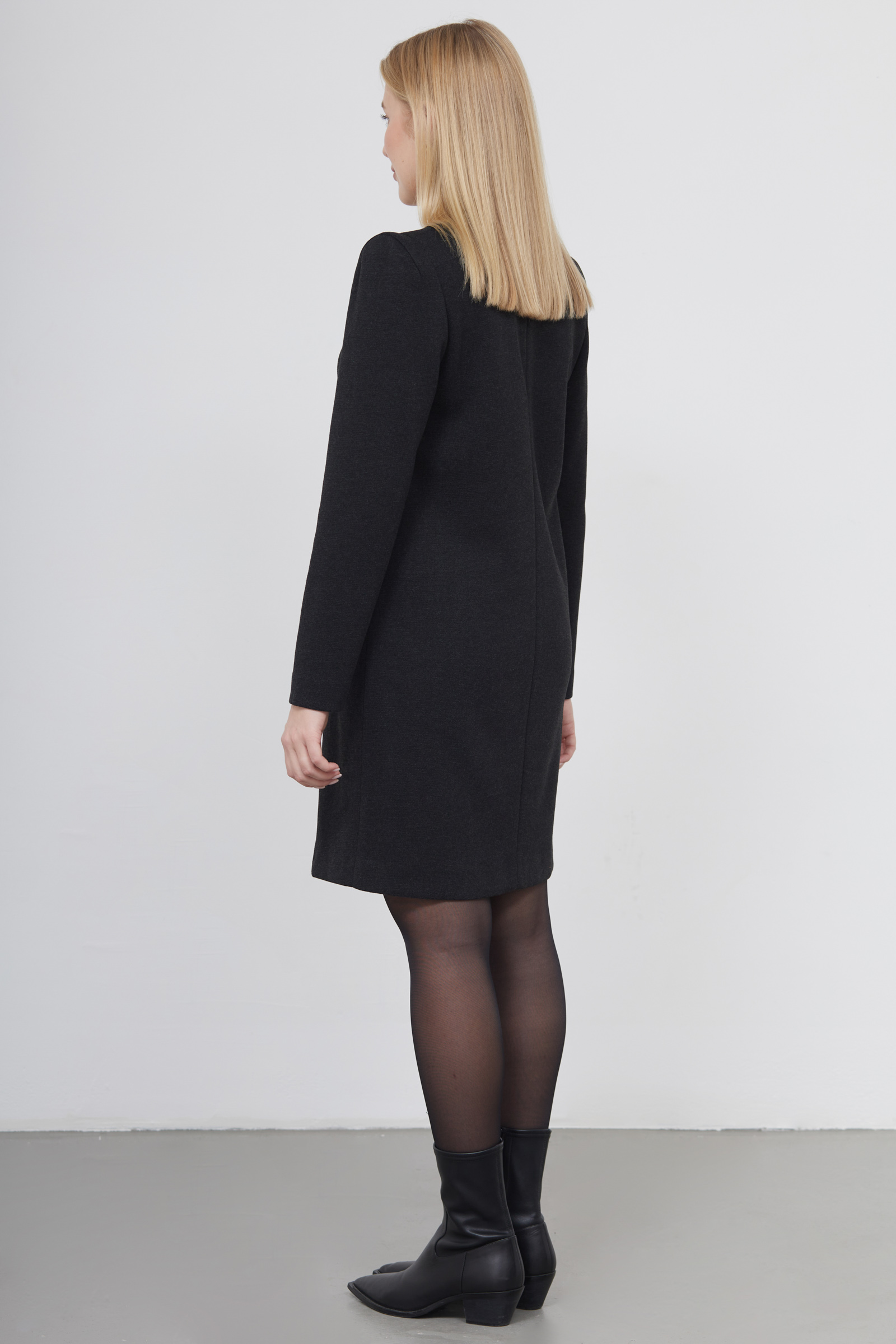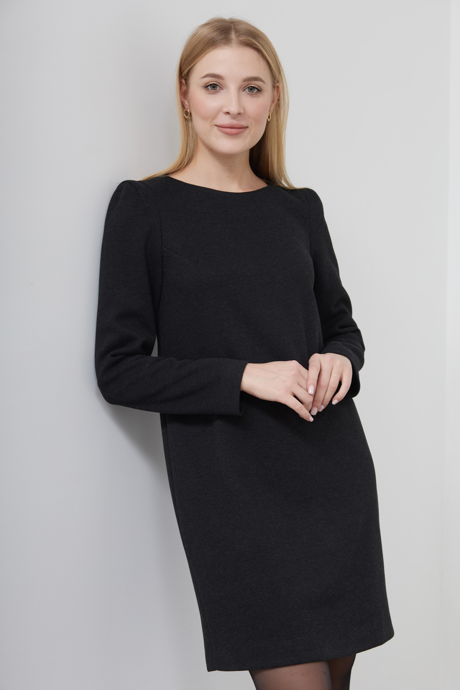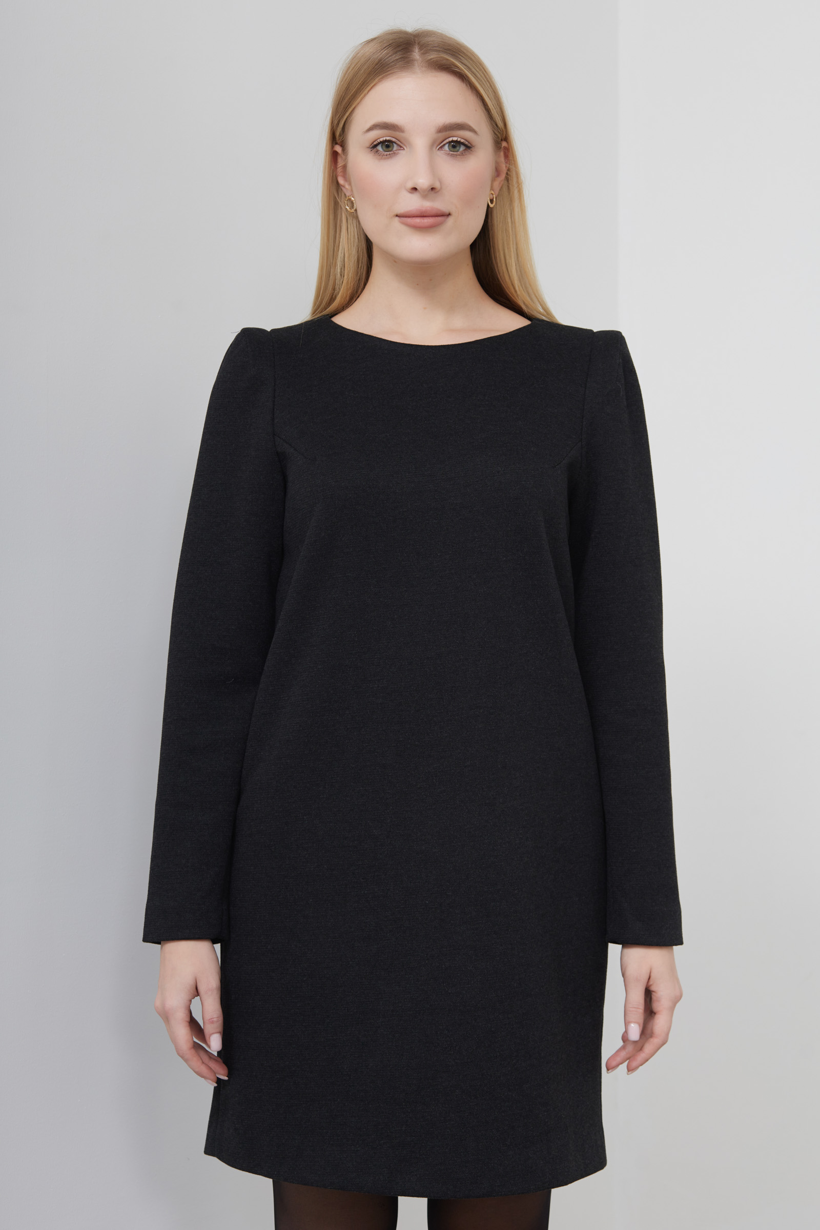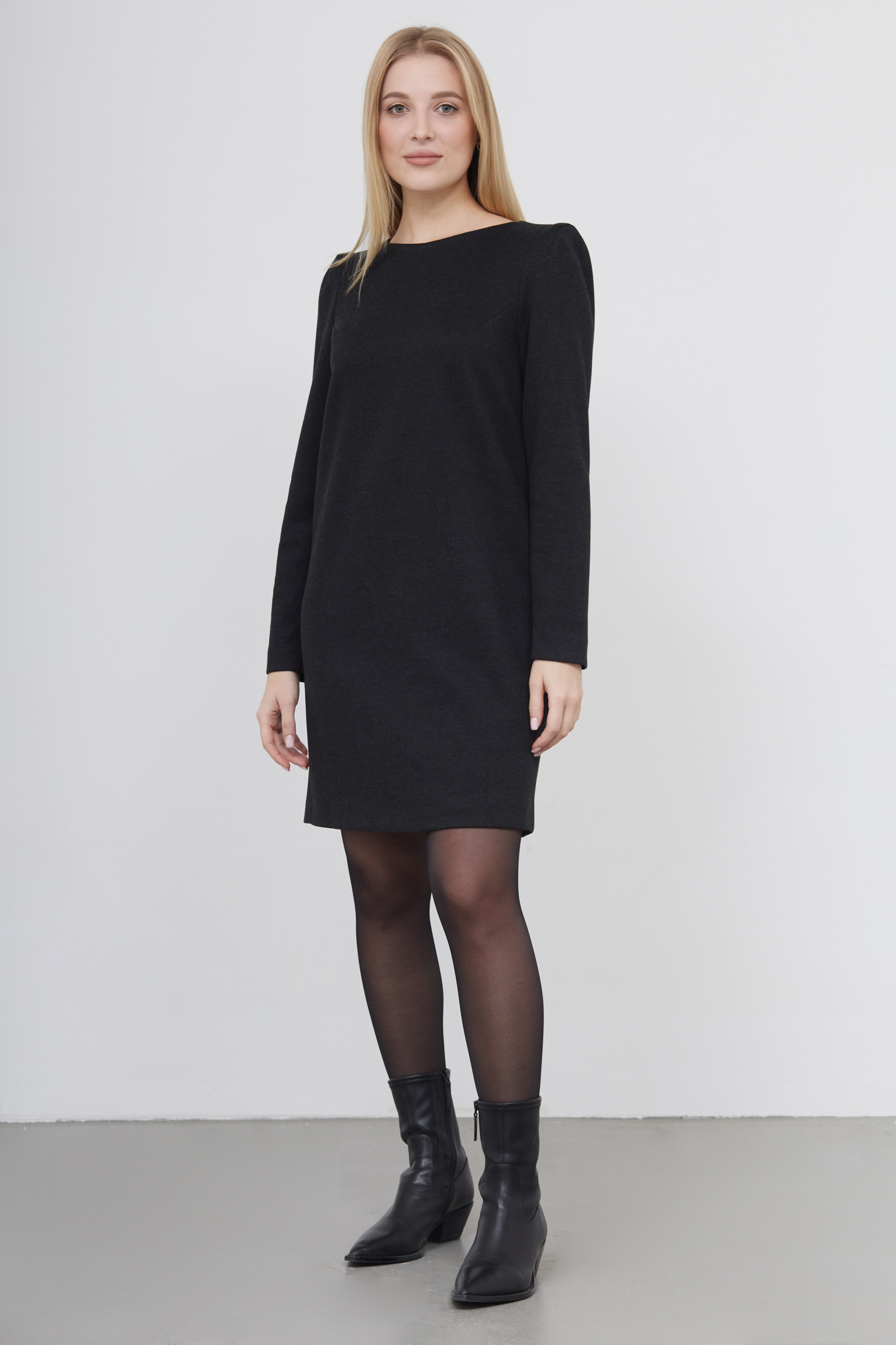 Короткое платье из плотного поливискозного трикотажа со вставками на плечах.