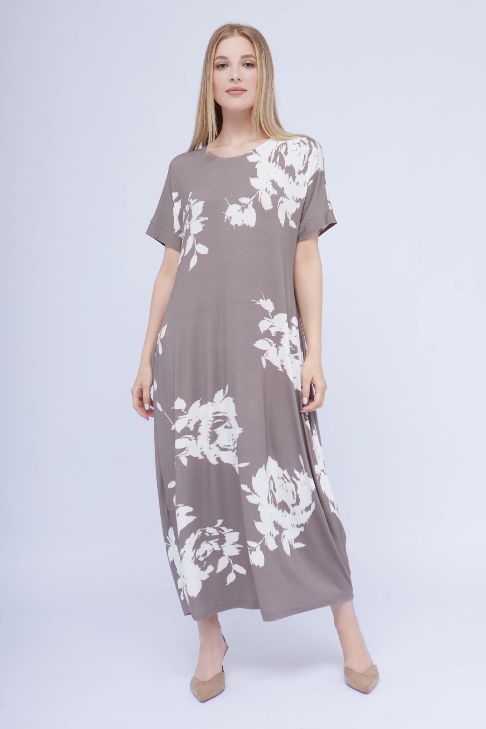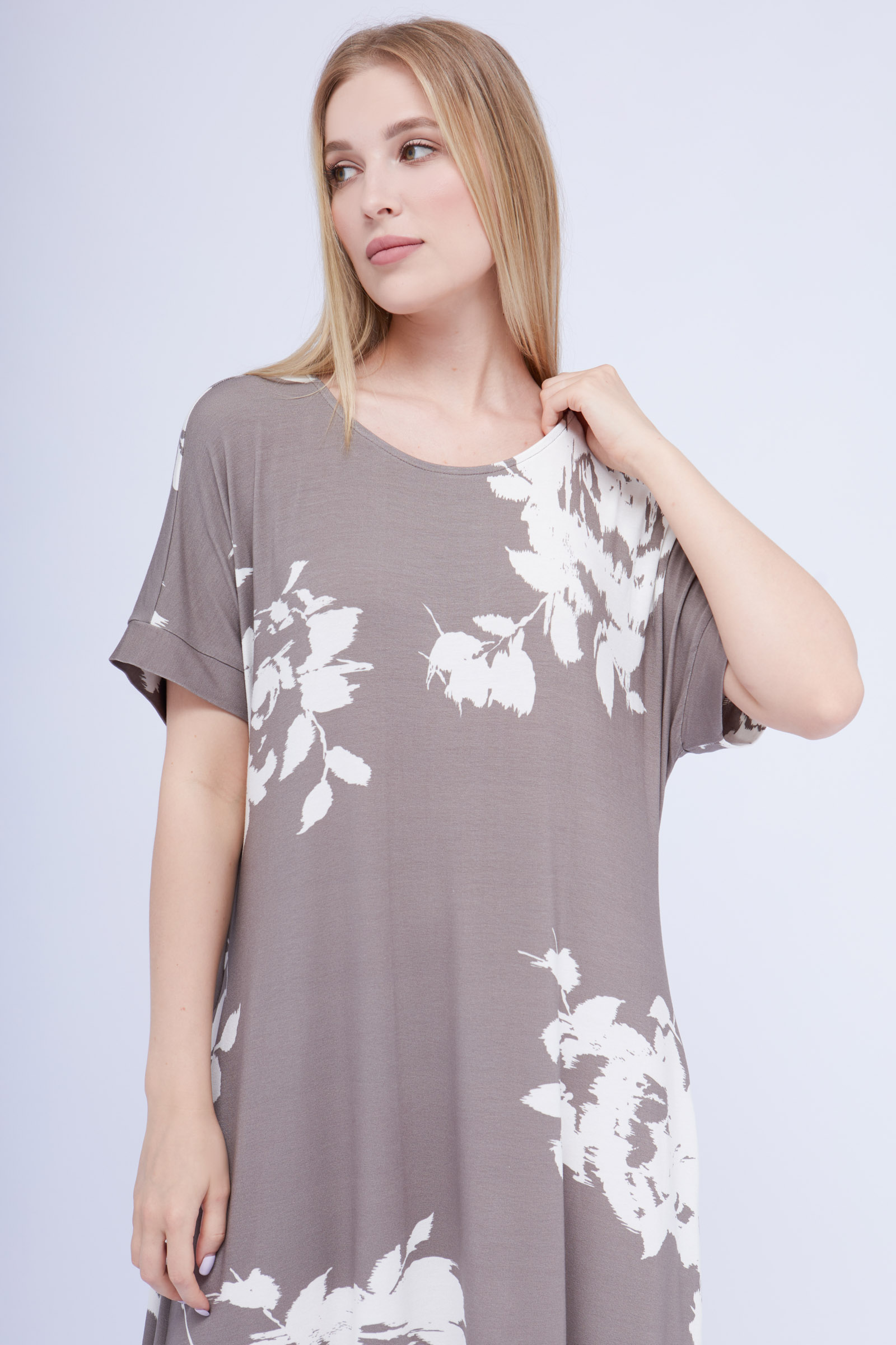 Платье из эластичного вискозного трикотажа с цветочным принтом.