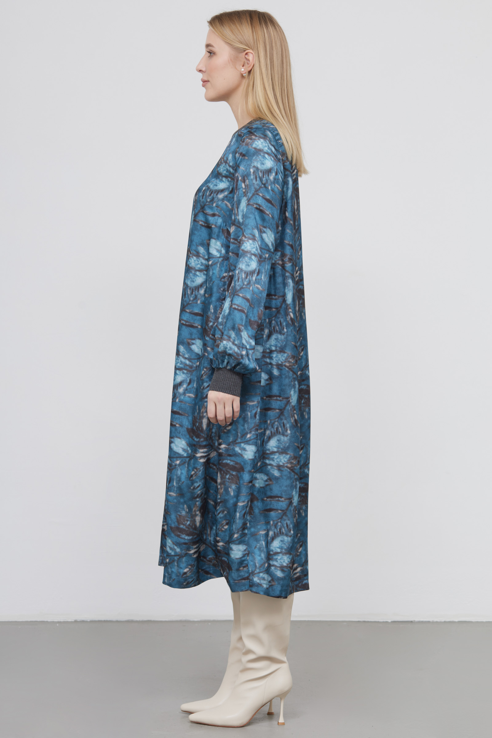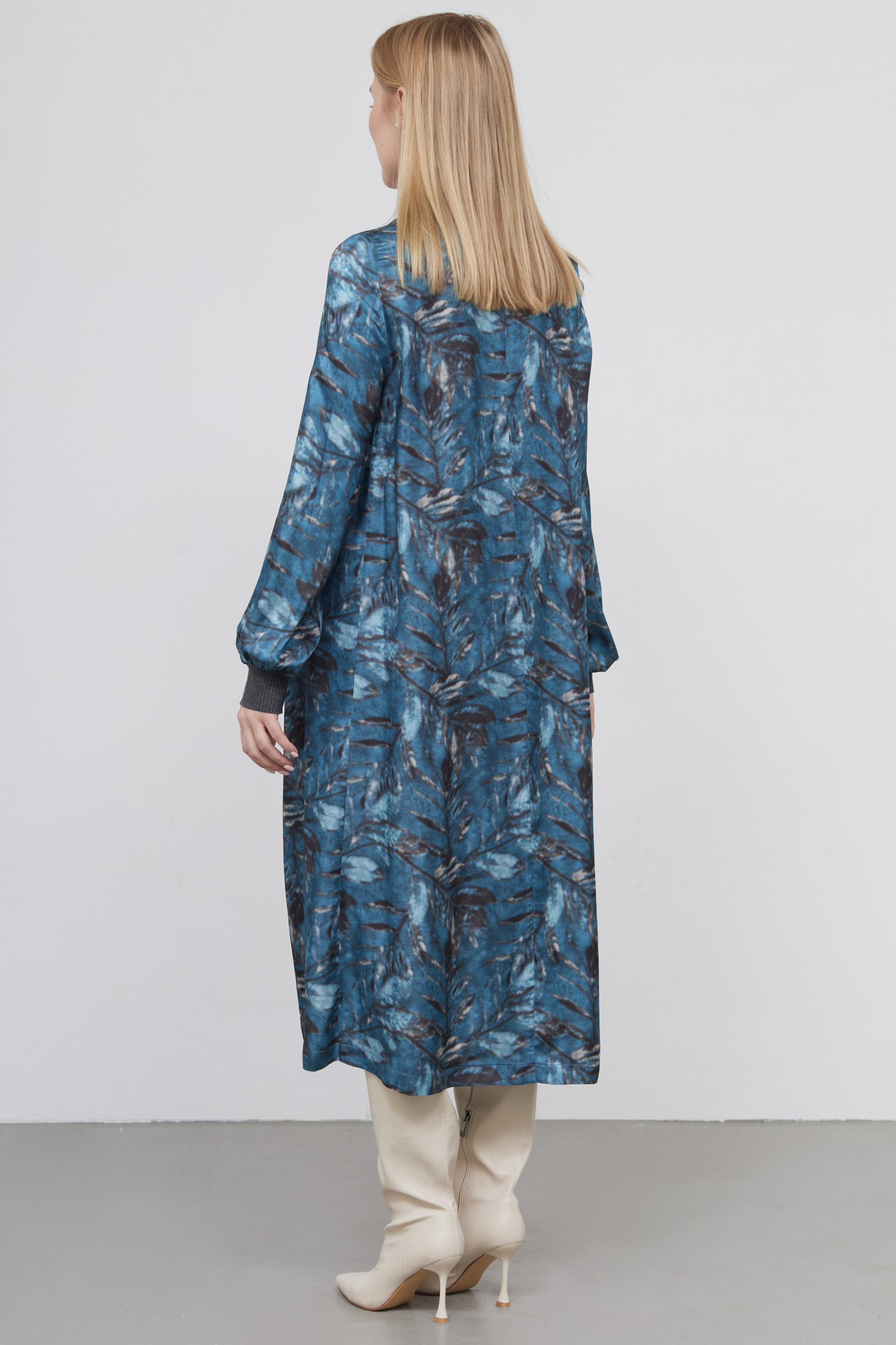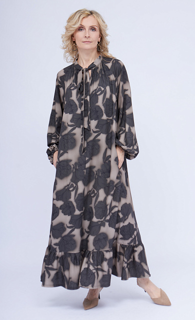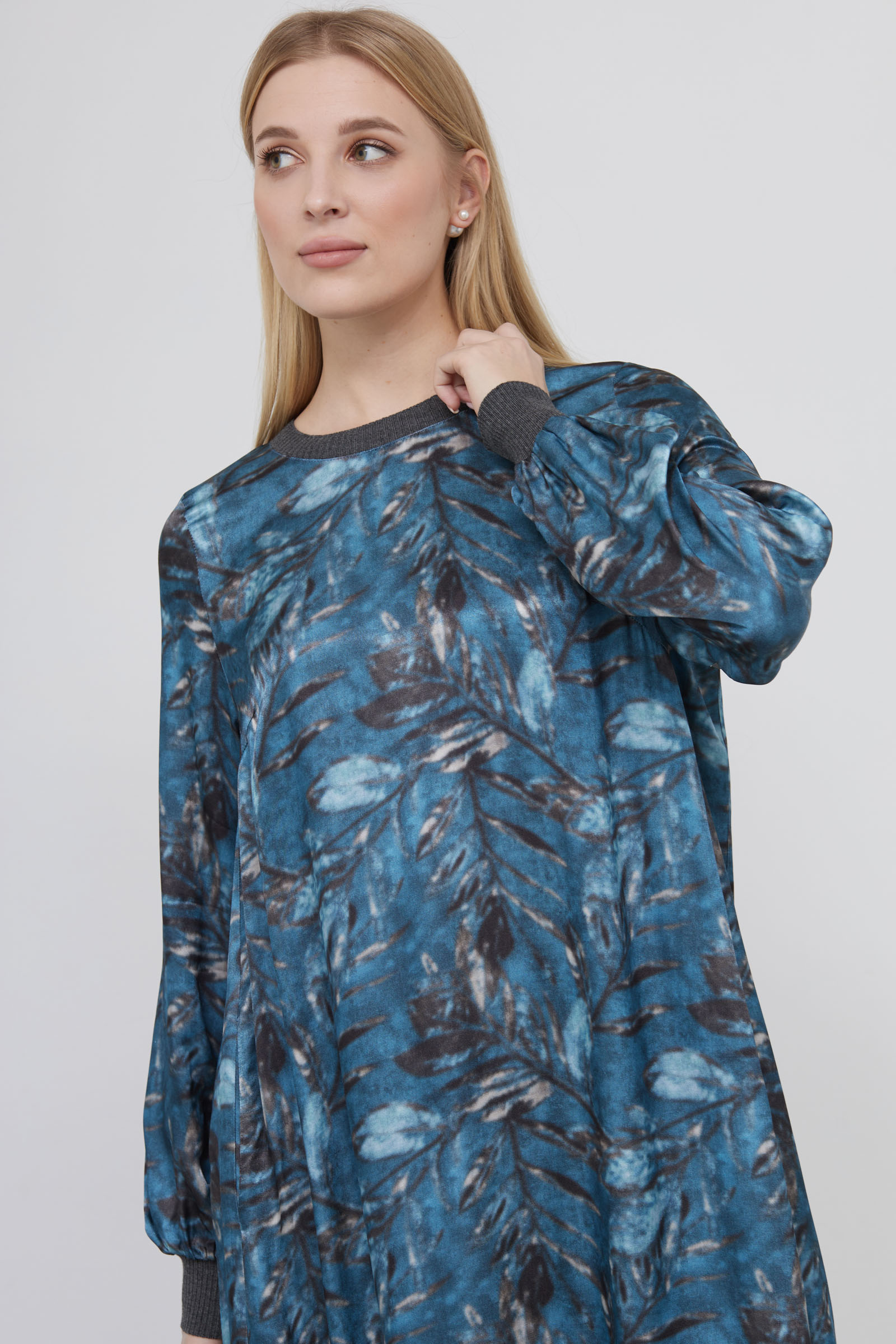 Длинное атласное платье oversize с цветочным рисунком и трикотажной отделкой.