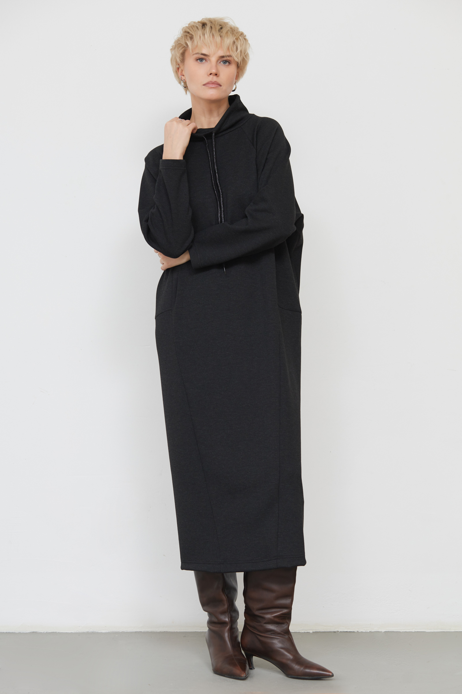 Платье кокон из мягкого неопрена с широким воротником на кулиске.