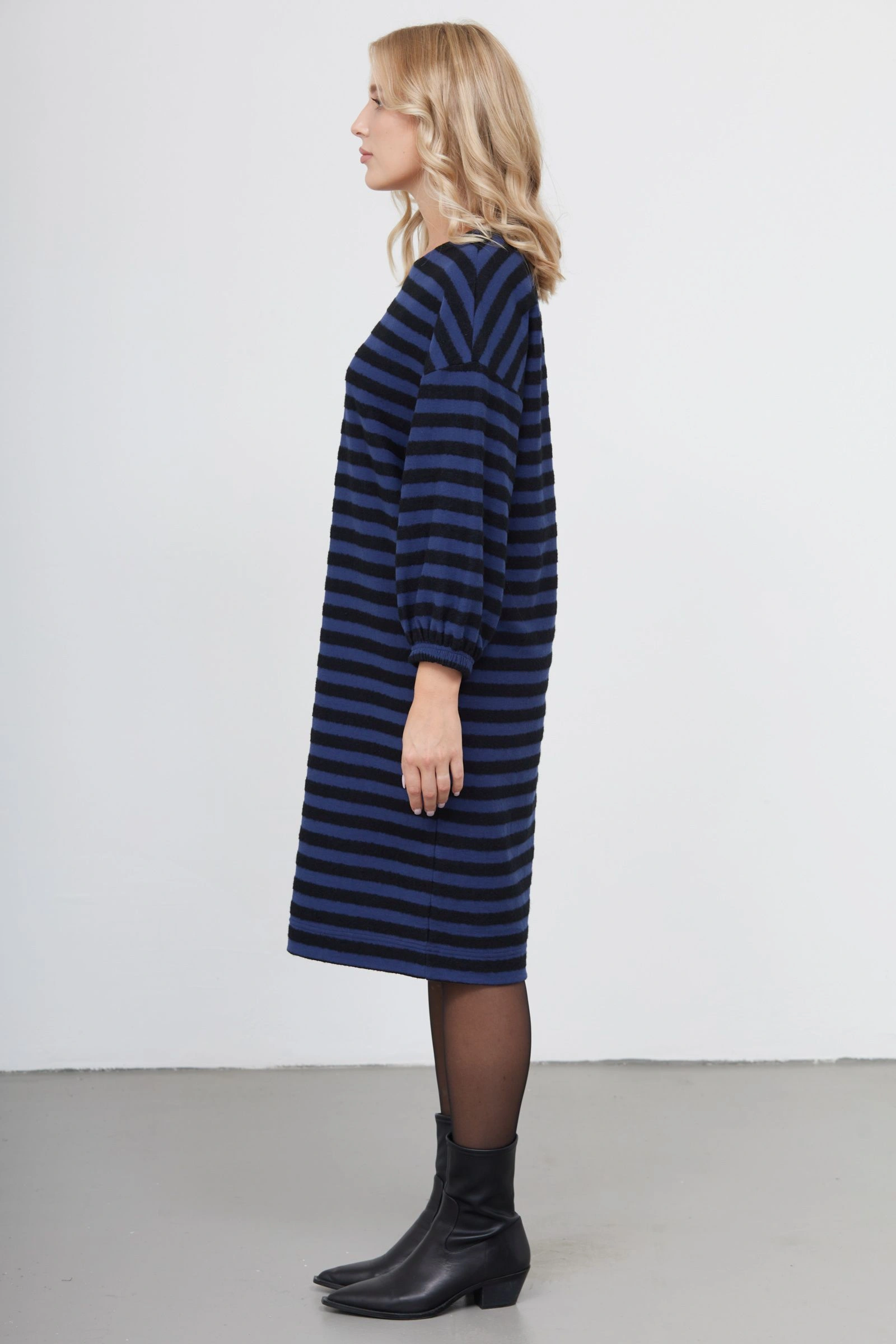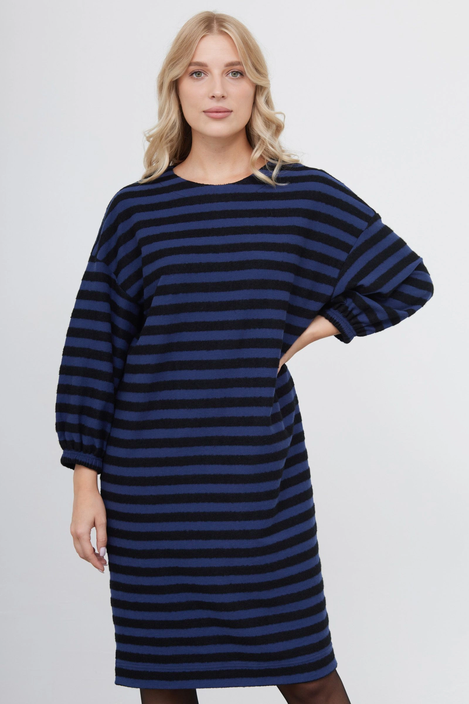 Платье oversize из мягкого трикотажа в фактурную полоску.
