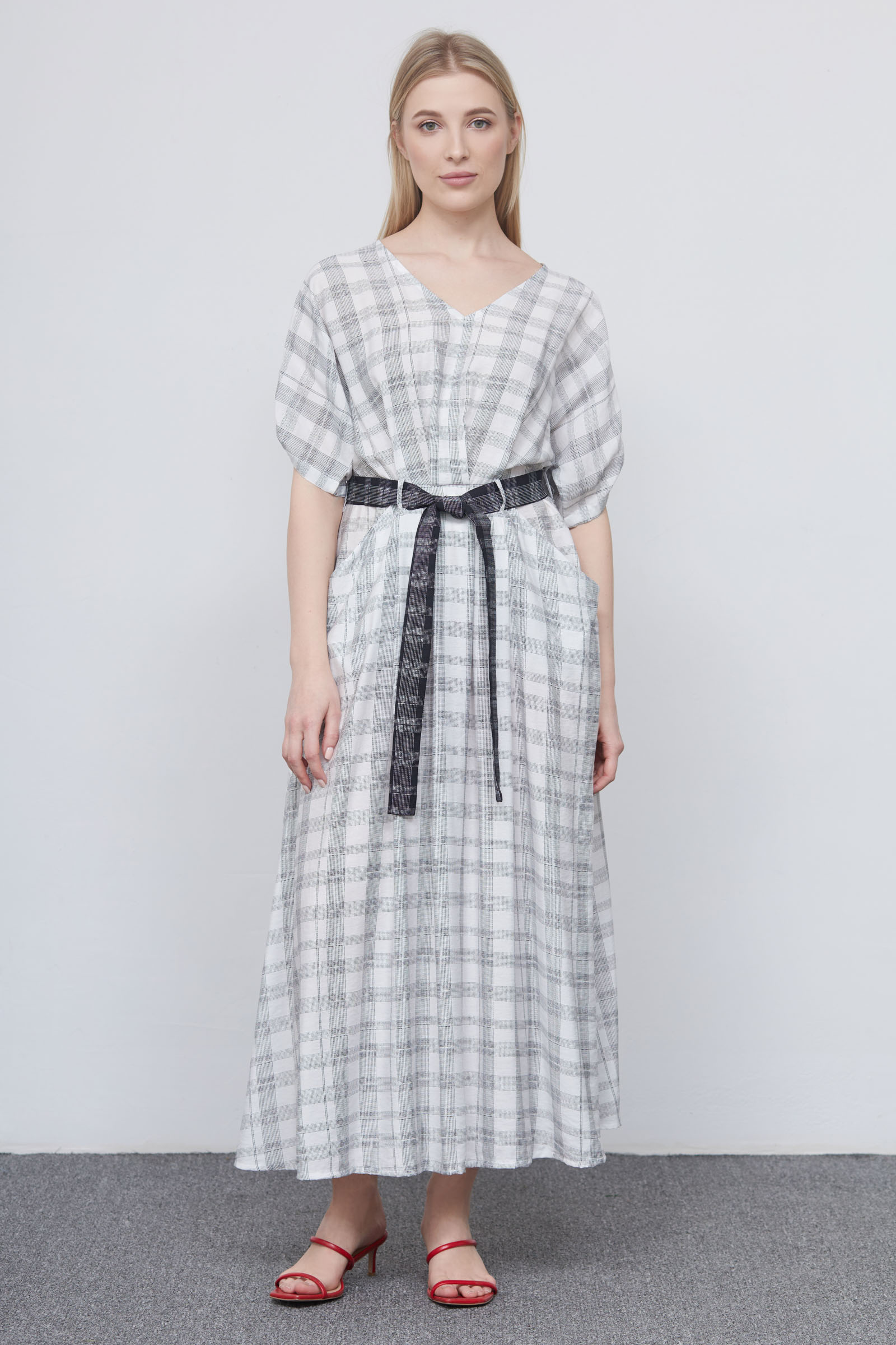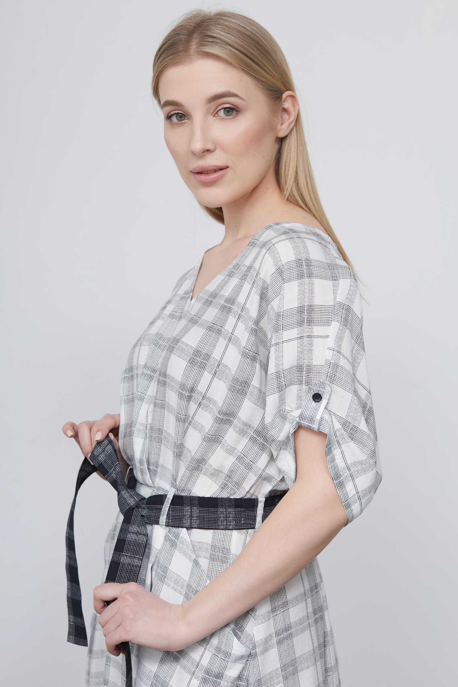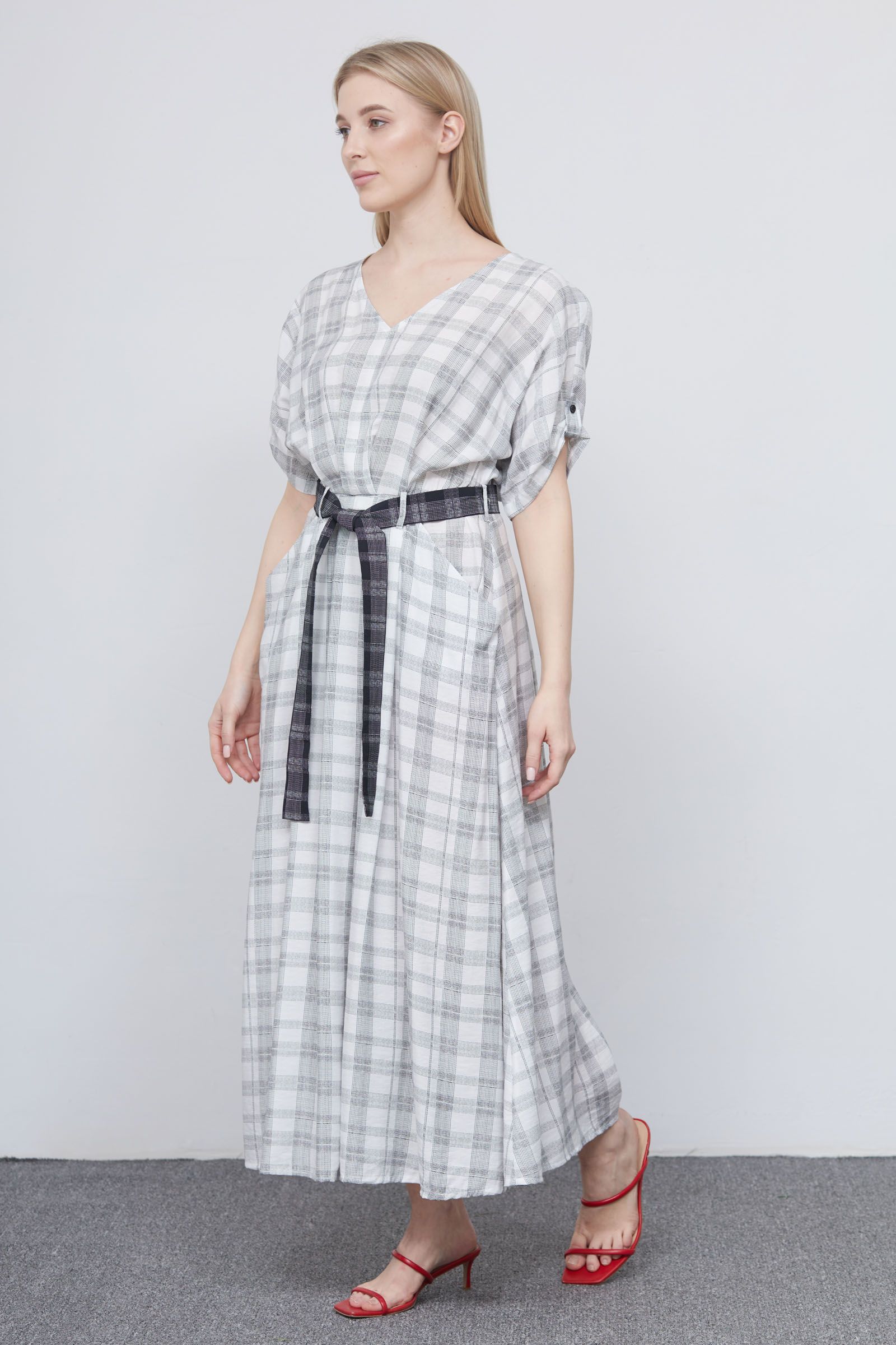 Платье в клетку с поясом