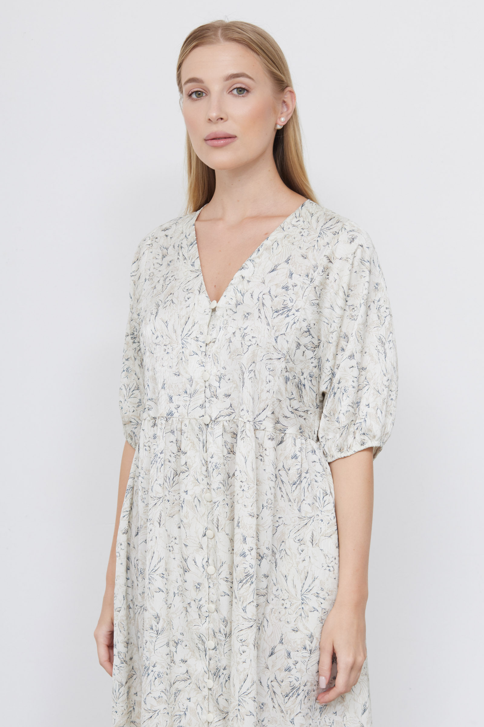 Платье из шифона на пуговицах с цветочным принтом и рукавом летучая мышь.