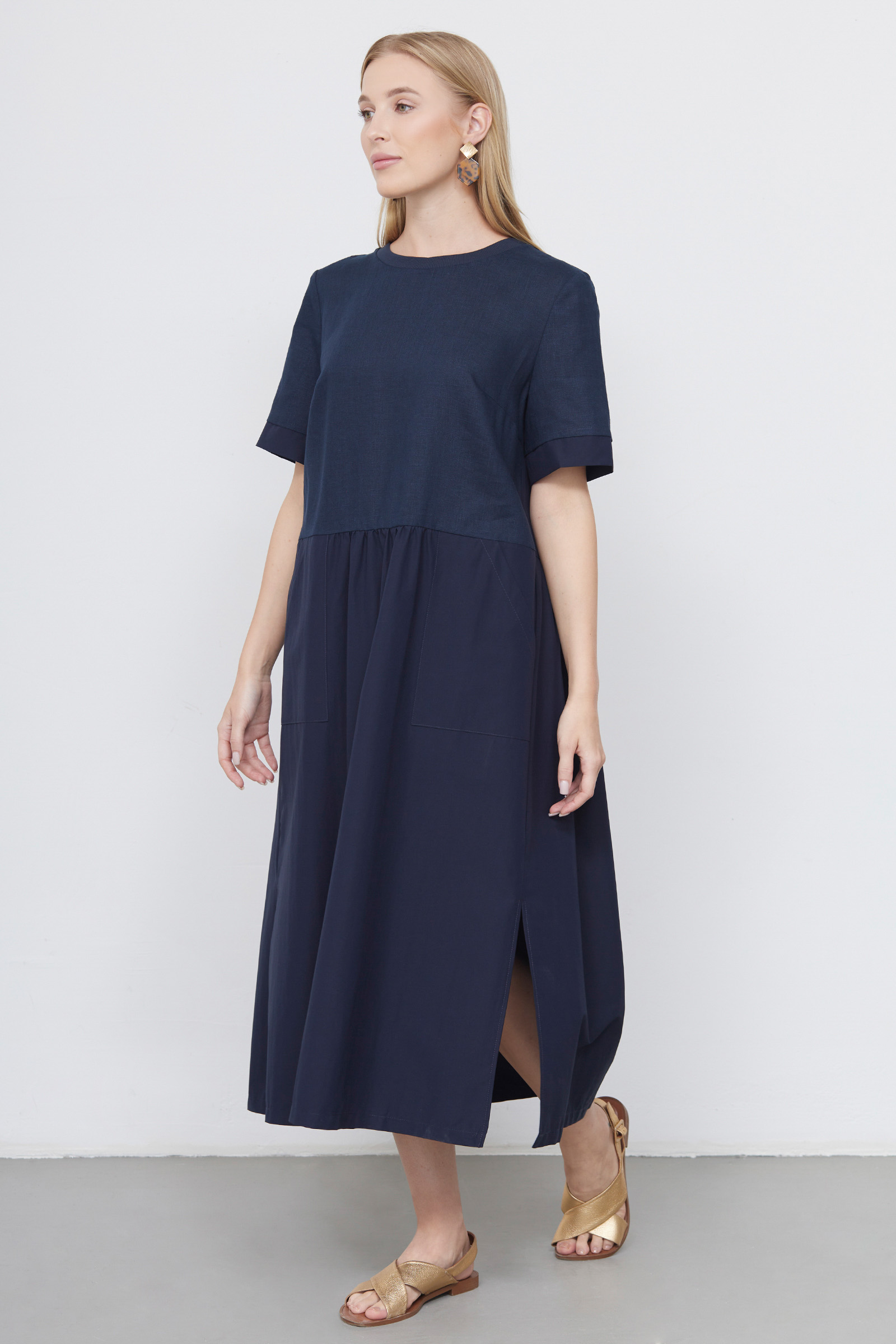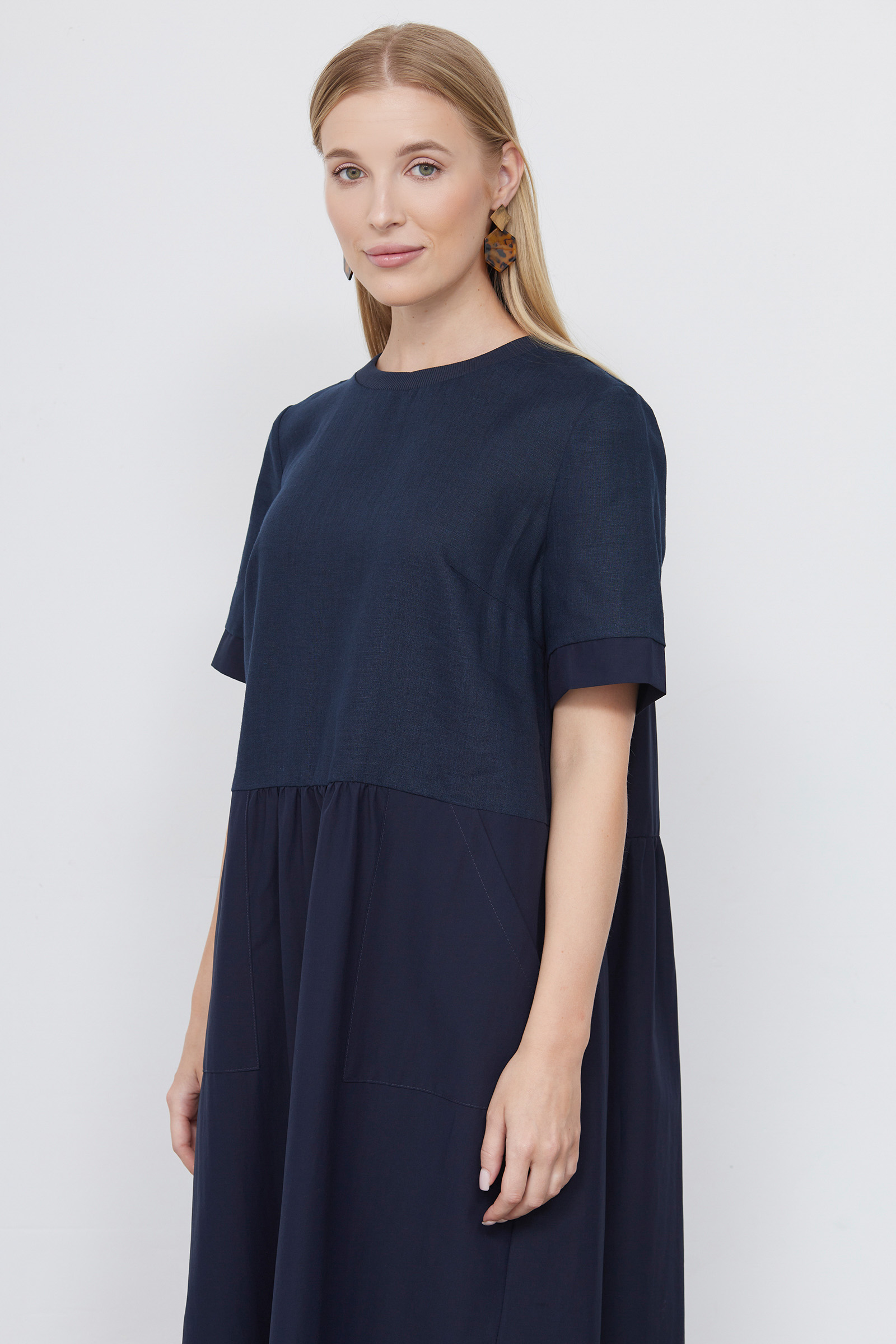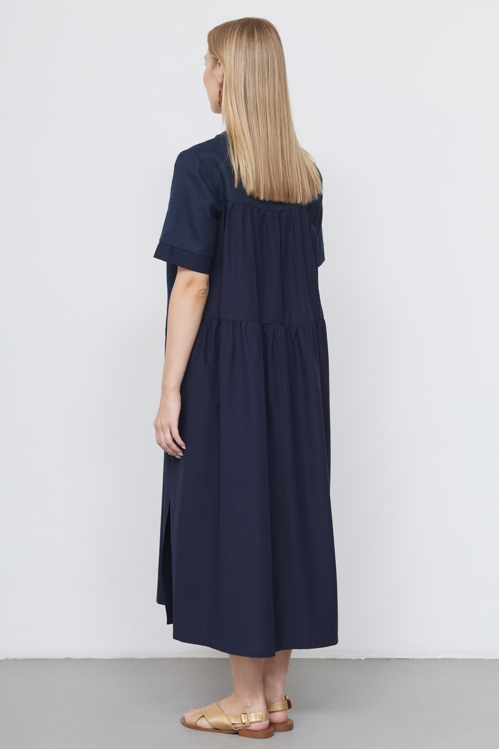 Комбинированное платье oversize изо льна и хлопка с ярусной спинкой.