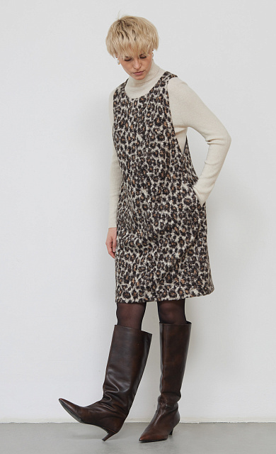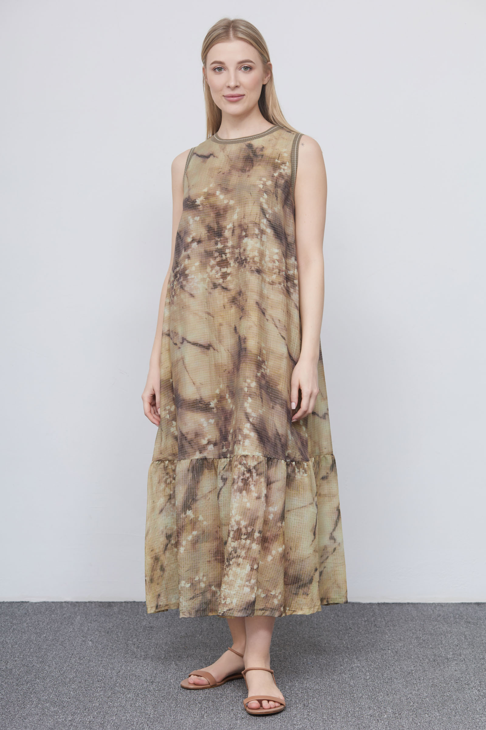Сарафан oversize из струящейся ткани с абстрактным принтом и воланом по низу.