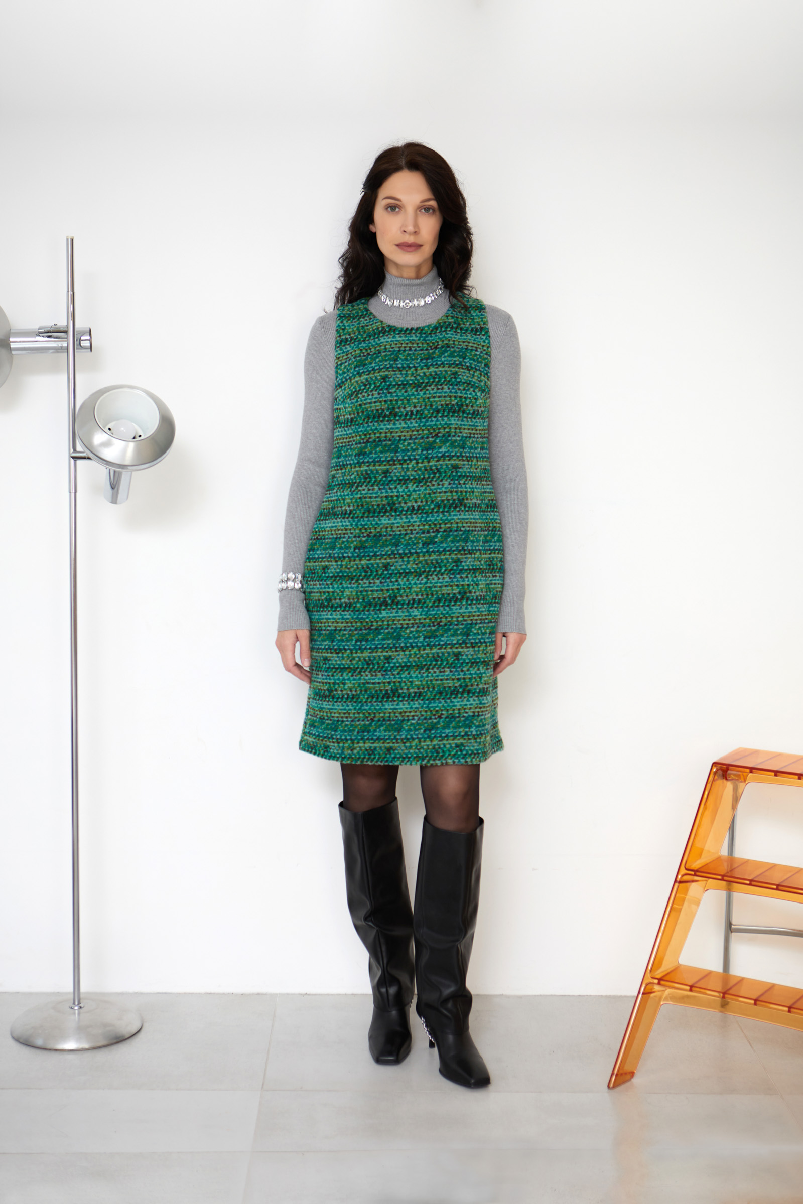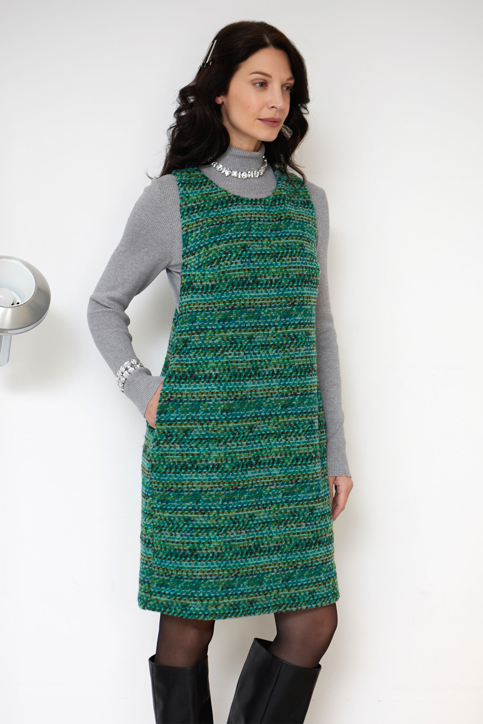 Сарафан из буклированной ткани с меланжевым эффектом.