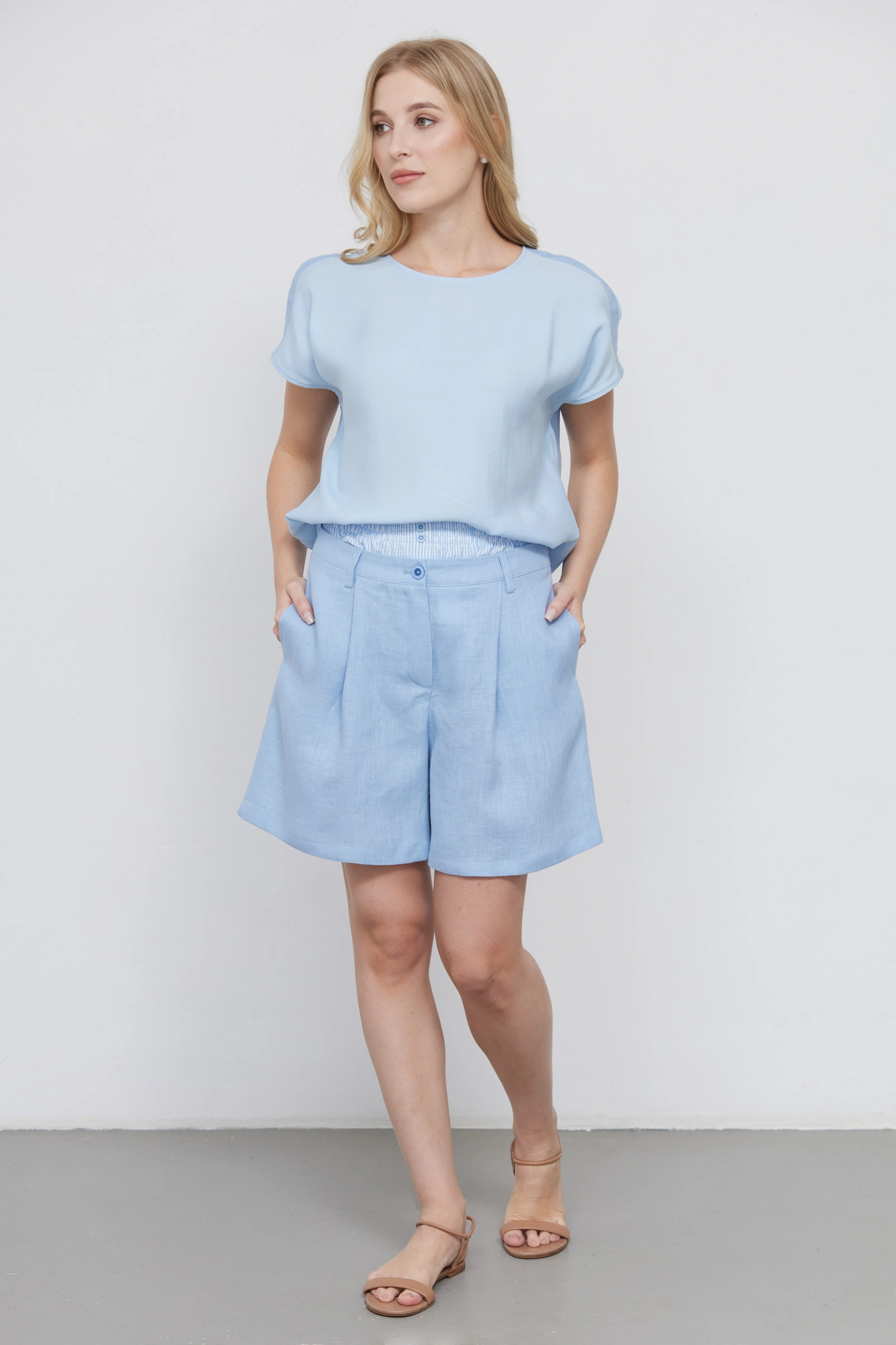 Шорты изо льна комбинированные