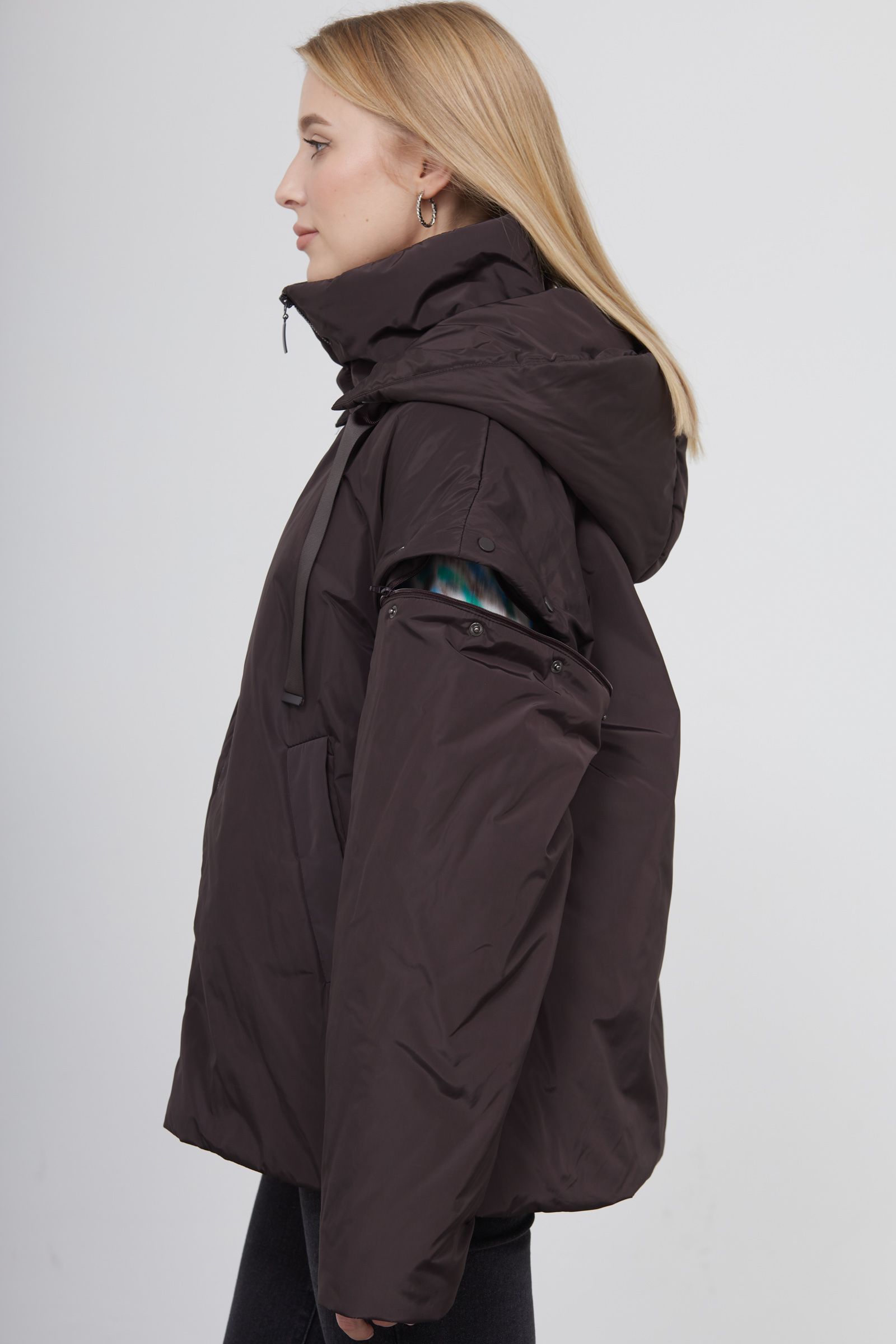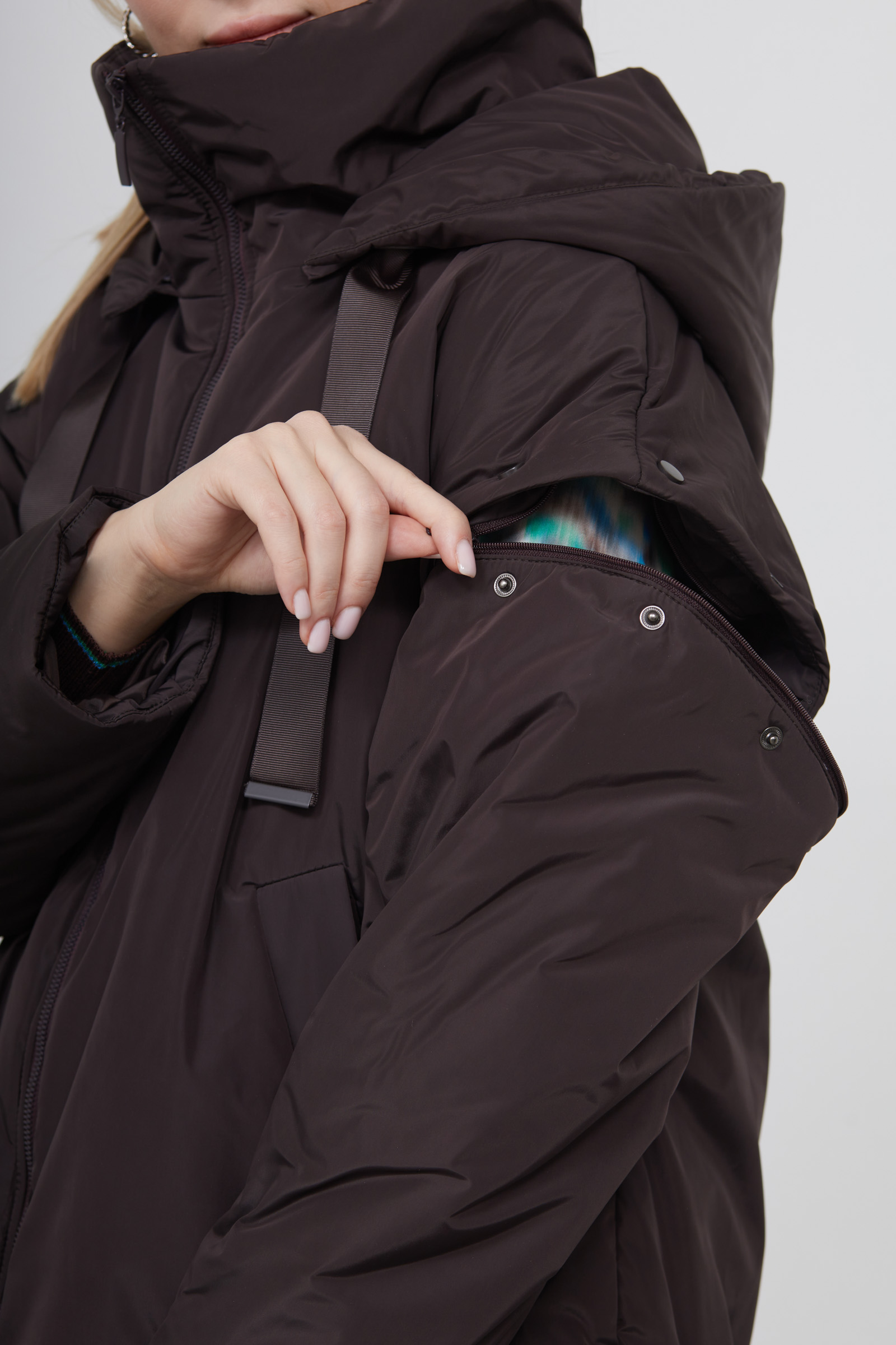 - Отстегивающиеся рукава на молнии и кнопках