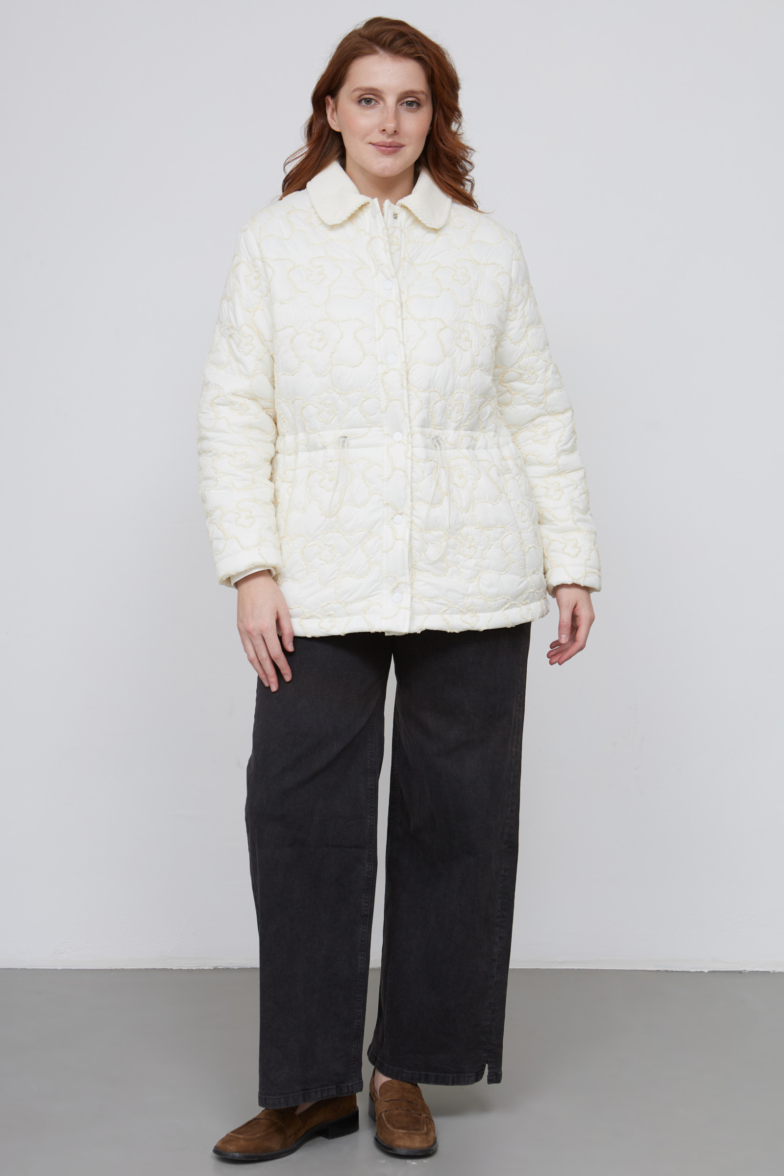 Утепленная куртка на кнопках с фактурной стежкой и кулиской на талии.