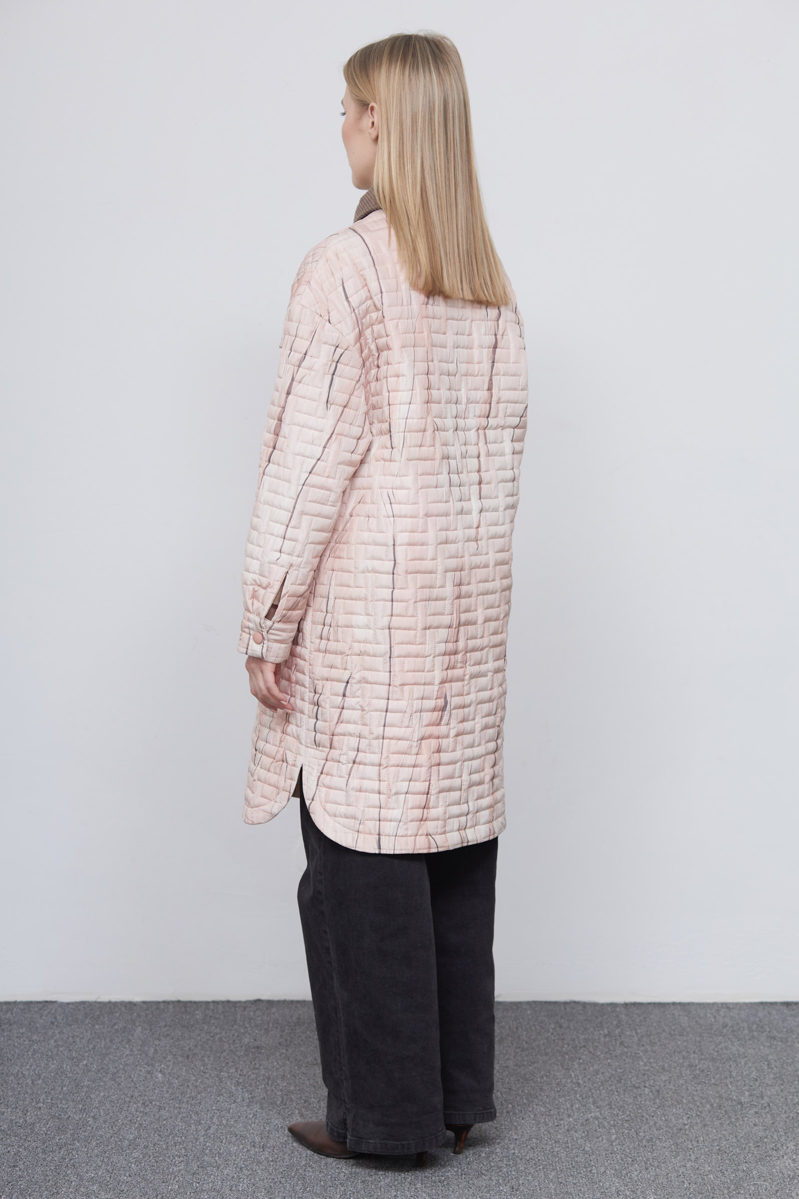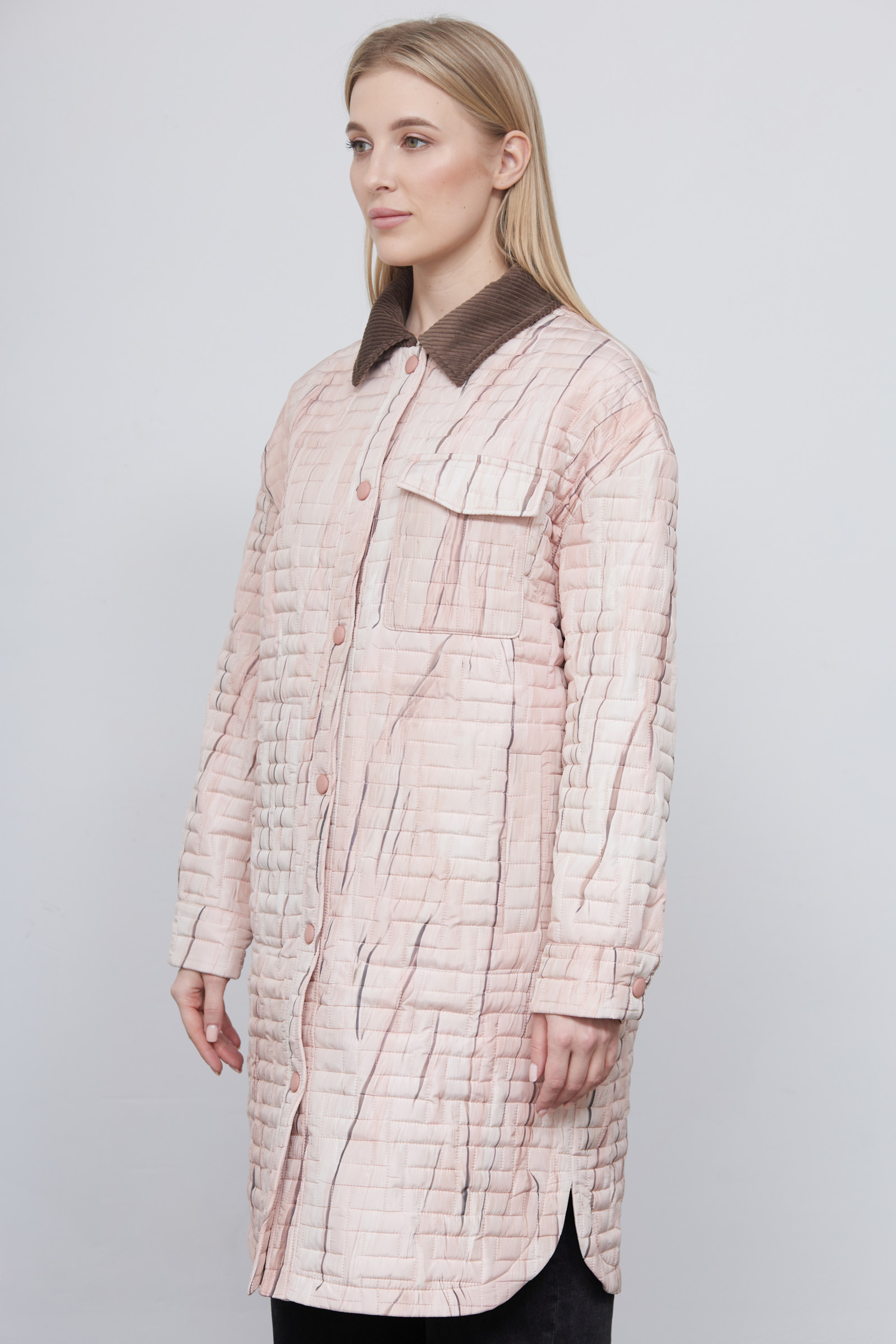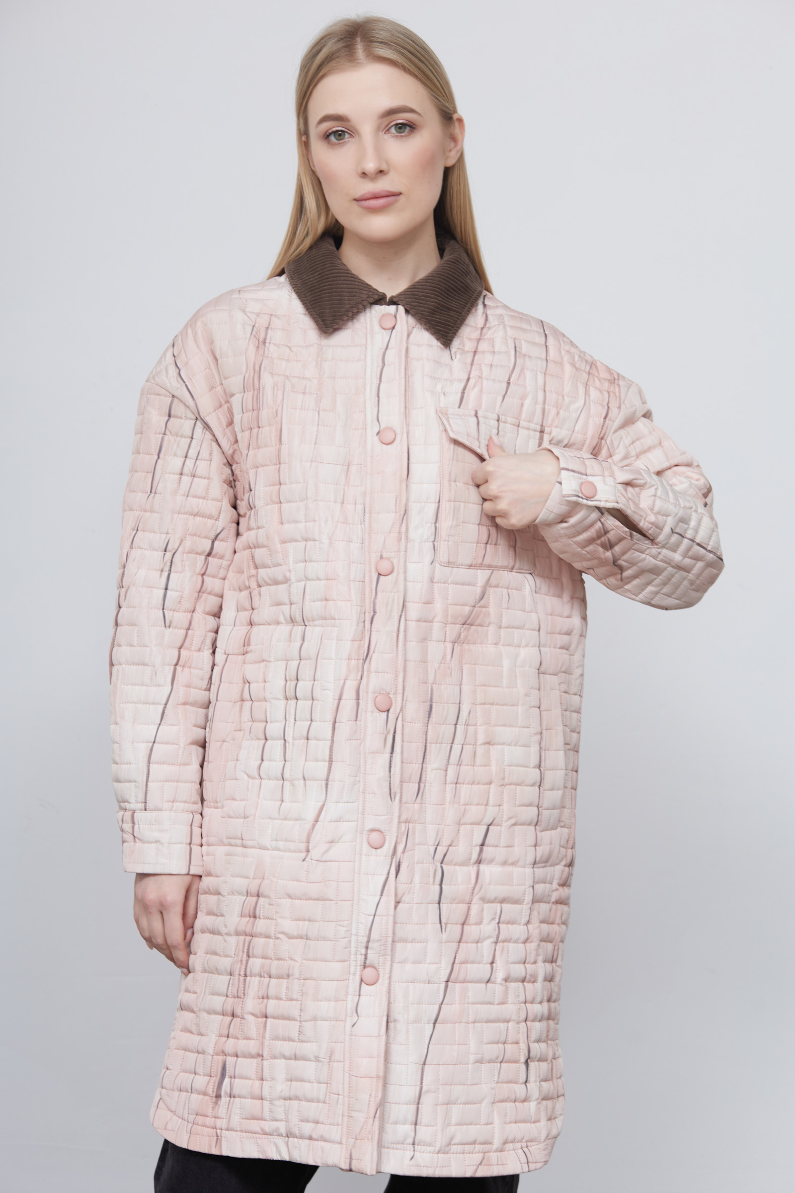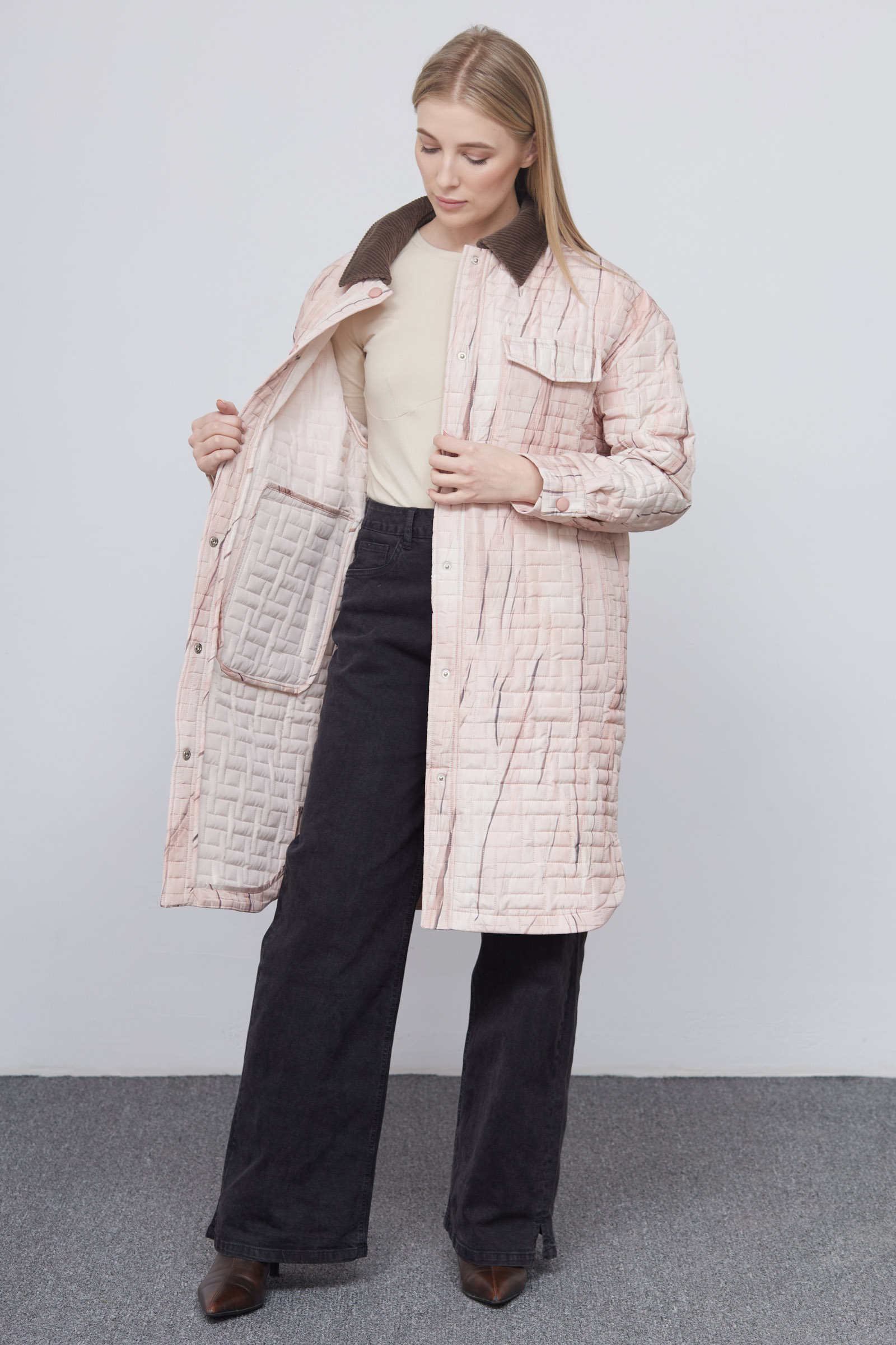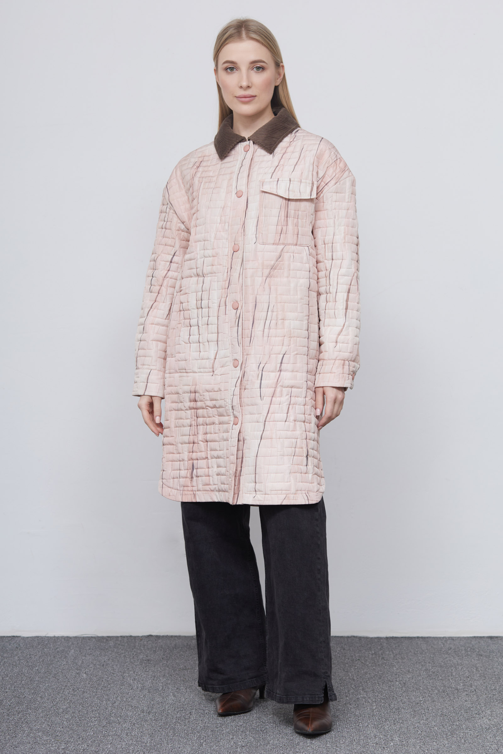 Стеганое пальто oversize на кнопках с вельветовым воротником.