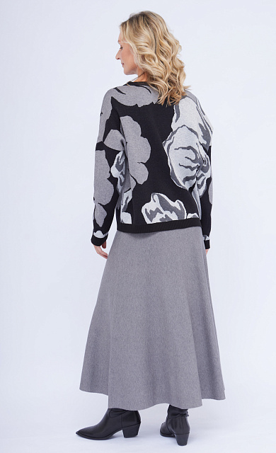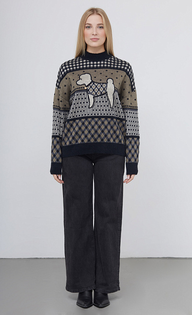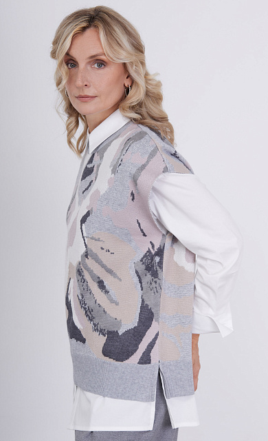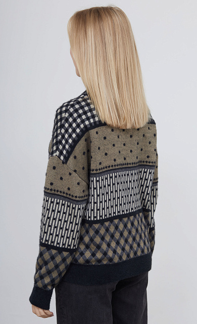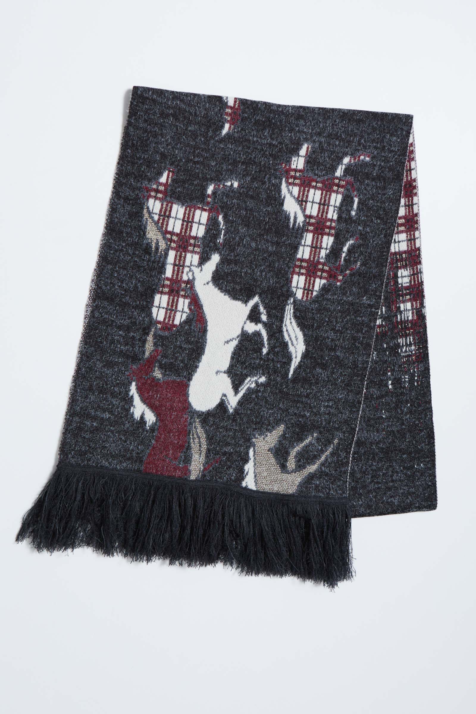 Широкий шарф из мягкого пушистого трикотажа жаккардовой вязки с бахромой.