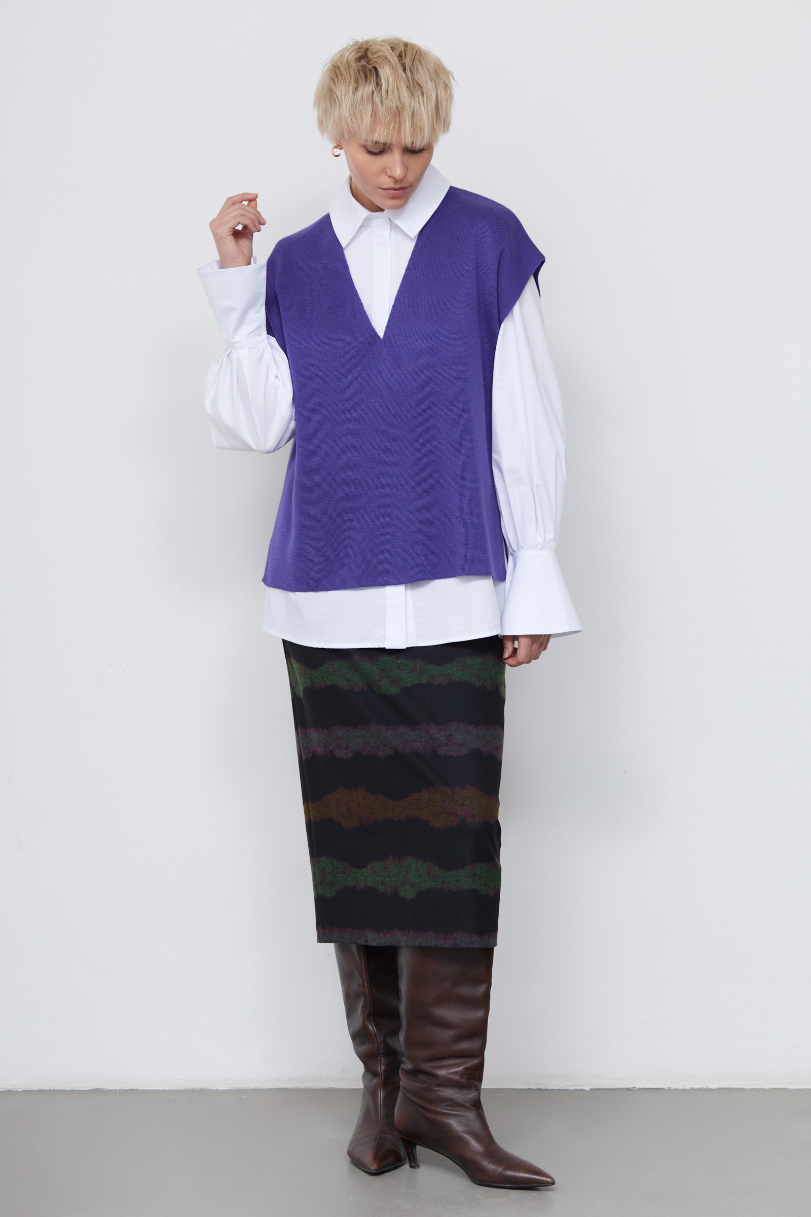 Юбка миди из поливискозы с флисовой текстурой и разноцветными полосками.