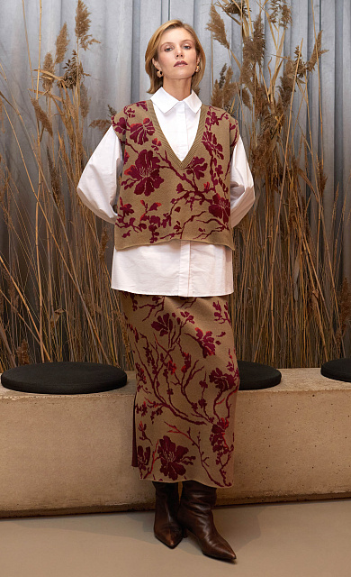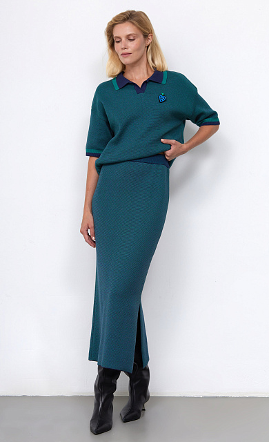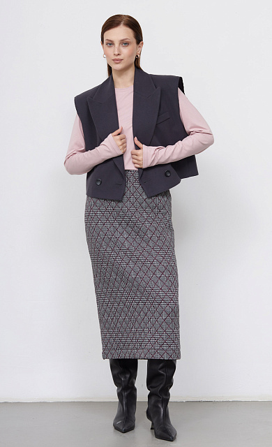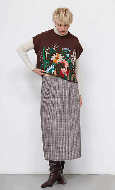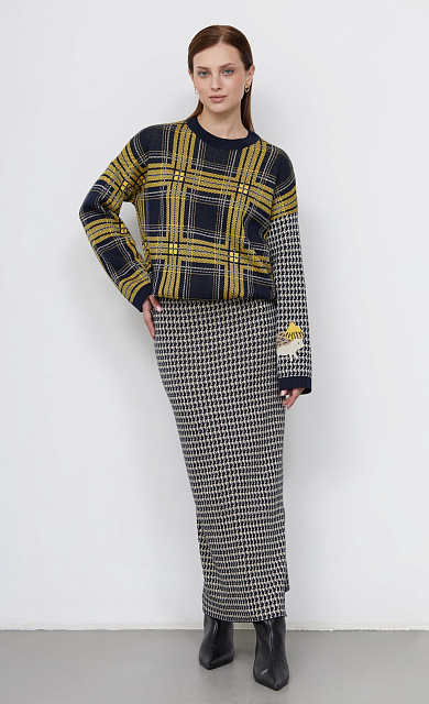 Вязаная юбка миди в разноцветную полоску на эластичном поясе.
