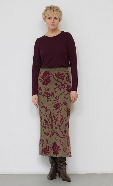 Длинная расклешенная юбка из тонкого вельвета с анималистичным принтом.