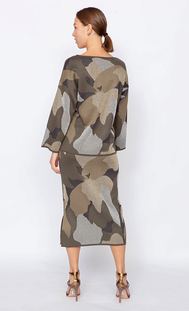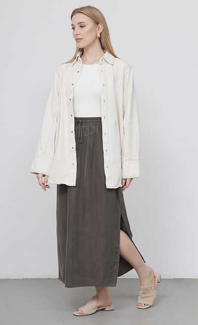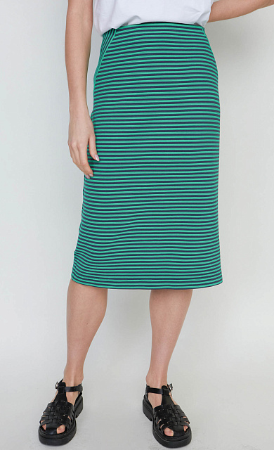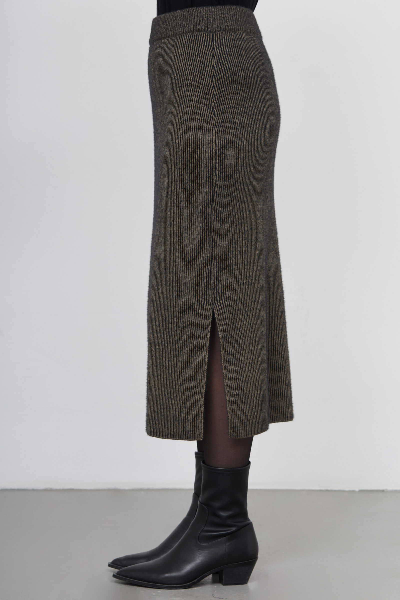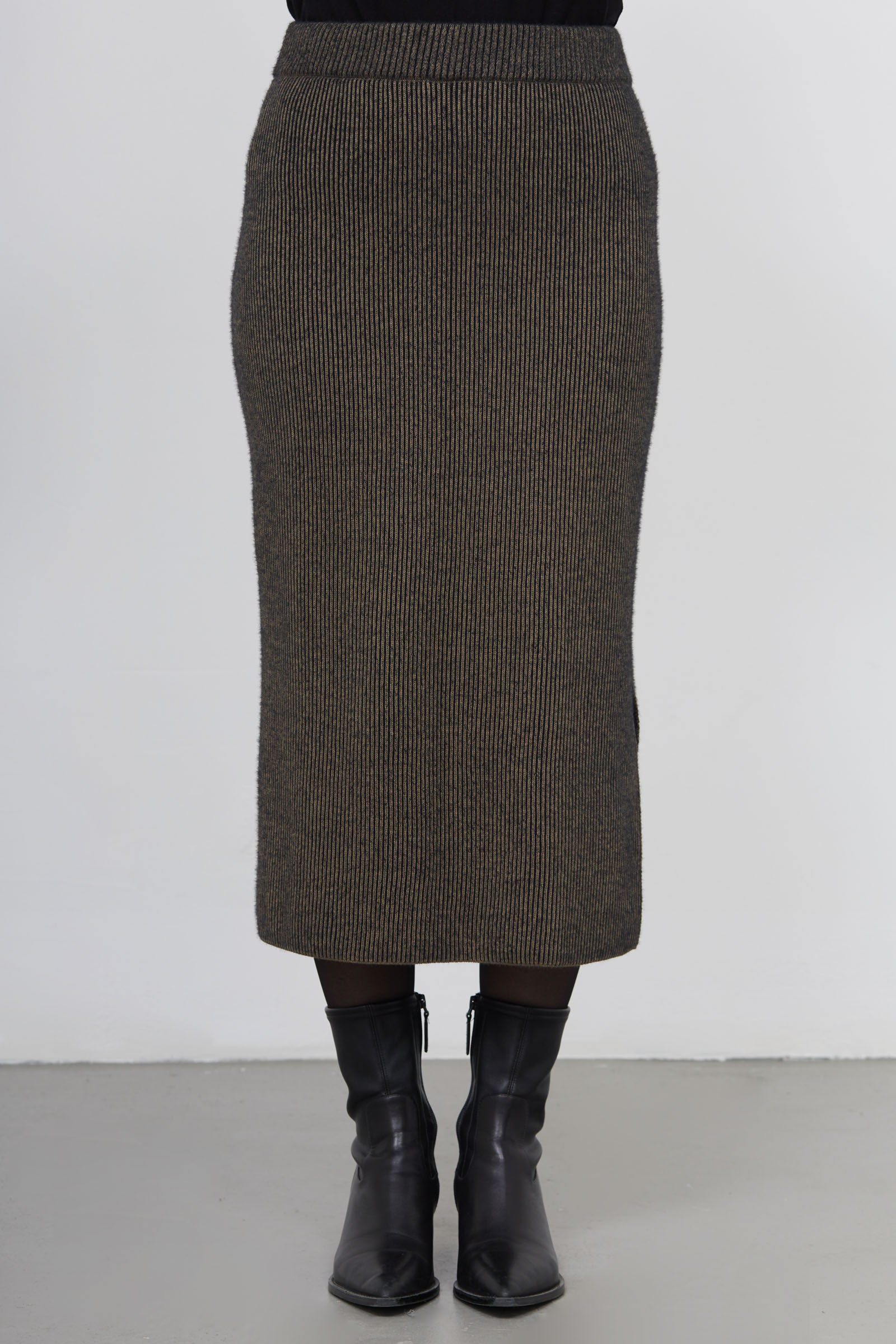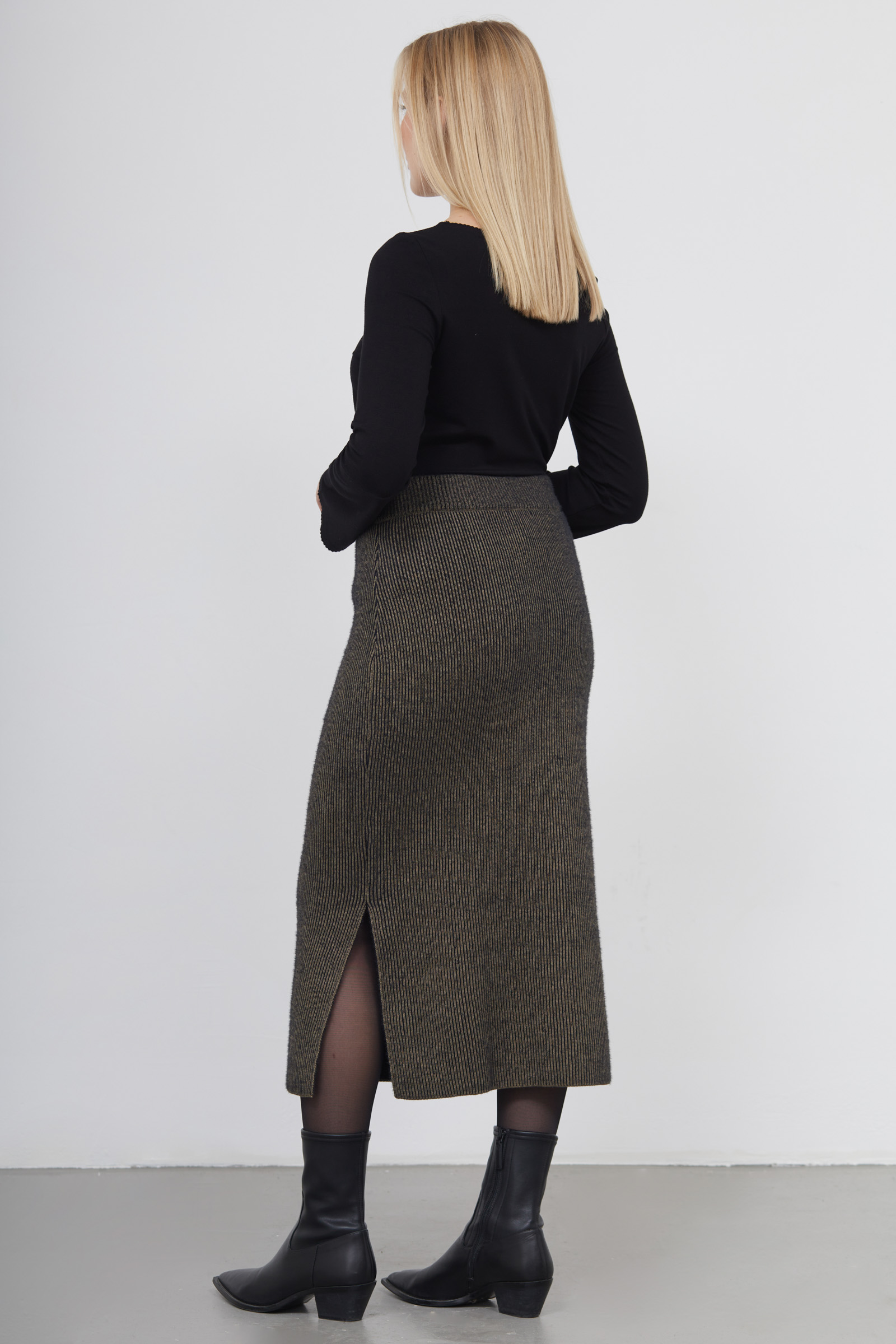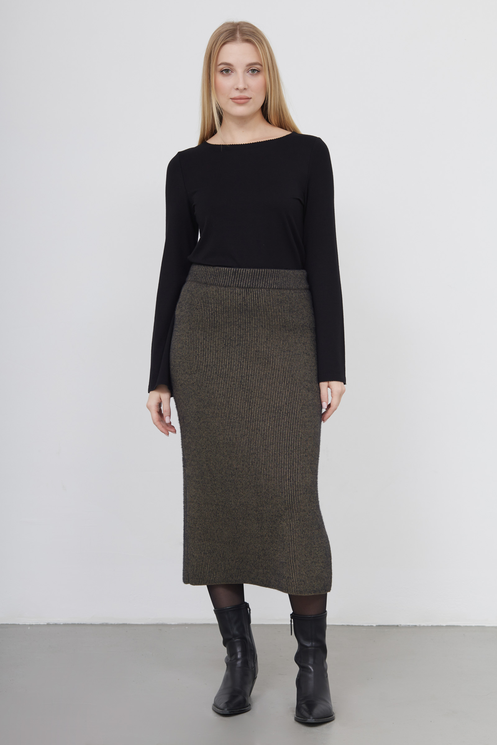 Юбка миди из вязаного трикотажа в рубчик с разрезом.