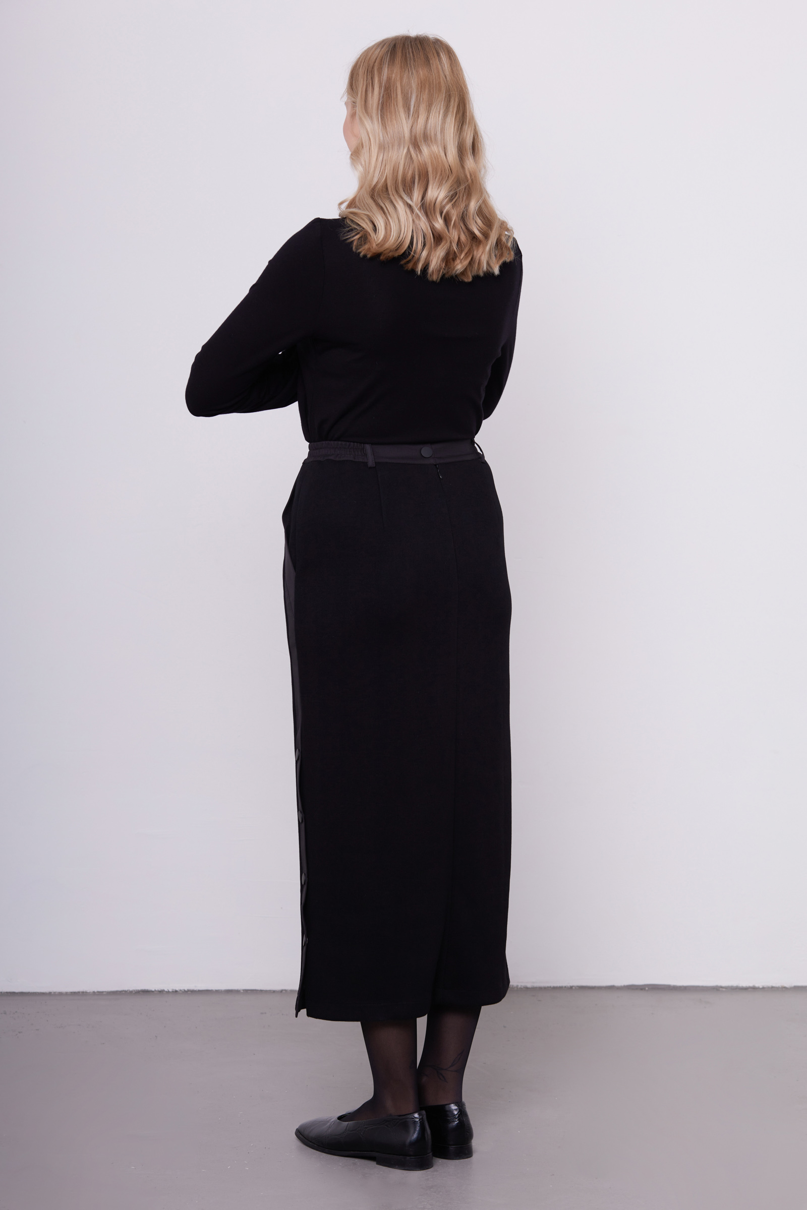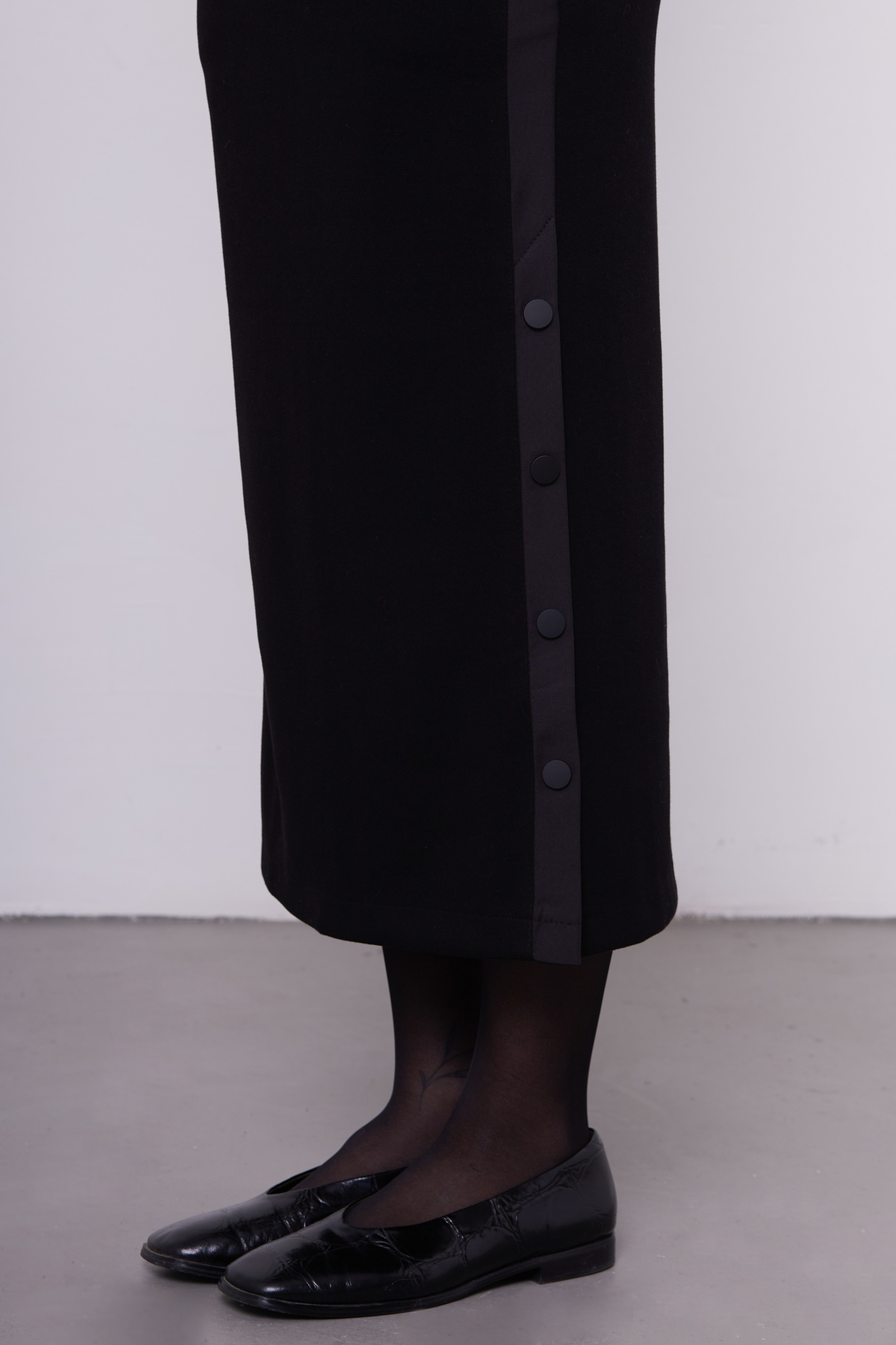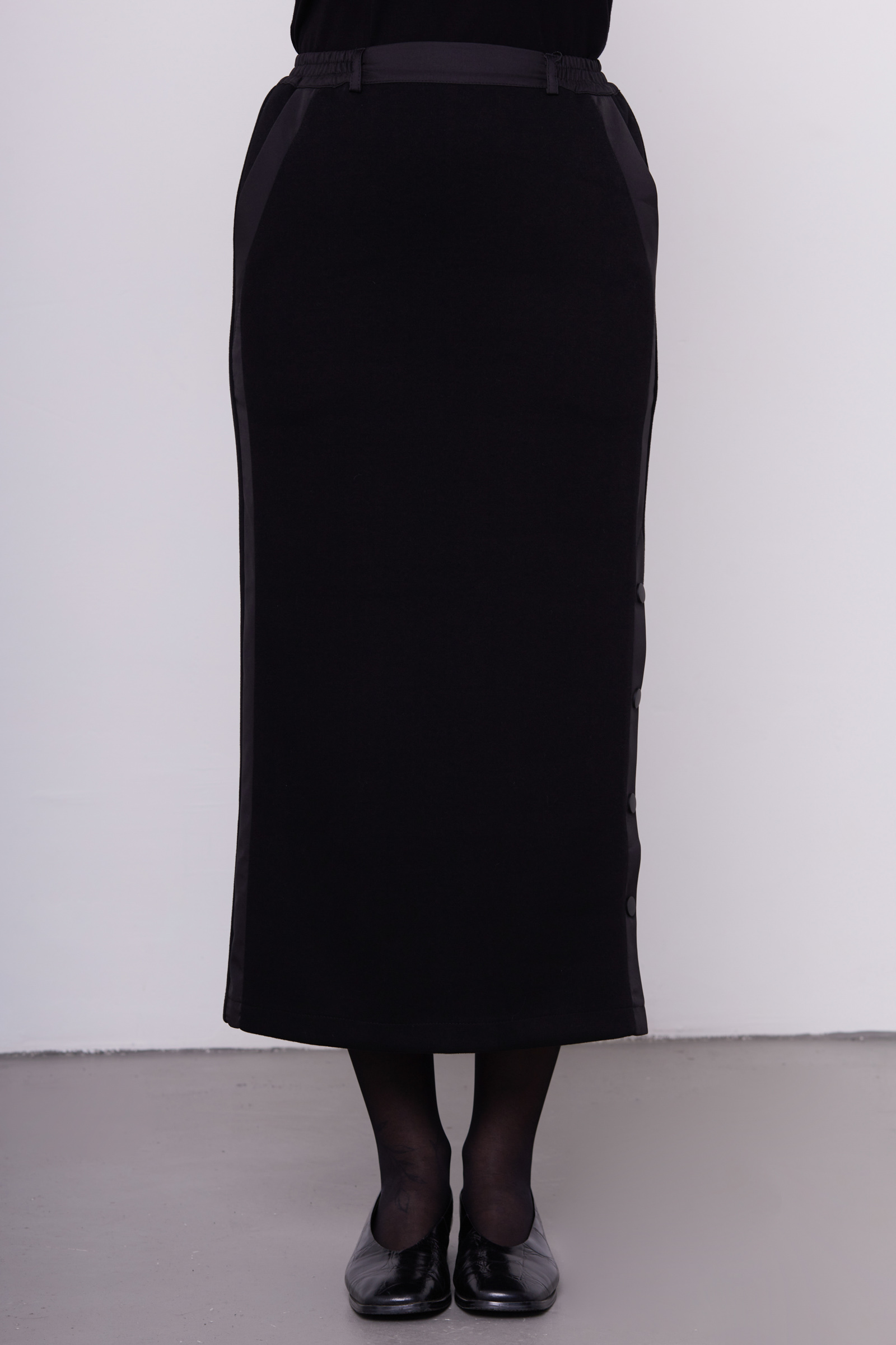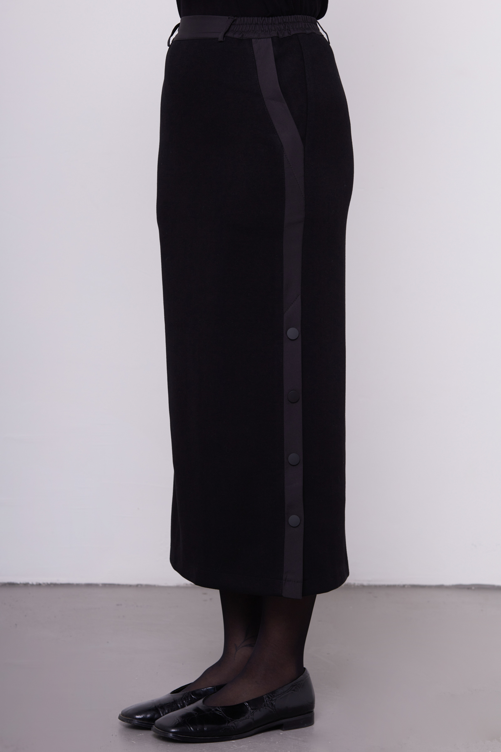 Юбка миди из плотного трикотажа с лампасами и поясом из нейлона.