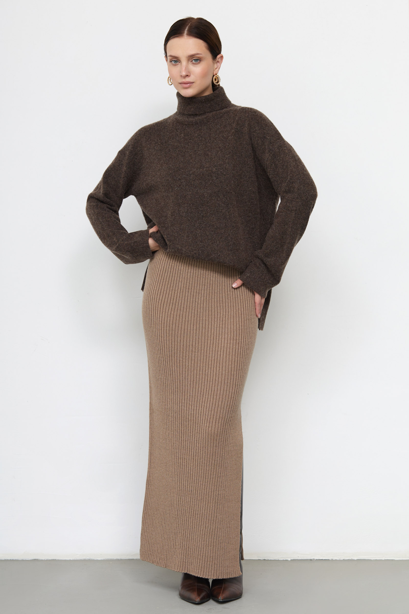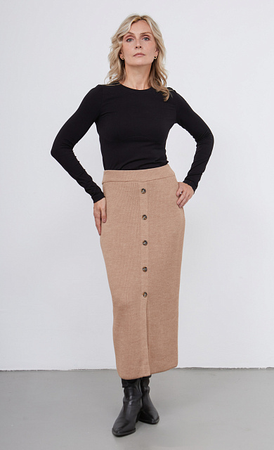 Длинная облегающая юбка из мягкого вязаного трикотажа в рубчик.