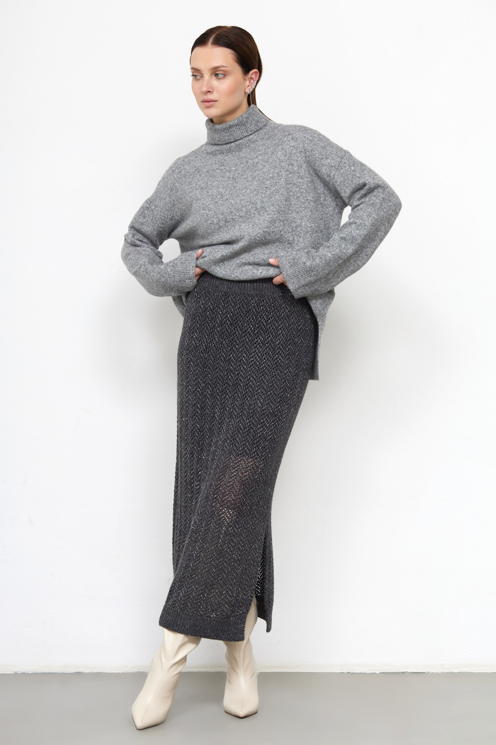 Длинная юбка из смесовой шерсти ажурной вязки с люрексом.
