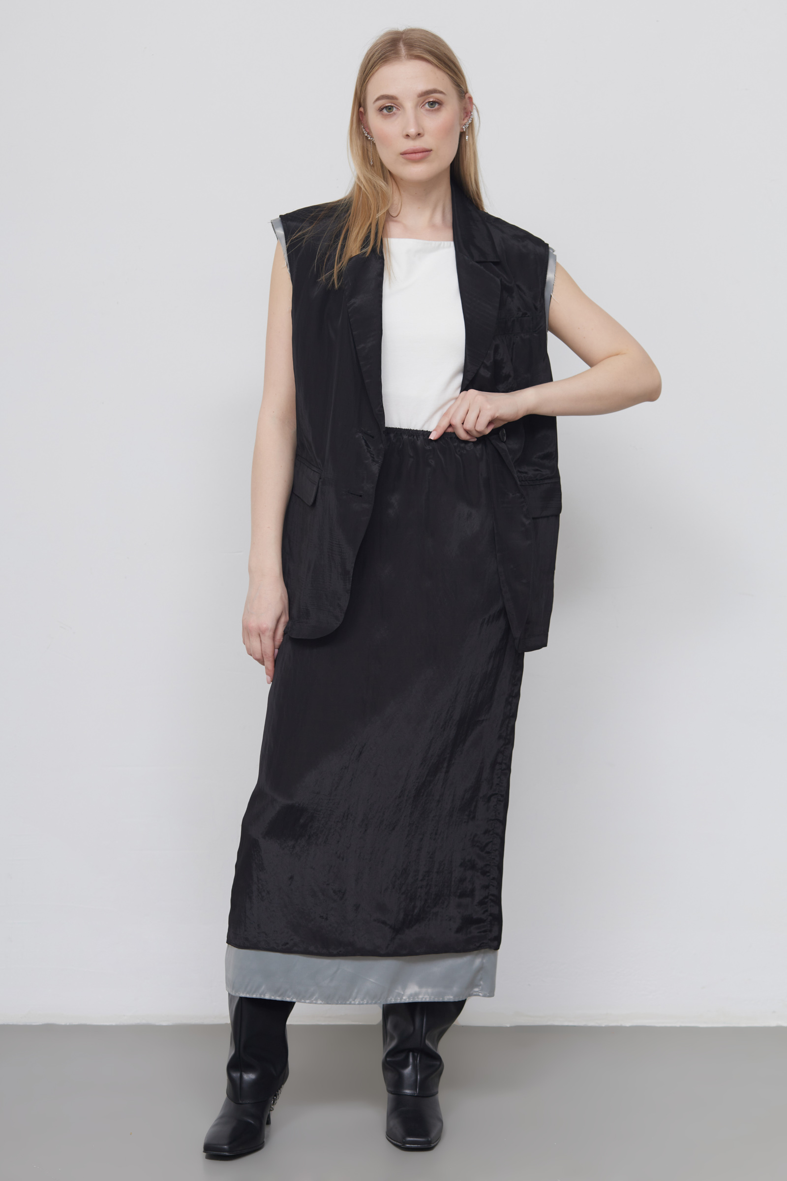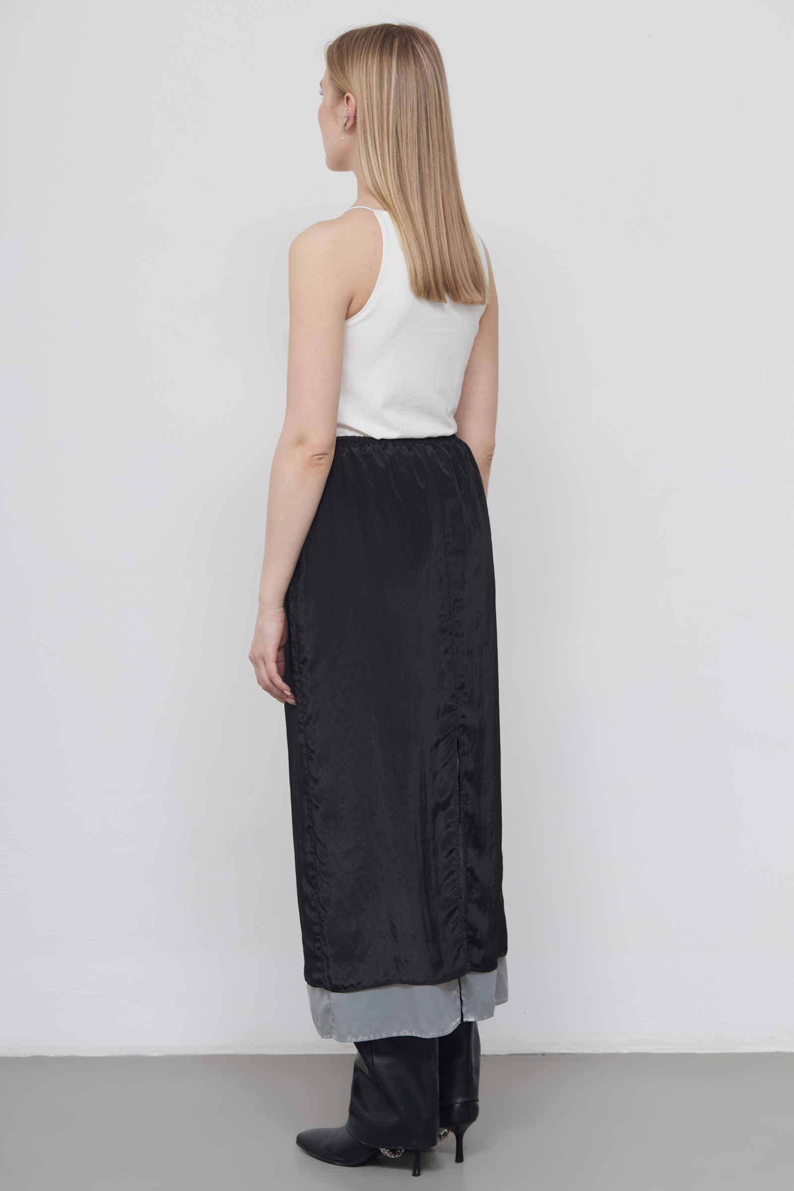 Двуслойная юбка миди из смесовой вискозы с разрезом.