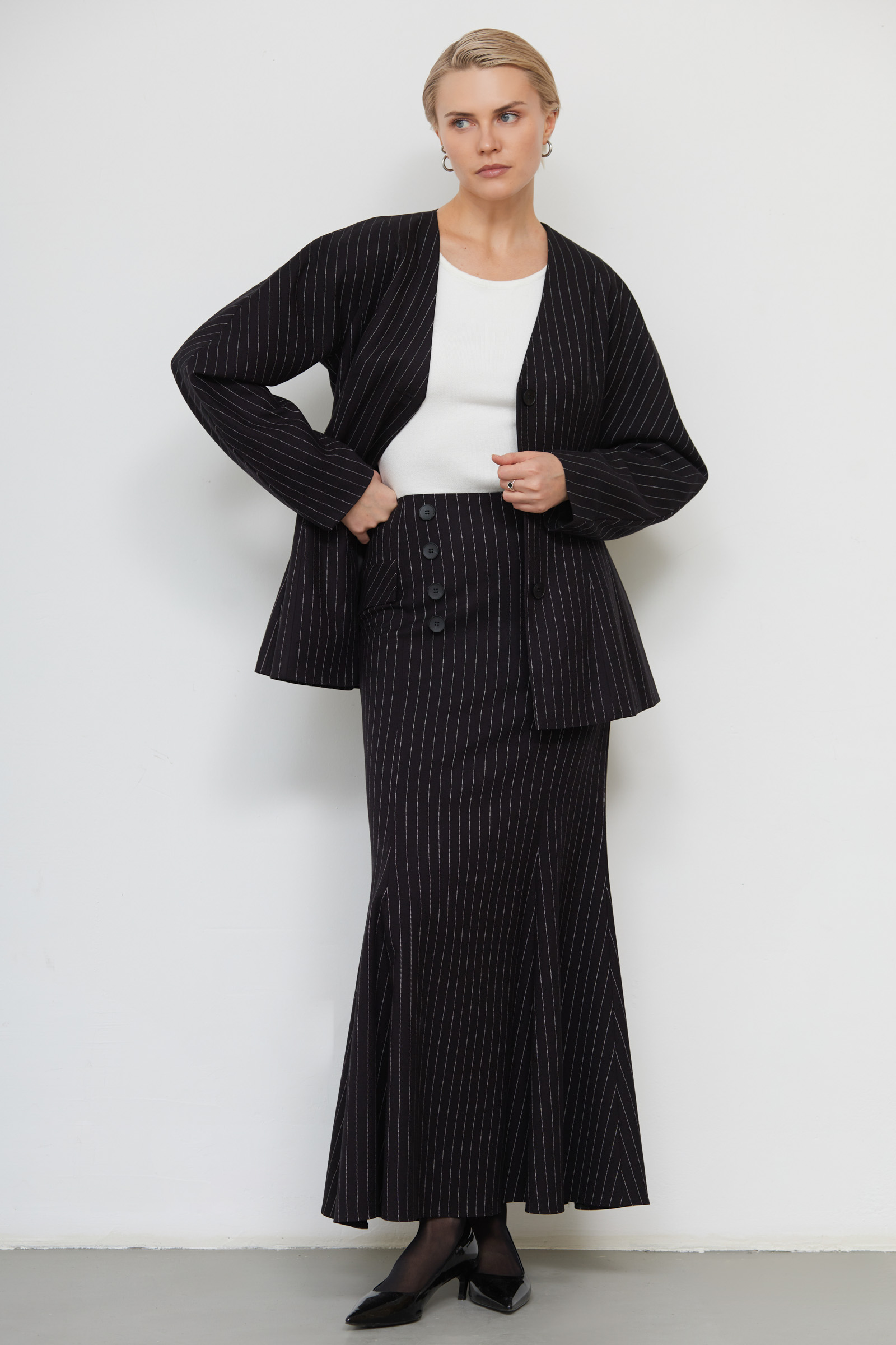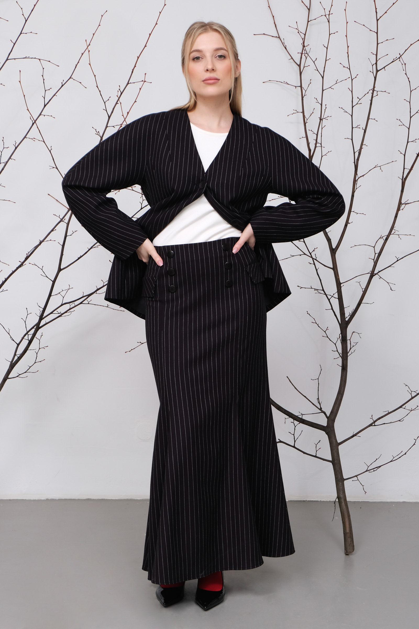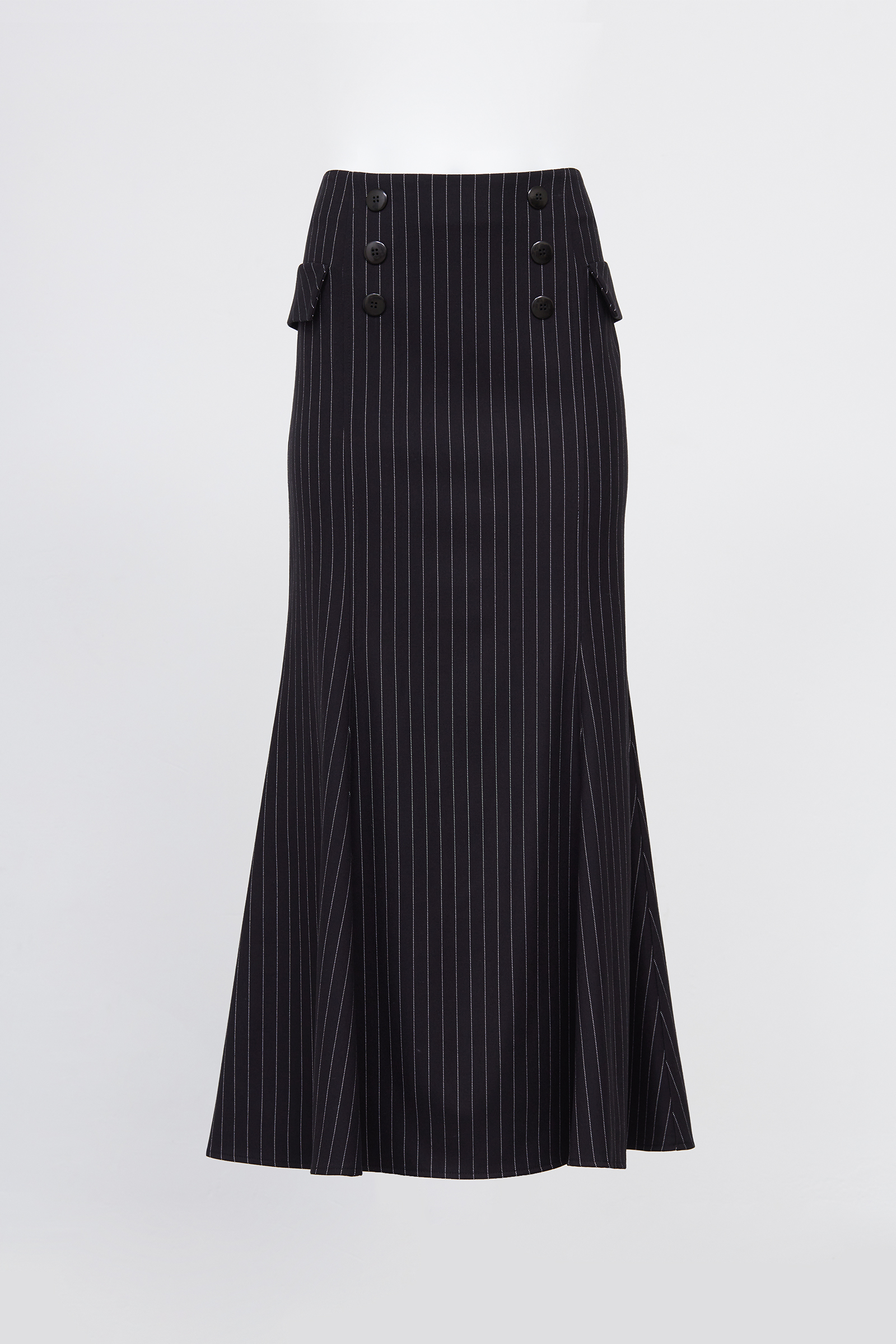 Длиннная юбка годе из поливискозы в полоску с декоративными пуговицами и ложными карманами.