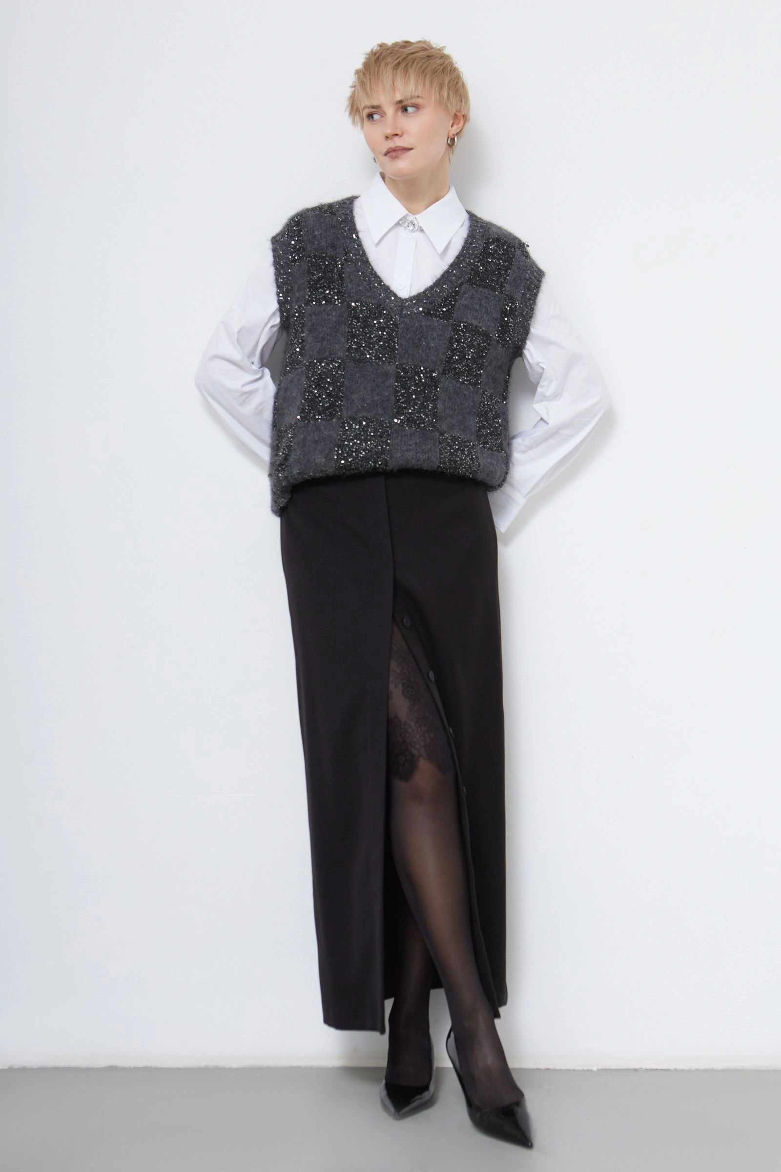 Юбка с кружевной вставкой