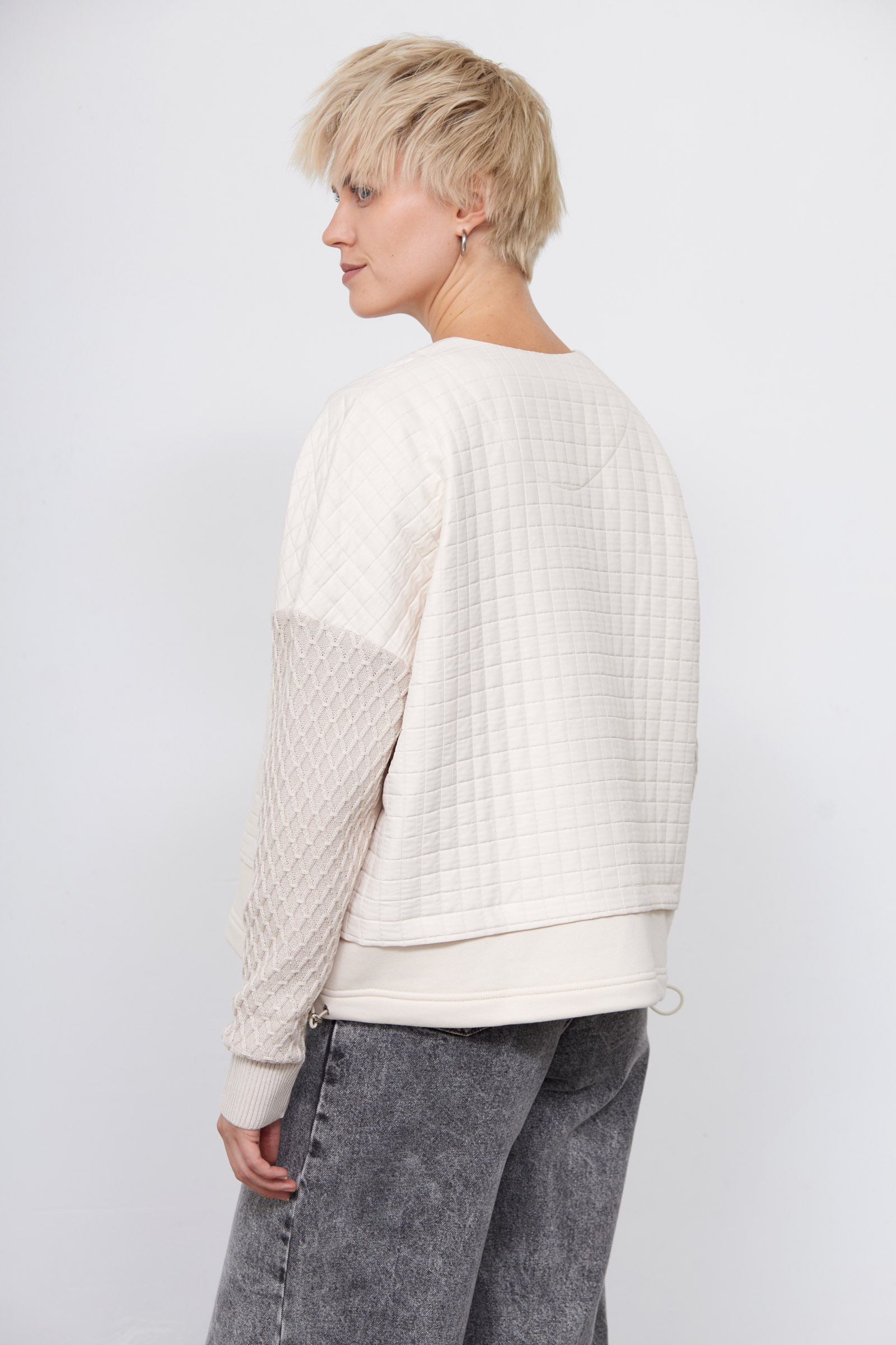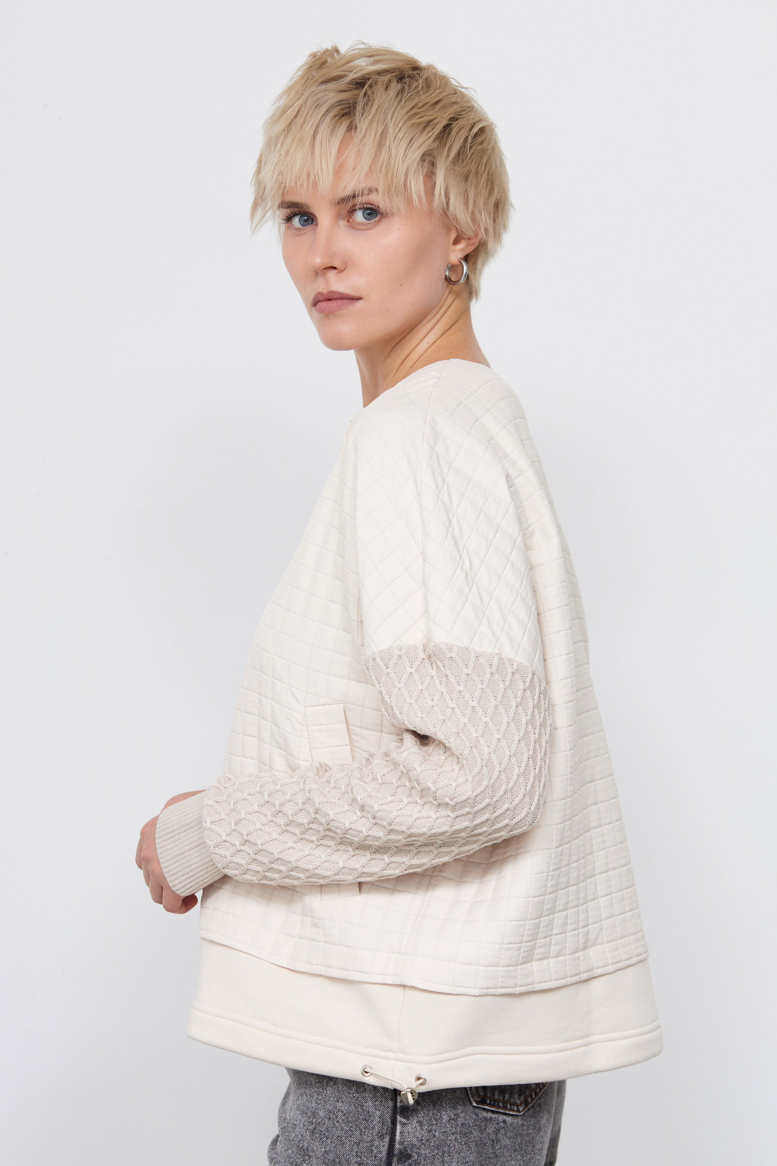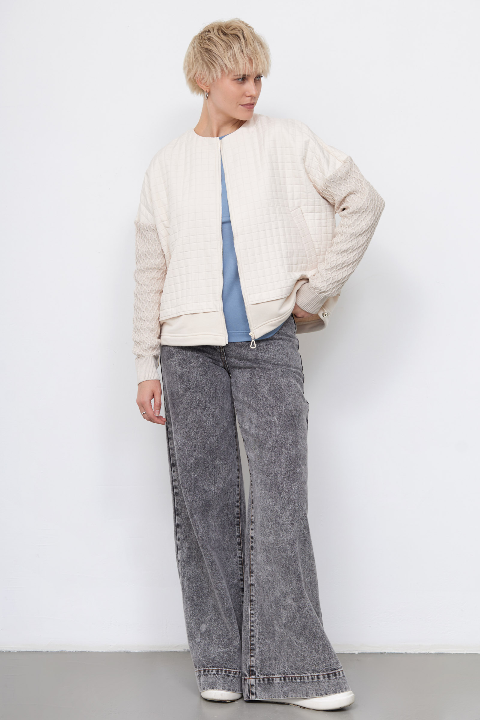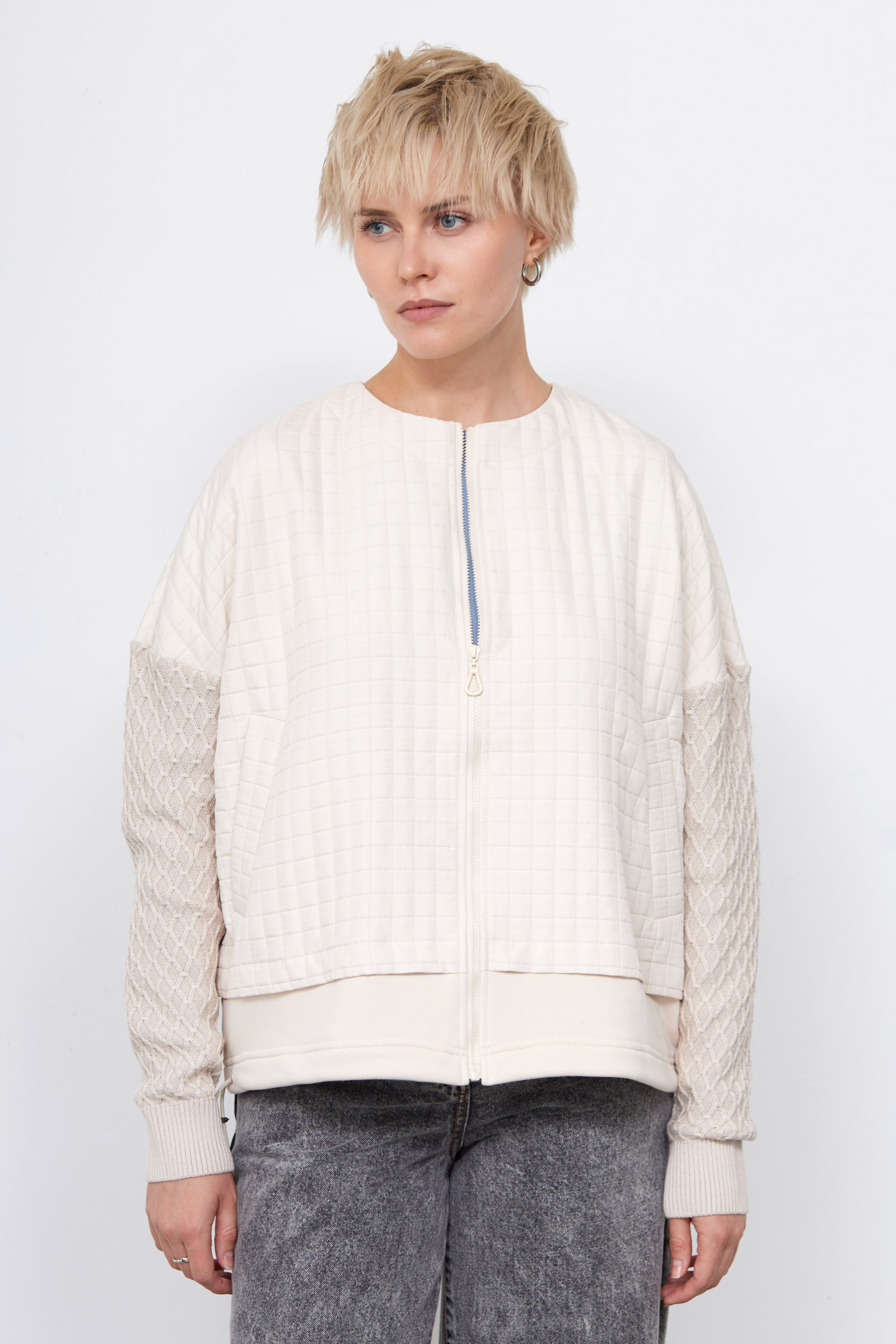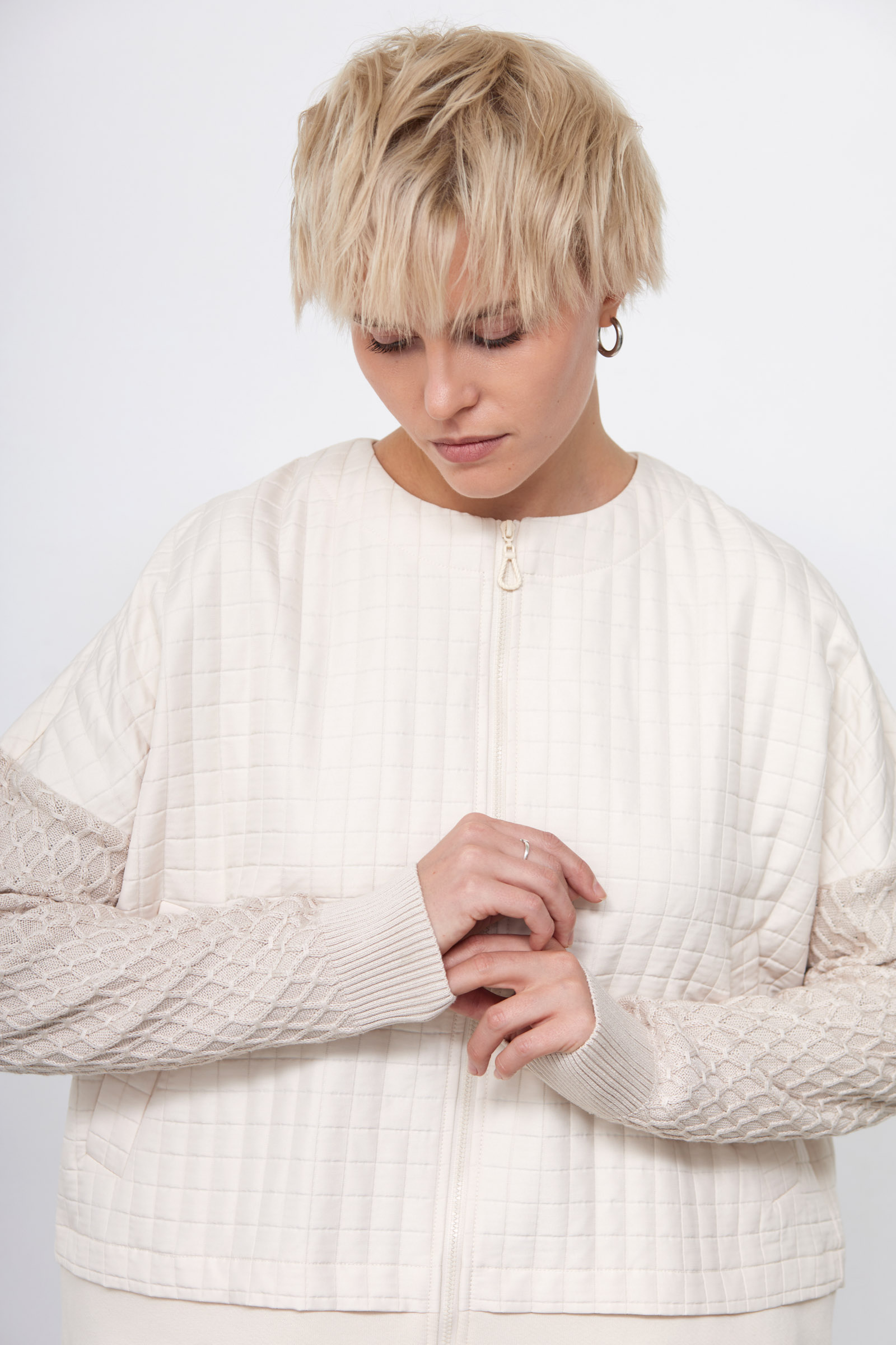 Комбинированный жакет oversize на молнии с вязаными рукавами.