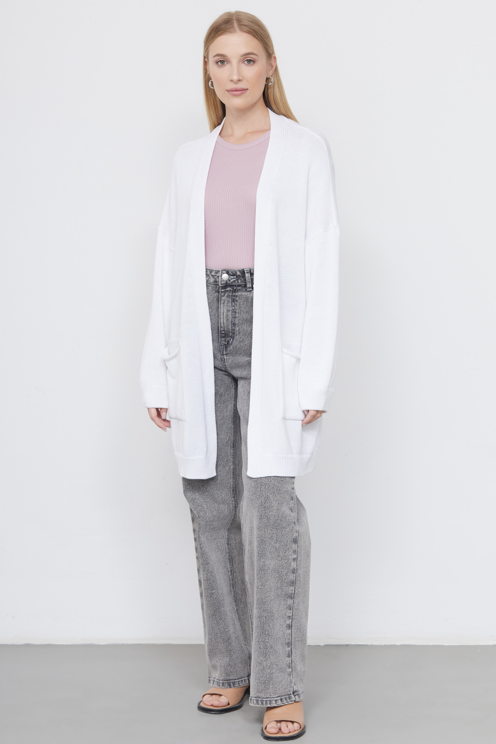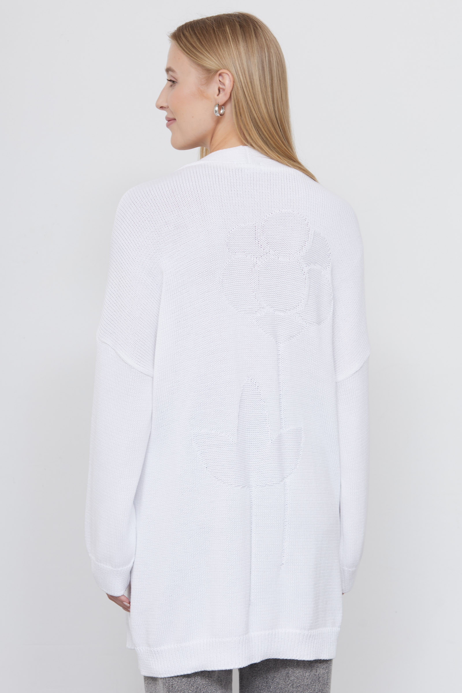Удлиненный кардиган из мягкого вязаного трикотажа с рисунком на спинке.
